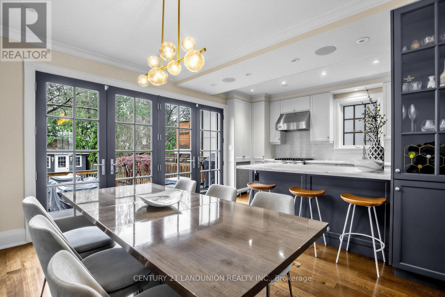 Chic, sophisticated country living in the city. Nestled in the highly sought-after Otter/Kimbark enclave (John Ross and Lawrence Park CI school district), this exceptional 2-storey, 3-bedroom turnkey home showcases outstanding renovation with design attributed to esteemed designer Richard Wengle. Step into the open concept first floor, where sun-lit living spaces are framed by floor-to-ceiling French doors opening out to the backyard oasis. The stunning dream kitchen offers marble countertops, stainless steel appliances, abundant cupboard space, and a sun-lit breakfast bar with added seating. Elegant hardwood floors, crown moulding, pot lights, and wainscoting enhance the refined interior, while built-in speakers, abundant storage space, and a Murphy bed in the basement add modern functionality. The property offers three generously sized bedrooms and two beautifully renovated bathrooms with luxurious marble finishes and heated floors, every detail has been thoughtfully curated. Step outside to a walk-out tiered deck and a private, landscaped garden complete with built-in front and rear irrigation. Relax or entertain under beautiful cherry blossom trees that grace the backyard, creating a stunning display of blossoms when in full bloom. The front yard features a recently paved interlock private driveway that easily parks four cars. Ideally located within the highly coveted John Ross Roberston PS and Lawrence Park CI, and steps to top private schools including Havergal, Bialik, UCC, and BSS. This home offers a rare blend of luxury, comfort, and prime location. (id:64974)