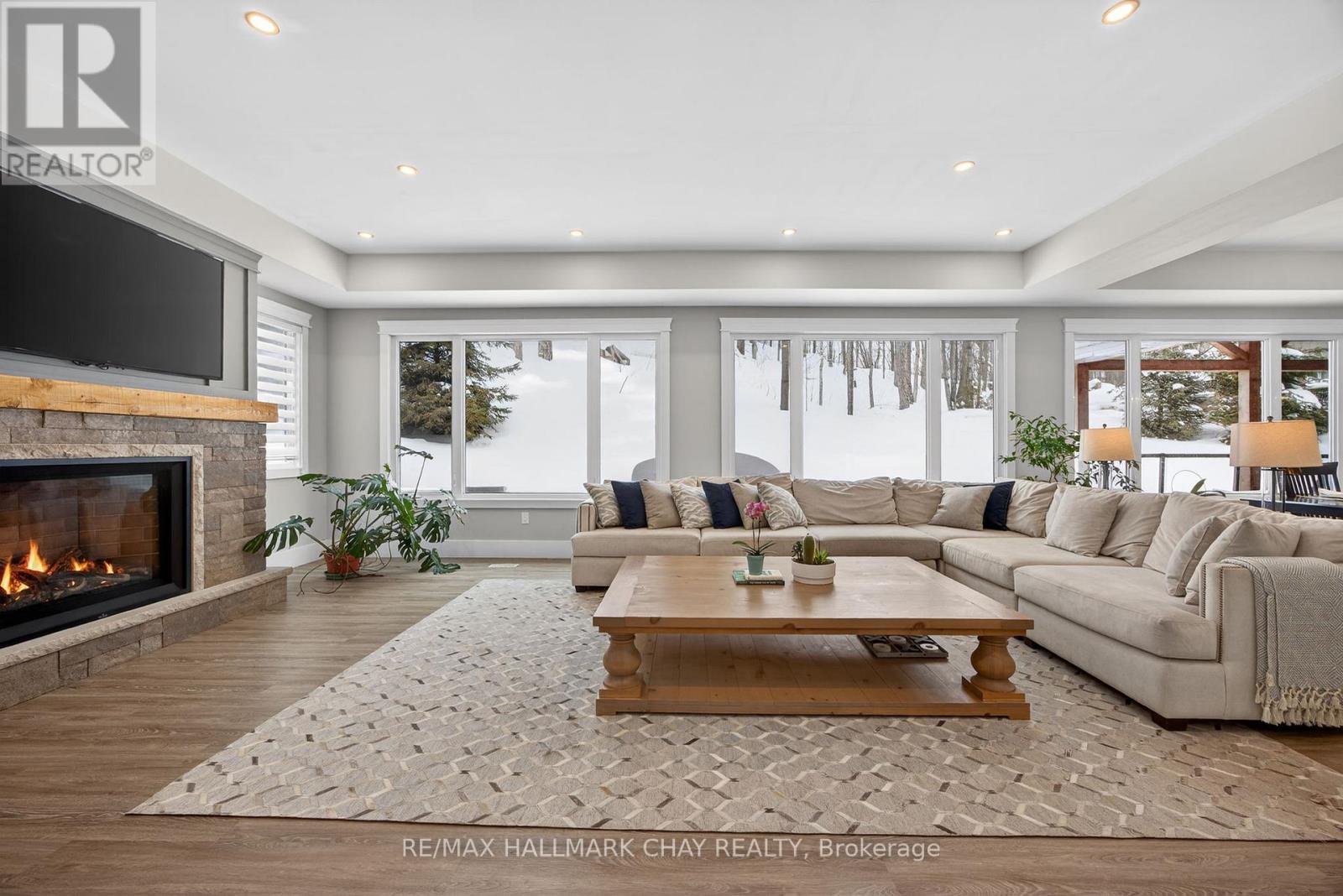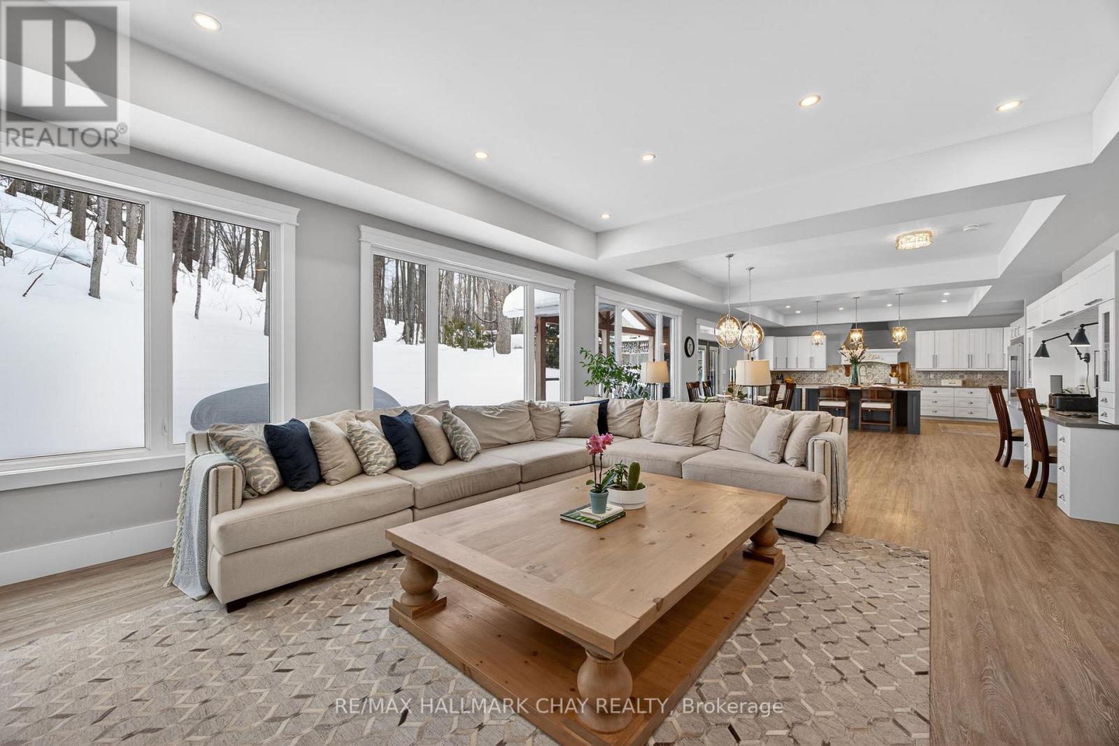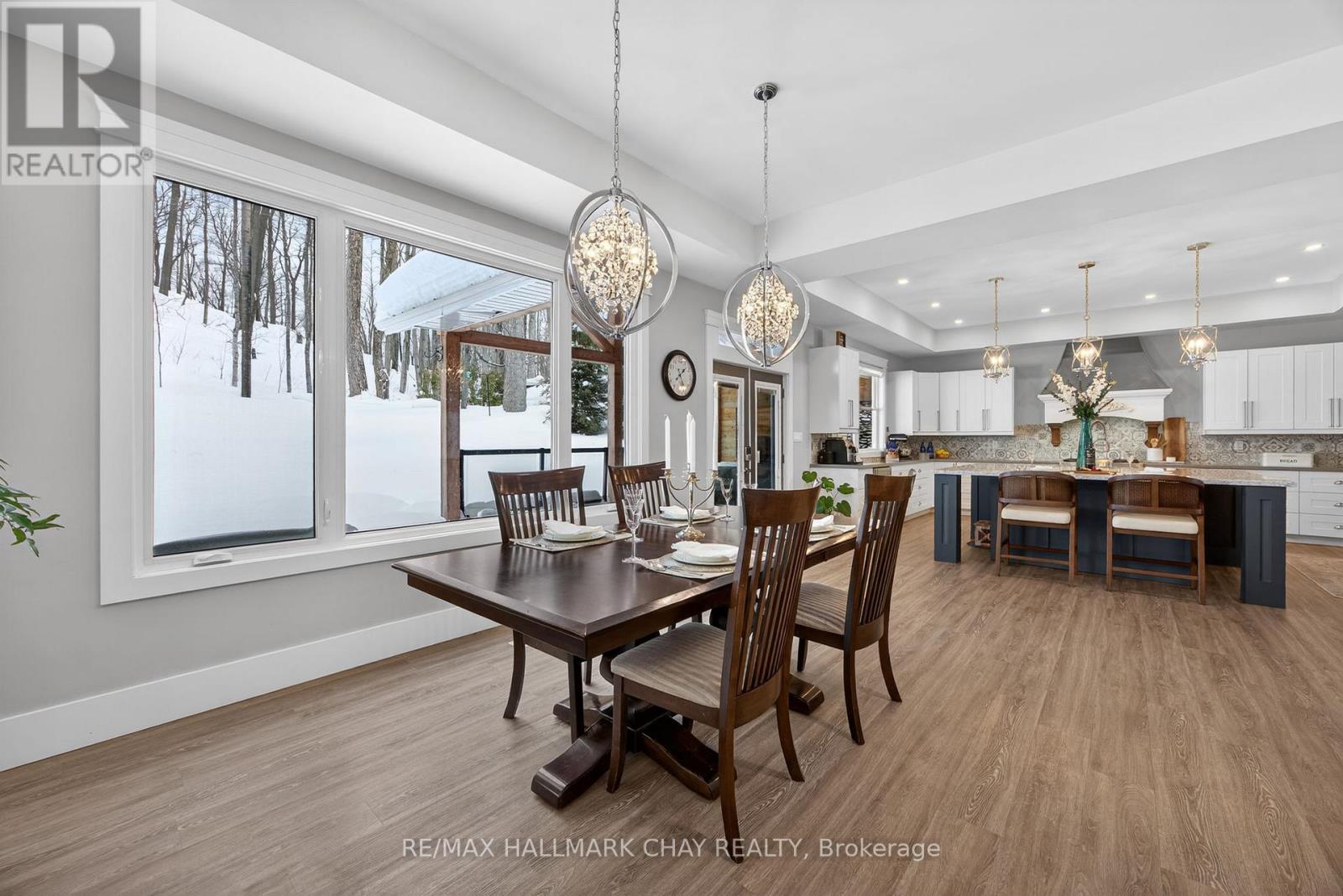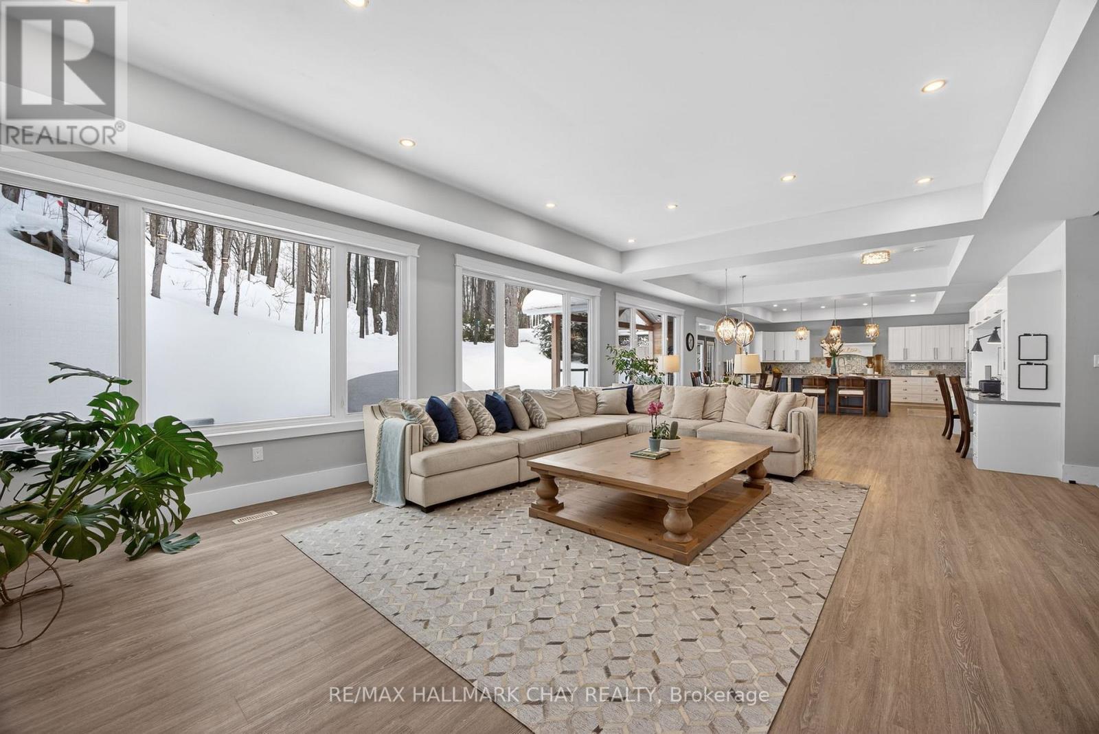 17 Pine Ridge Trail offers luxury estate living in the heart of Horseshoe Valley, set on a private maple-treed lot backing onto forest on a quiet dead-end street. Step inside and you'll immediately appreciate the bright, open-concept design with high ceilings, pot lighting, and oversized rear windows that bring the outdoors in. The chef-inspired kitchen is truly the heart of the home, featuring a massive centre island with stone countertops, oversized double stainless fridge, gas range, dishwasher, bar fridge, and range hood-perfect for everyday living and entertaining. Between the kitchen and living room, you'll love the dedicated dining area with custom built-in cabinetry, this area is ideal for family meals, homework space, or a functional work-from-home setup, with walkout to the timber-framed covered porch complete with multiple gas lines for year-round outdoor enjoyment. The inviting living room is anchored by a stunning gas fireplace and views of the private backyard. Also on the main level is a versatile office, playroom, or potential additional bedroom, along with a 2-piece bath and oversized mudroom. The triple car garage offers two convenient interior access points-one into the mudroom and another directly to the basement stairway-providing exceptional everyday functionality. Upstairs features four spacious bedrooms including a primary suite with vaulted ceilings, walk-in closet with direct access to the laundry room, and a spa-like 5-piece ensuite with soaker tub, separate shower, and double sinks. A guest bedroom includes its own 4-piece ensuite, while bedrooms two and three share a semi 5 piece ensuite. Located minutes to Horseshoe Resort, Vettä Nordic Spa, trails, the new school, and recreation centre, you'll enjoy privacy, comfort, and true four-season living. Property has available - Residential Building / Apartment Dwelling (Finished Basement) Permit. (id:64974)