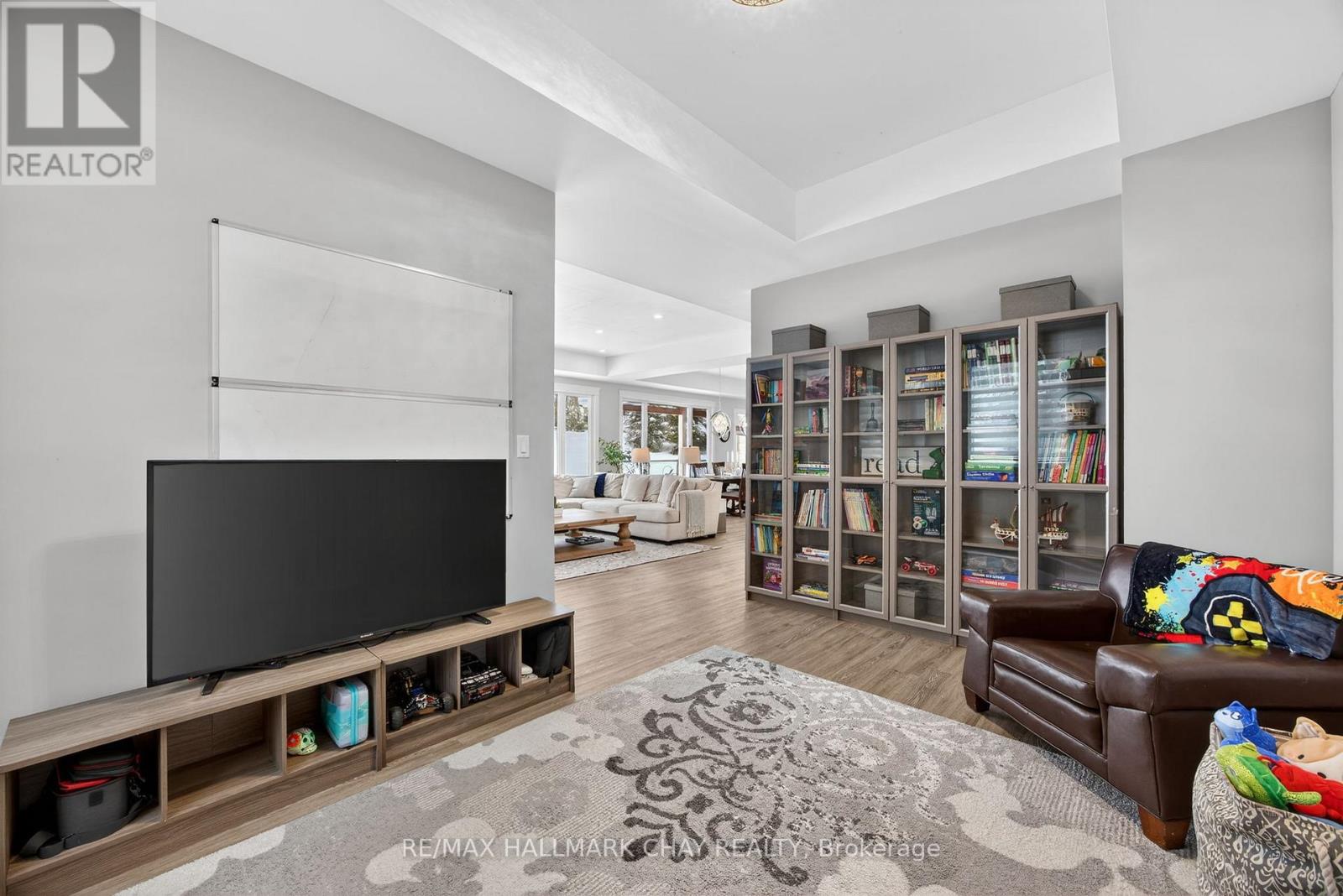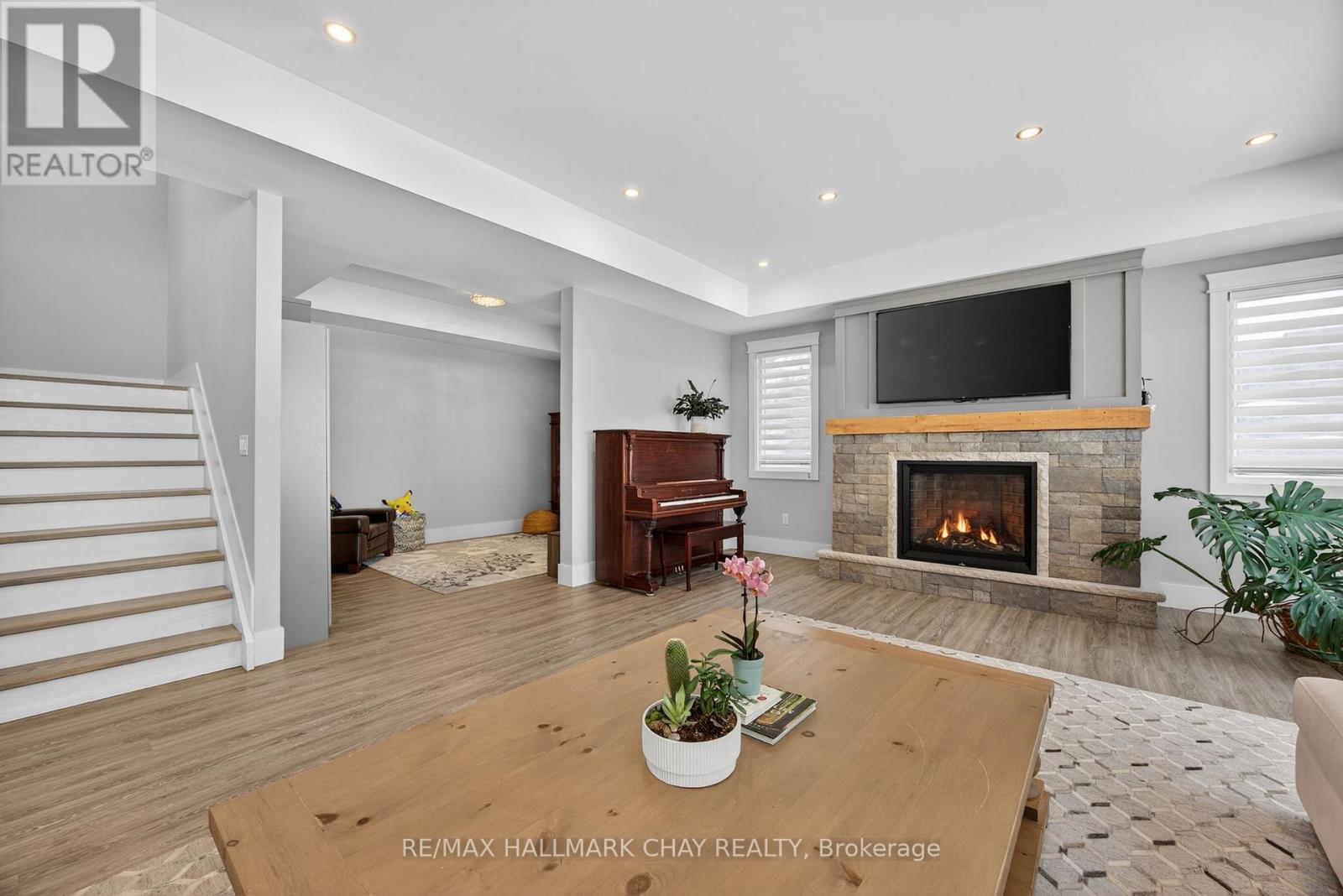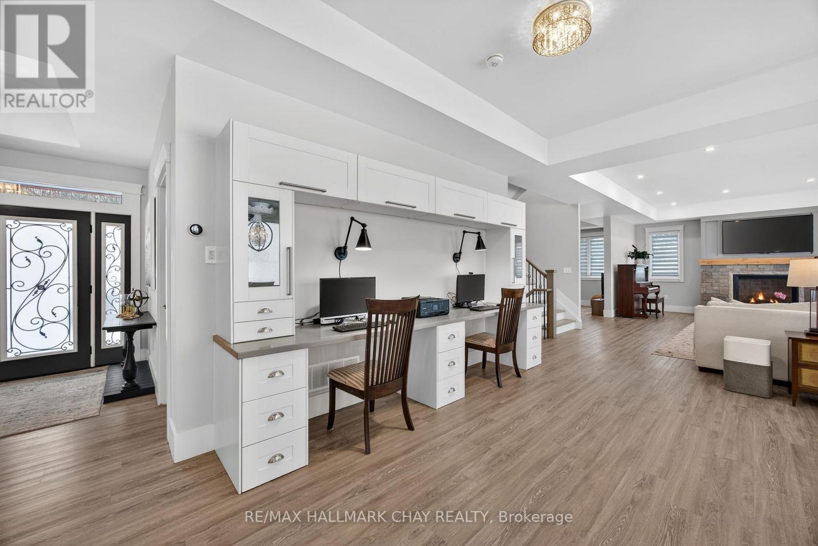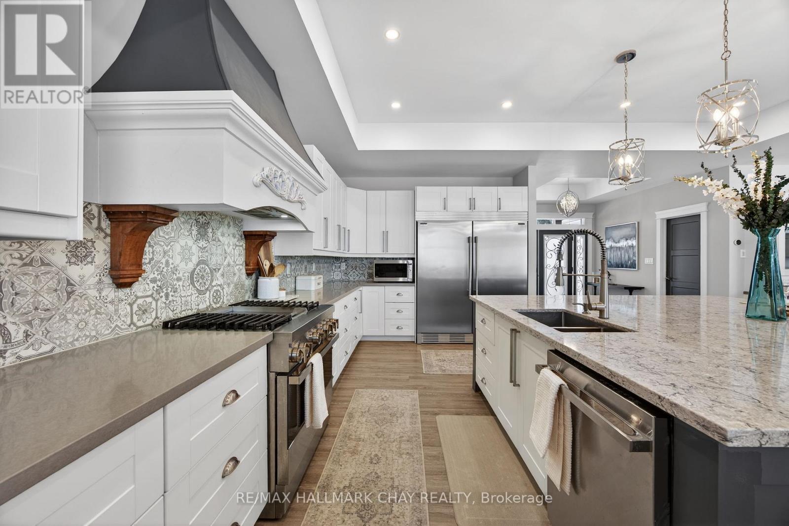 17 Pine Ridge Trail offers luxury estate living in the heart of Horseshoe Valley, set on a private maple-treed lot backing onto forest on a quiet dead-end street. Step inside and you'll immediately appreciate the bright, open-concept design with high ceilings, pot lighting, and oversized rear windows that bring the outdoors in. The chef-inspired kitchen is truly the heart of the home, featuring a massive centre island with stone countertops, oversized double stainless fridge, gas range, dishwasher, bar fridge, and range hood-perfect for everyday living and entertaining. Between the kitchen and living room, you'll love the dedicated dining area with custom built-in cabinetry, this area is ideal for family meals, homework space, or a functional work-from-home setup, with walkout to the timber-framed covered porch complete with multiple gas lines for year-round outdoor enjoyment. The inviting living room is anchored by a stunning gas fireplace and views of the private backyard. Also on the main level is a versatile office, playroom, or potential additional bedroom, along with a 2-piece bath and oversized mudroom. The triple car garage offers two convenient interior access points-one into the mudroom and another directly to the basement stairway-providing exceptional everyday functionality. Upstairs features four spacious bedrooms including a primary suite with vaulted ceilings, walk-in closet with direct access to the laundry room, and a spa-like 5-piece ensuite with soaker tub, separate shower, and double sinks. A guest bedroom includes its own 4-piece ensuite, while bedrooms two and three share a semi 5 piece ensuite. Located minutes to Horseshoe Resort, Vettä Nordic Spa, trails, the new school, and recreation centre, you'll enjoy privacy, comfort, and true four-season living. Property has available - Residential Building / Apartment Dwelling (Finished Basement) Permit. (id:64974)