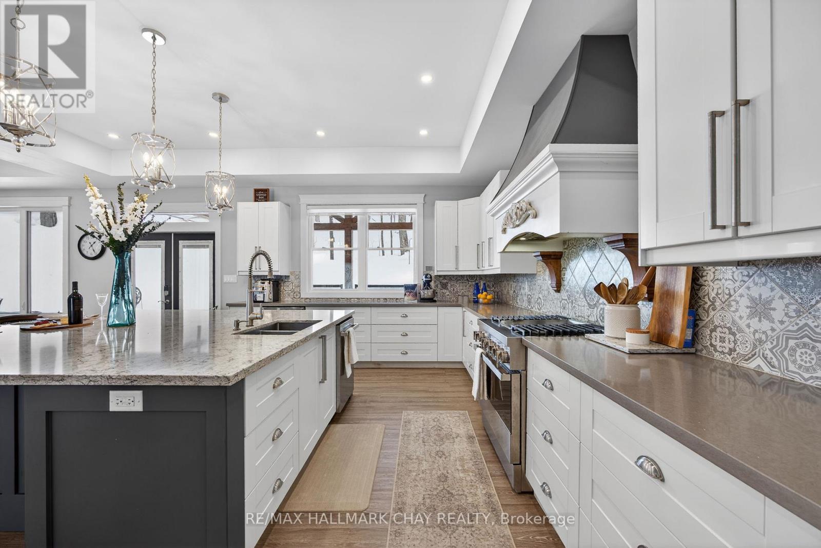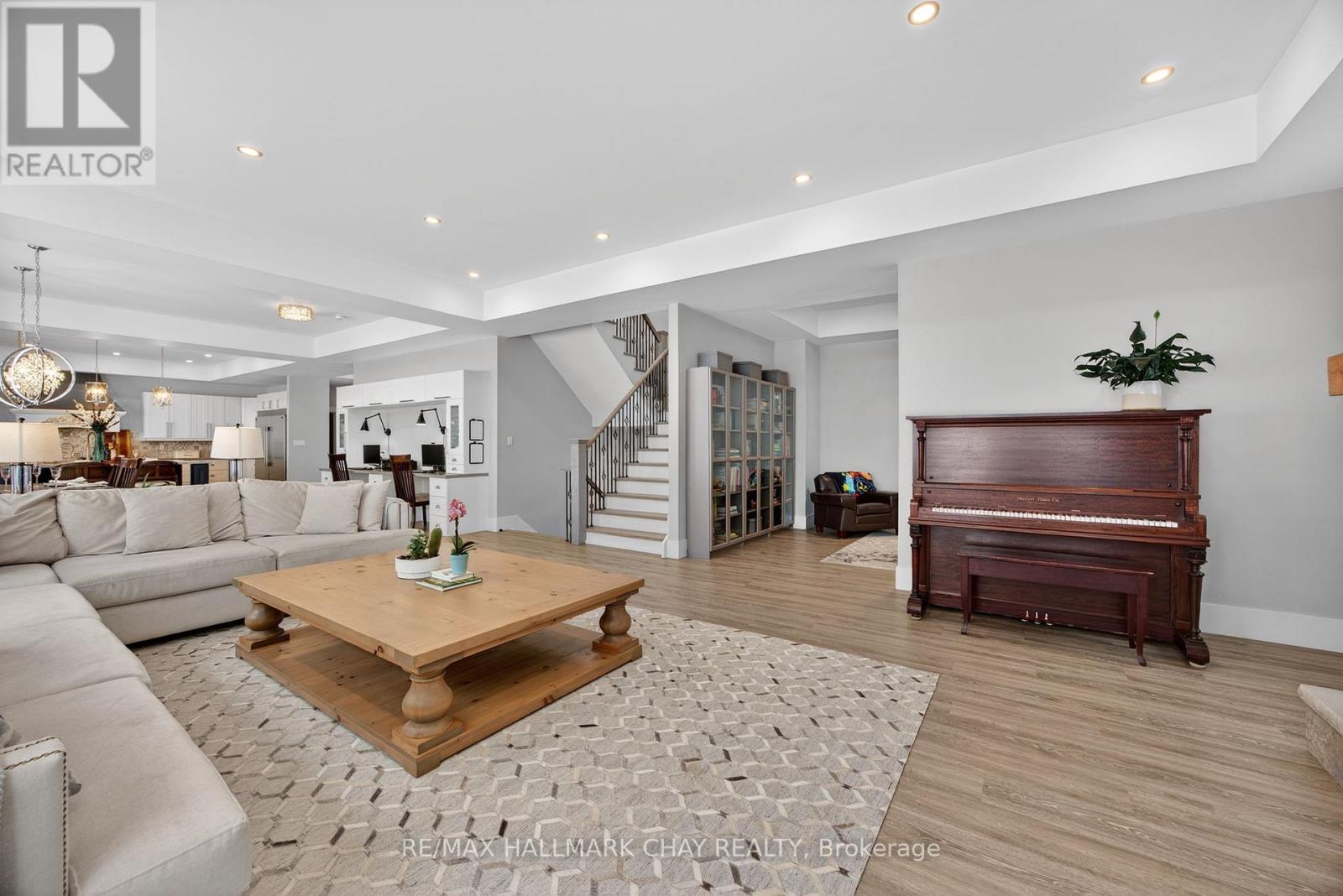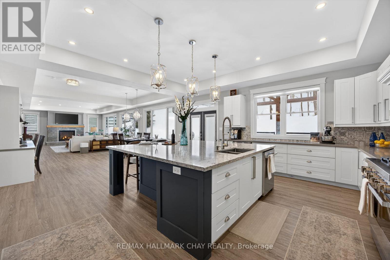 17 Pine Ridge Trail offers luxury estate living in the heart of Horseshoe Valley, set on a private maple-treed lot backing onto forest on a quiet dead-end street. Step inside and you'll immediately appreciate the bright, open-concept design with high ceilings, pot lighting, and oversized rear windows that bring the outdoors in. The chef-inspired kitchen is truly the heart of the home, featuring a massive centre island with stone countertops, oversized double stainless fridge, gas range, dishwasher, bar fridge, and range hood-perfect for everyday living and entertaining. Between the kitchen and living room, you'll love the dedicated dining area with custom built-in cabinetry, this area is ideal for family meals, homework space, or a functional work-from-home setup, with walkout to the timber-framed covered porch complete with multiple gas lines for year-round outdoor enjoyment. The inviting living room is anchored by a stunning gas fireplace and views of the private backyard. Also on the main level is a versatile office, playroom, or potential additional bedroom, along with a 2-piece bath and oversized mudroom. The triple car garage offers two convenient interior access points-one into the mudroom and another directly to the basement stairway-providing exceptional everyday functionality. Upstairs features four spacious bedrooms including a primary suite with vaulted ceilings, walk-in closet with direct access to the laundry room, and a spa-like 5-piece ensuite with soaker tub, separate shower, and double sinks. A guest bedroom includes its own 4-piece ensuite, while bedrooms two and three share a semi 5 piece ensuite. Located minutes to Horseshoe Resort, Vettä Nordic Spa, trails, the new school, and recreation centre, you'll enjoy privacy, comfort, and true four-season living. Property has available - Residential Building / Apartment Dwelling (Finished Basement) Permit. (id:64974)