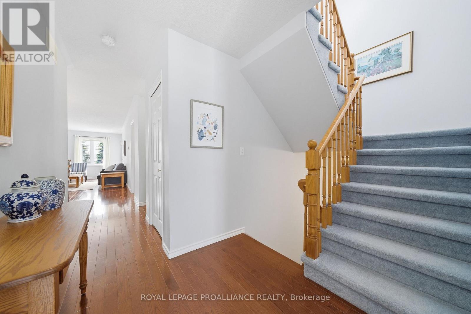 Nestled on a quiet court in Belleville's sought-after East End, this immaculate townhome is ready to steal your heart. Gorgeous hardwood floors flow through the living and dining areas, while a bright white kitchen keeps the charm cooking. The gas fireplace in the living room sets the mood before you step out onto a private deck - perfect for firing up the barbecue on warm summer evenings.The main floor primary bedroom enjoys ensuite privileges to an updated bathroom. Up a split staircase is a versatile loft space that opens to two generous bedrooms and a spacious four-piece bath. The unfinished basement offers endless potential with a rough-in for another four-piece bathroom and plenty of storage.Thoughtful extras like convenient main-level laundry, central vacuum, an inground sprinkler system, and an attached single garage sweeten the deal. With grocery shopping, Shoppers Drug Mart, Belleville General Hospital, and the scenic Bayshore Trail just a short walk away, daily errands practically handle themselves. (id:64974)