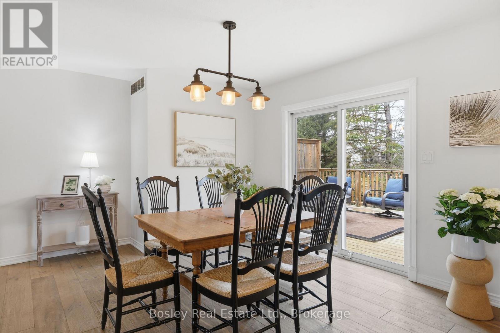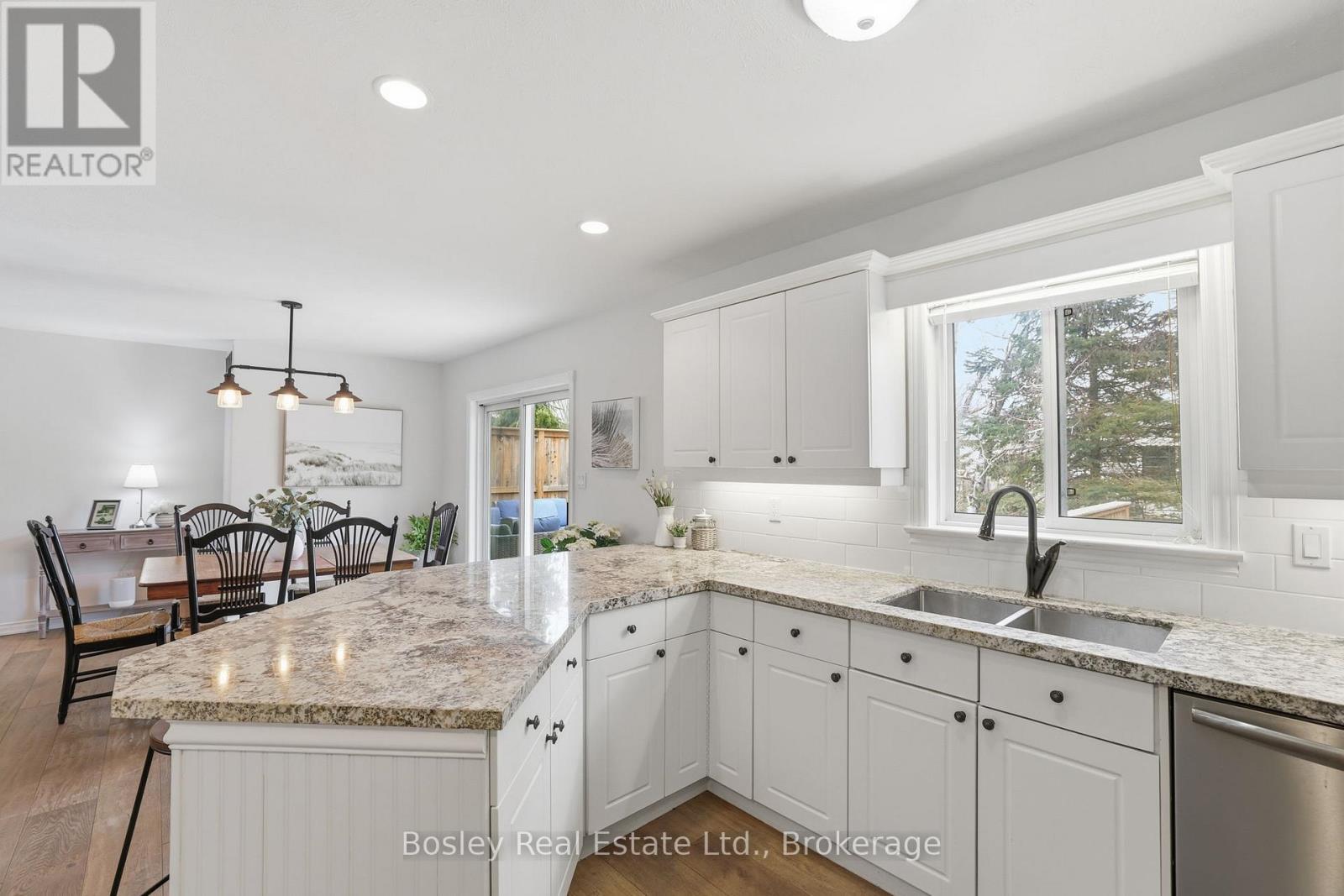 Welcome to refined bungalow living-where thoughtful design, modern upgrades, and comfortable, easy living come together across more than 2,300 sq ft of beautifully finished space. The open-concept main floor is both elegant and inviting, featuring expansive principal rooms, abundant natural light, and seamless engineered hardwood throughout. A tranquil primary suite and convenient main floor laundry enhance everyday ease. At the centre, the kitchen is designed for connection-complete with premium stainless steel appliances, induction cooking, and effortless flow for both entertaining and daily living. The fully finished lower level offers exceptional versatility with a spacious family room, games and fitness areas, guest bedroom, bath, and generous storage. Outdoors, a covered front verandah welcomes you, while the private backyard reveals a truly special setting-mature trees, exceptional privacy and a gentle stream creating a calming, natural backdrop as you unwind on the expansive deck. Quietly tucked along a low-traffic street in a mature, sought-after neighbourhood. Freshly updated and truly move-in ready with owned high-efficiency systems including Smart air furnace, air cleaner, Lifebreath system (2017), and new sump pump (2026). Oversized garage and four-car drive complete the offering. Just moments to Meaford's charming main street and the shores of Georgian Bay-enjoy the ease of local shops, cafes, schools, and essential amenities, all within minutes. A short drive connects you to Thornbury, Collingwood, ski hills, golf, waterfalls, and endless trails-delivering the perfect balance of relaxed small-town living with everyday convenience and four-season adventure. (id:64974)
