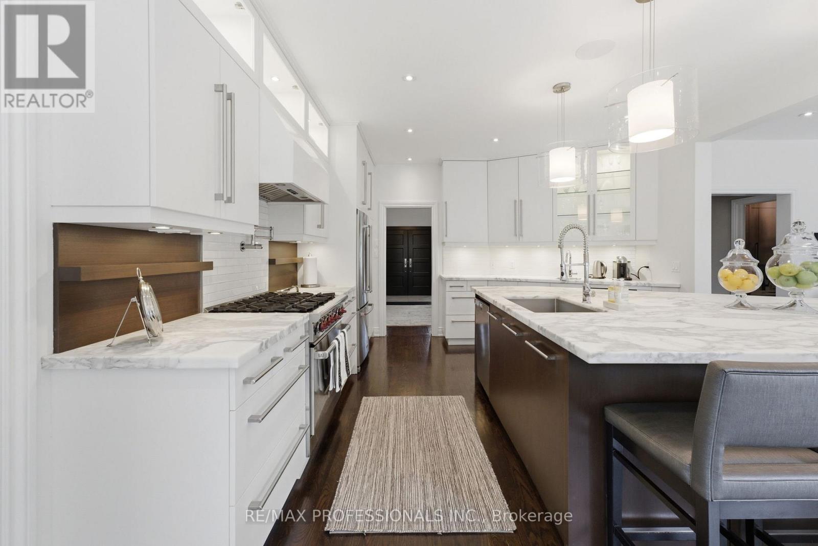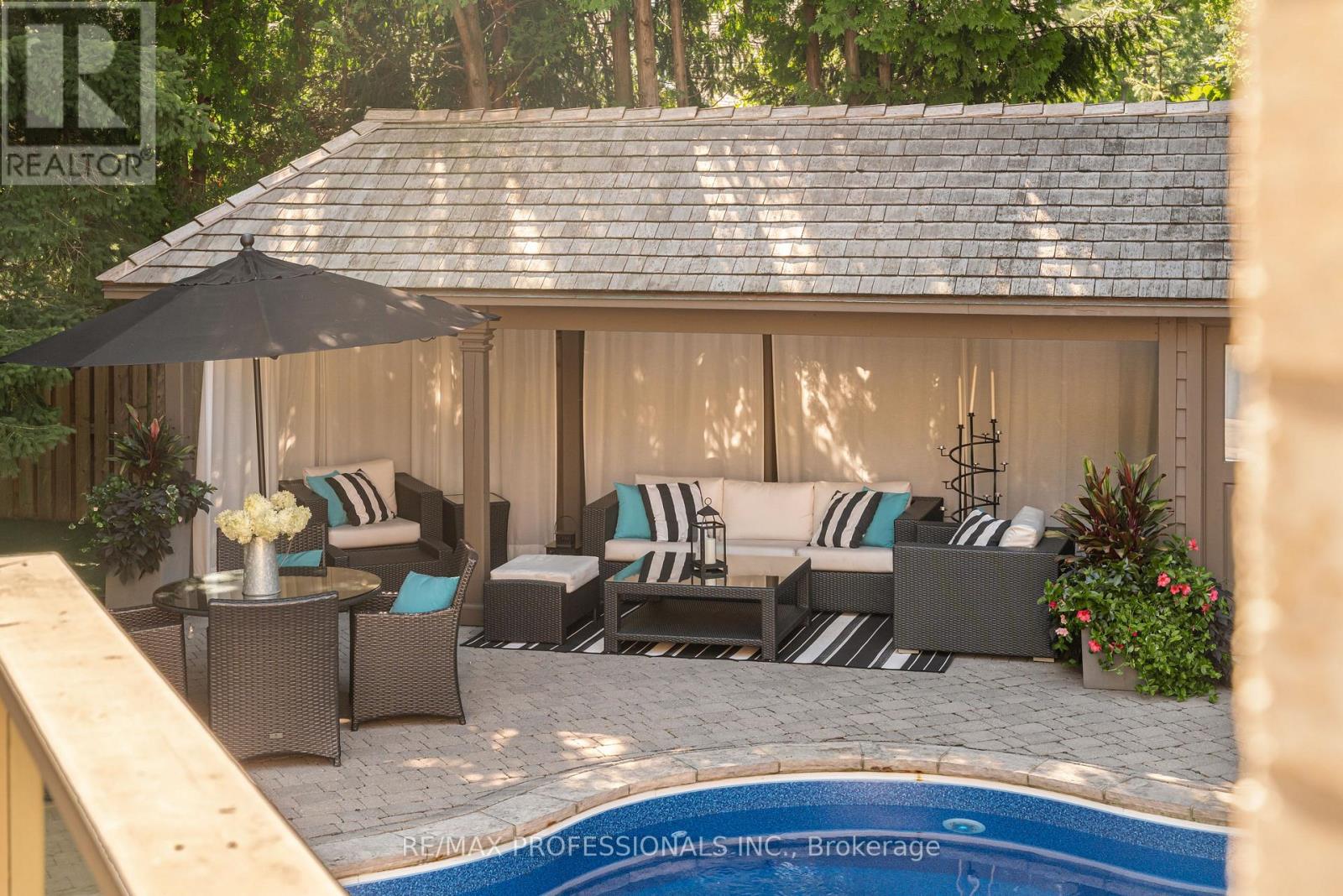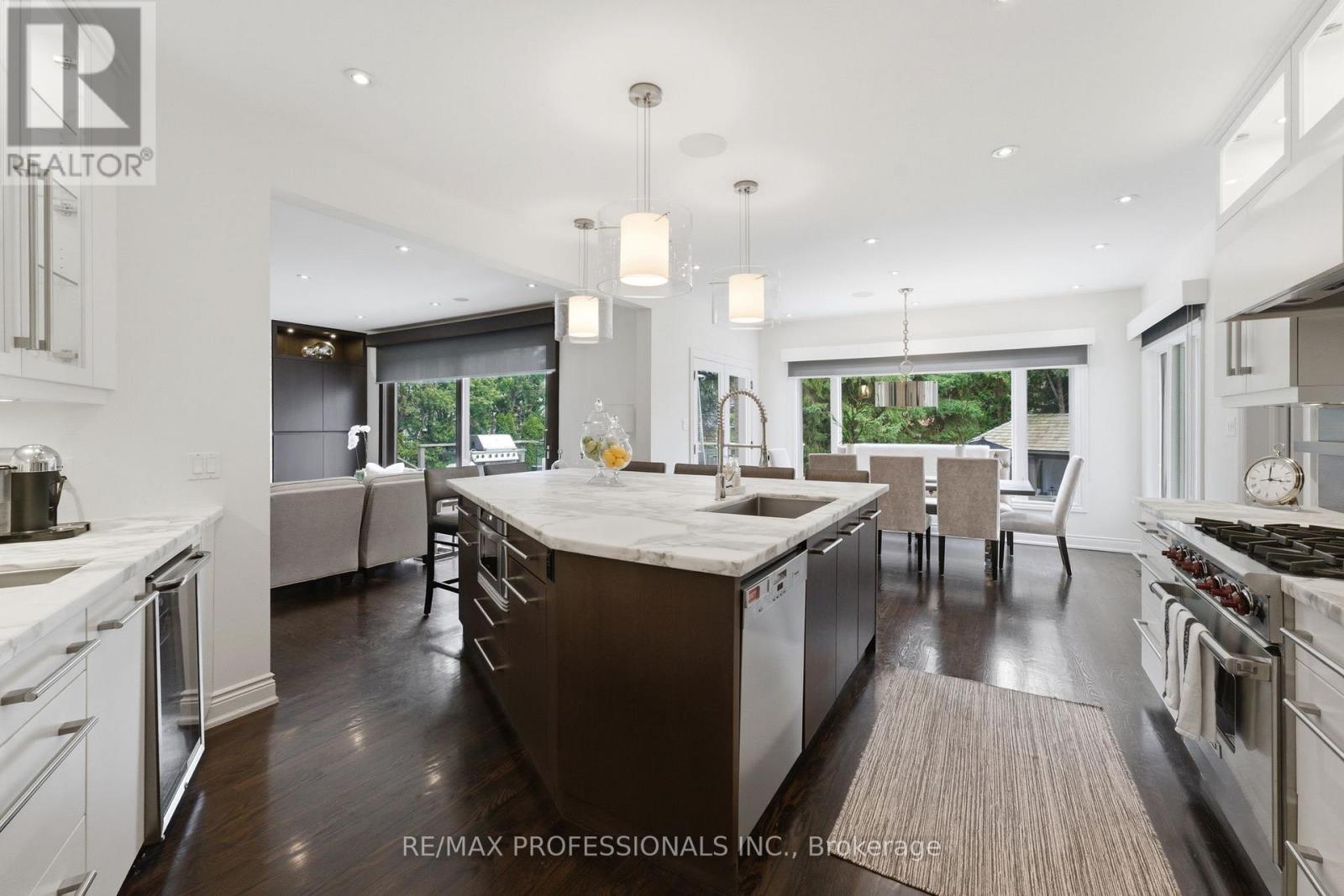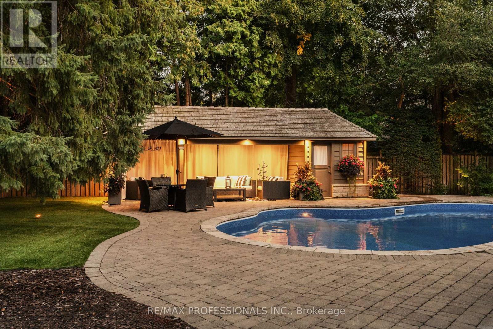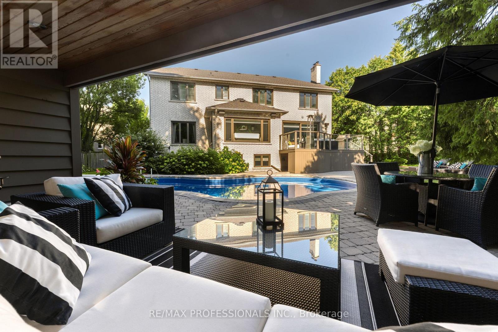 Custom Luxury Build on Prime Islington Heights Street with Rare Pie-Shaped Lot. Nestled On One of Islington Heights' Most Desirable Streets, This Exceptional Custom-Built Residence Sits on a Rare Pie-Shaped Lot and Has Been Extensively Renovated and Professionally Landscaped with Premium Finishes Throughout. Offering 4+1 Bedrooms and 5 Bathrooms, the Home is Thoughtfully Designed For Both Luxurious Living and Effortless Entertaining. The Main Floor Features a Chef-Inspired Kitchen With High-End Appliances and Custom Cabinetry, Seamlessly Opening to a Spacious Family Room With Walkout To The Deck. Enjoy Tranquil Views of The Private Backyard Oasis, Complete With a Pool, Cabana, and Beautifully Landscaped Grounds. Elegant Formal Living and Dining Rooms Provide Sophisticated Spaces for Entertaining and Hosting Gatherings. A Dedicated Main Floor Office Provides The Perfect Work-From-Home Space, While A Convenient Garage Entrance Leads Into A Functional And Spacious MudroomThe second level Showcases a Luxurious Primary Retreat With a Spa-Inspired, State-of-the-Art Ensuite, Fabulous Custom Built-ins and Electric Fireplace. Generously Sized Secondary Bedrooms, 3 Baths and Second Floor Laundry Complete This Level.The Fully Finished Walk-Out Lower Level With Impressive 8' Ceilings Offers Exceptional Additional Living Space, Including a Large Recreation Room, Games Area, Gym, Extra Bedroom, and Bathroom-Ideal for Guests, Extended Family, or Entertaining. A Rare Opportunity to Own a Turnkey Luxury Home in Prestigious Islington Heights, Near Islington And St. George's Golf Clubs, Great Schools, All Amenities. Home And Gardens Décor. It's Truly Perfect. (id:64974)