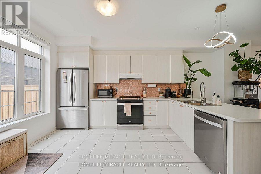 Welcome to 17 Selfridge Way!Less than two years old, this rarely available end-unit townhome with a double-car garage is sure to impress. This sophisticated 3-storey residence features a highly functional layout with an unfinished basement with large windows, offering excellent potential for future living space.The home has four spacious bedrooms, including a unique two-primary-suite layout on the third floor, plus two additional bedrooms on the second floor and a versatile den/office with a bright window-perfect for working from home.The main floor showcases a bright open-concept design featuring a spacious great room, a modern kitchen with stainless steel appliances, and a dedicated dining area-ideal for both everyday living and entertaining. 9-foot ceilings on the main floor enhance the sense of space and natural light.The second floor includes two well-appointed bedrooms, a flexible den that can be used as a home office, a full bathroom, and a conveniently located laundry room.The third floor features a luxurious primary suite with a four-piece ensuite and a large walk-in closet, along with a fourth bedroom with its own private 3-piece ensuite-perfect for extended family or guests.Additional features include a 200-AMP electrical panel and excellent overall value.Located in a high-demand Whitby neighborhood, this home is minutes from the GO Station, shopping, and downtown Whitby, steps from Trafalgar Castle School, and easy access to Highways 401 and 412.A perfect home for buyers seeking space, comfort, and convenience.Best value of its kind a must see! (id:64974)