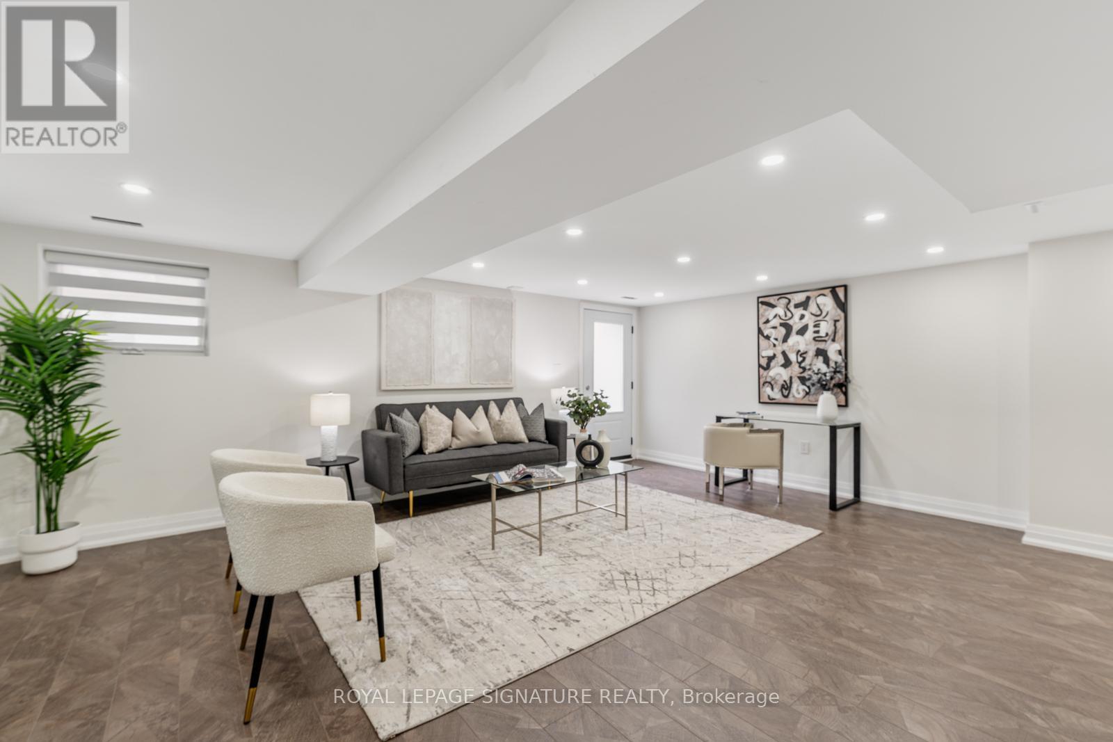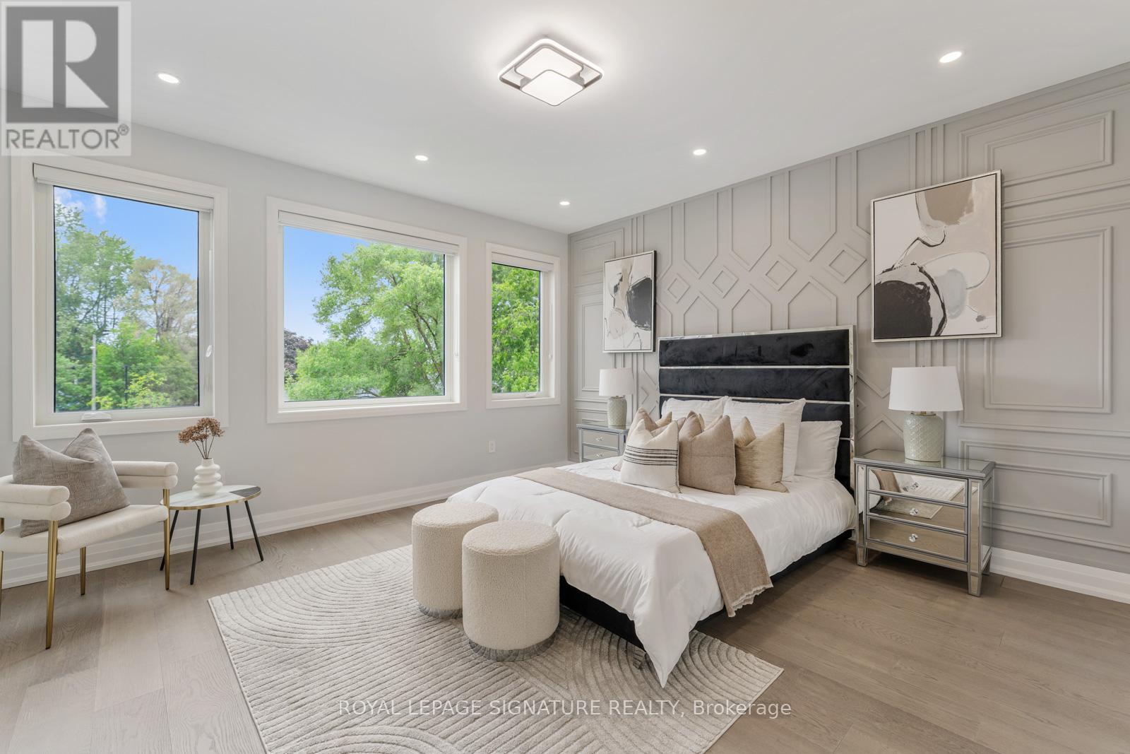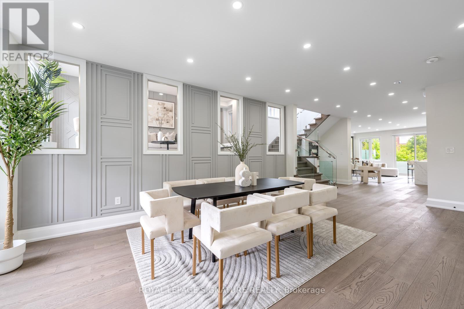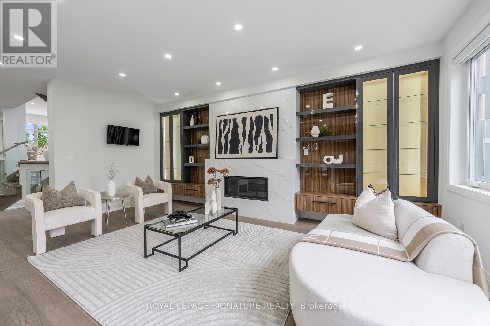 Majestic 4+1 Bedroom, 5 Bathroom Detached Home Situated on a premium 112.5 ft deep lot! This stunning property offers 2,481 sq ft above grade + 900 sq ft of finished basement space.Impressive curb appeal with stone and ACM Panelling exterior, elegant interlocking and a large covered front porch. Open-concept main floor highlighted by gorgeous engineered hardwood flooring and custom wainscoting. Spacious dining room ideal for entertaining, with seamless flow into the Family Room featuring built-in cabinetry and a gas fireplace with a sleek feature wall. Chefs kitchen boasts a sleek two-tone design, quartz countertops, matching backsplash, custom pendant lighting, a waterfall center island, high-end built-in appliances, and a full separate pantry. The living room features a gorgeous detailed accent wall and massive windows.Luxurious primary retreat offers a spa-inspired 7-pc ensuite, custom walk-in closet with organizers, and a feature wall. A secondary bedroom includes its own private 4-pc ensuite and double closet. 3rd and 4th Bedrooms share a 4pc bath and both include double closets! Convenient second-floor laundry room included.The fully finished basement features LED pot lights, a stylish full kitchen with quartz counters, stainless steel appliances, a 4-pc bathroom with custom tiling, separate laundry, and direct walk-out access. Includes 1 spacious bedroomsperfect for an in-law suite or income potential and a massive rec room can be split to create a 2nd bedroom!Fully fenced backyard with a large sun deck and a large shed! Steps to the TTC and the grand Stan Wadlow Park and Taylor Creek Trails! (id:64974)