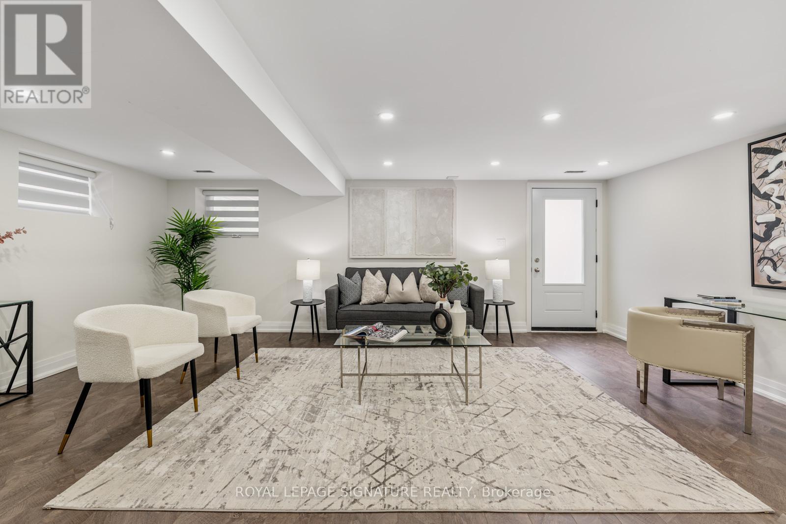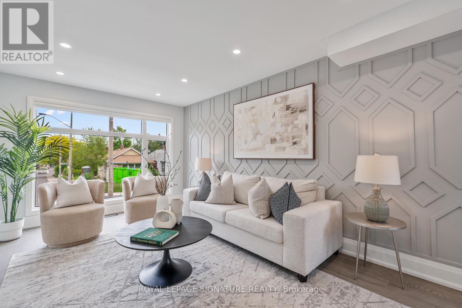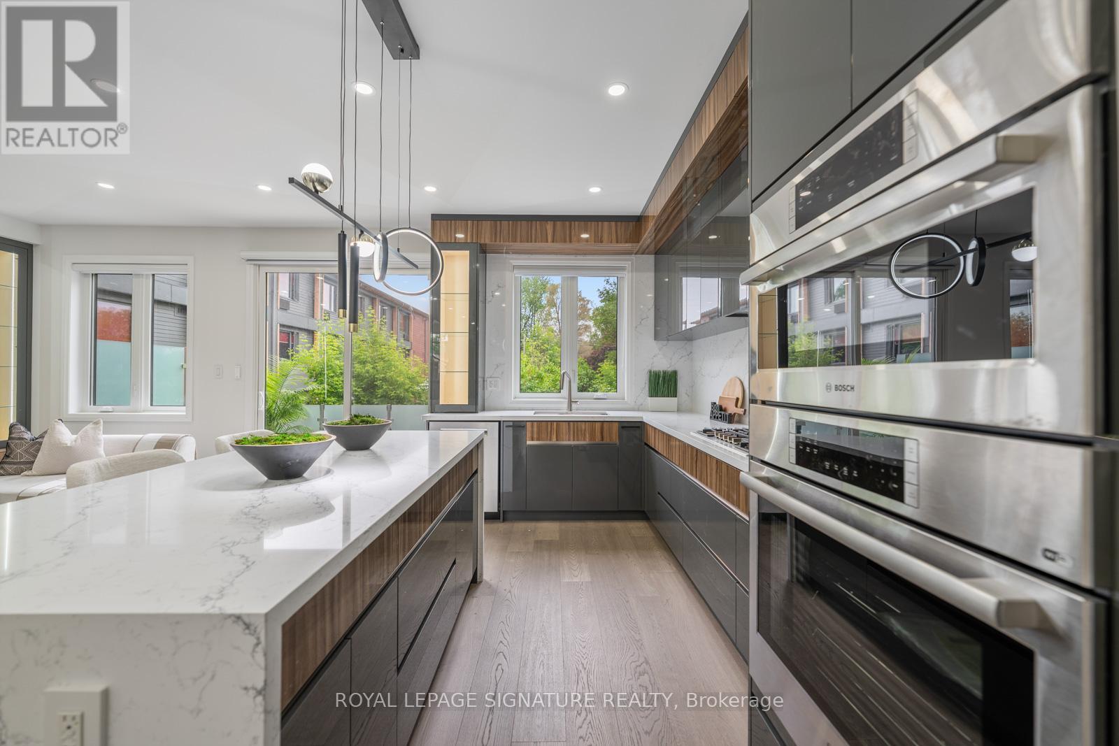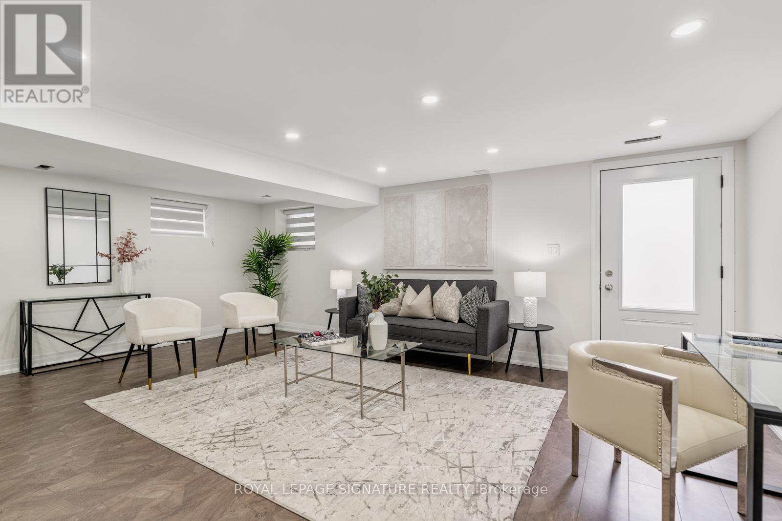Majestic 4+1 Bedroom, 5 Bathroom Detached Home Situated on a premium 112.5 ft deep lot! This stunning property offers 2,481 sq ft above grade + 900 sq ft of finished basement space.Impressive curb appeal with stone and ACM Panelling exterior, elegant interlocking and a large covered front porch. Open-concept main floor highlighted by gorgeous engineered hardwood flooring and custom wainscoting. Spacious dining room ideal for entertaining, with seamless flow into the Family Room featuring built-in cabinetry and a gas fireplace with a sleek feature wall. Chefs kitchen boasts a sleek two-tone design, quartz countertops, matching backsplash, custom pendant lighting, a waterfall center island, high-end built-in appliances, and a full separate pantry. The living room features a gorgeous detailed accent wall and massive windows.Luxurious primary retreat offers a spa-inspired 7-pc ensuite, custom walk-in closet with organizers, and a feature wall. A secondary bedroom includes its own private 4-pc ensuite and double closet. 3rd and 4th Bedrooms share a 4pc bath and both include double closets! Convenient second-floor laundry room included.The fully finished basement features LED pot lights, a stylish full kitchen with quartz counters, stainless steel appliances, a 4-pc bathroom with custom tiling, separate laundry, and direct walk-out access. Includes 1 spacious bedroomsperfect for an in-law suite or income potential and a massive rec room can be split to create a 2nd bedroom!Fully fenced backyard with a large sun deck and a large shed! Steps to the TTC and the grand Stan Wadlow Park and Taylor Creek Trails! (id:64974)