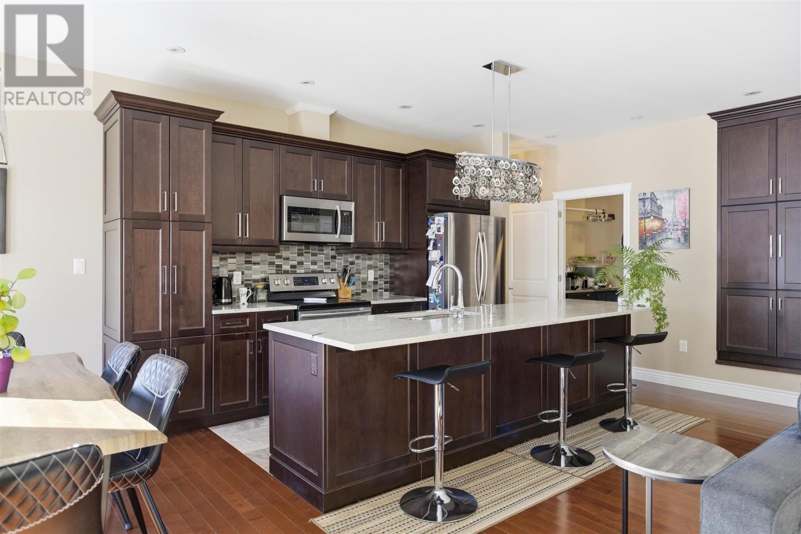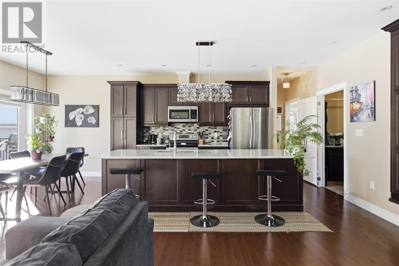 Welcome to this beautifully maintained 1,650 sqft home built in 2015, offering modern comfort, thoughtful design, and quality build/finishes throughout. The heart of the home features a spacious open-concept kitchen, dining, and living area with 9-foot ceilings and hardwood flooring throughout the main spaces. The kitchen is designed for both everyday living and entertaining, showcasing a large granite island, abundant cabinetry, tile flooring, and all appliances included. Patio doors lead to a large wood deck and fully fenced in backyard making outdoor entertaining effortless. This home offers three bedrooms in total. Two spacious bedrooms and a 4-piece bathroom with granite and tile are situated at one end of the home. The primary suite is privately located at the opposite end and features hardwood flooring, patio doors to the deck, a large walk-in closet, and a luxurious 5-piece ensuite complete with a soaker tub, and walk-in shower. Additional features include main floor laundry, oversized attached garage with access to basement, concrete driveway, gas forced air heating with central air conditioning, water filtration system, insulated basement with operational 3rd bathroom and excellent opportunity for future development. Lots of value in this well-built, move-in ready home offering space, quality, future potential and sitting in a fantastic east end neighbourhood. (id:64974)