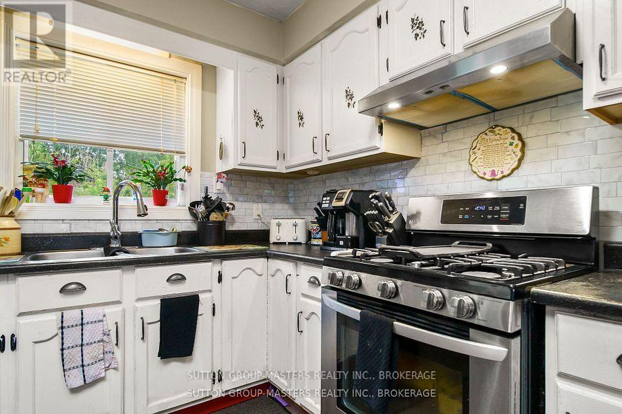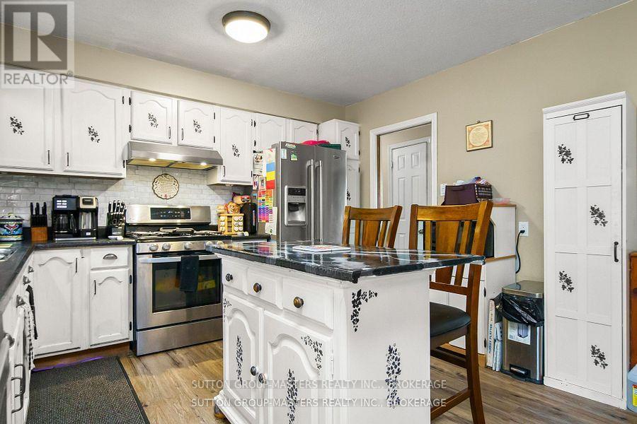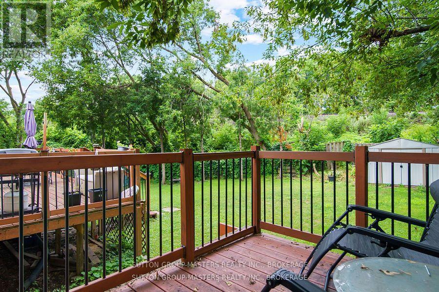Its family approved! This 5-bedroom, 2-bath home offers outstanding value and a timeless layout that just works. Mostly hardwood, tile, and laminate flooring throughout, a cozy rec room with a gas fireplace, and a jetted tub in the main bath add comfort and charm. Enjoy two decks, a full set of included appliances, and a peaceful side yard perfect for a hammock nap beneath the trees. Despite being close to schools, parks, and churches--and within walking distance of downtown--the lot feels wonderfully private and has a touch of country calm. A proven favourite for good reason. Trust your instincts and book a viewing today! The lower level could easily transform into an in-law suite or make an ideal teen suite. Some photos not exactly as shown due to recent renovations. (id:64974)