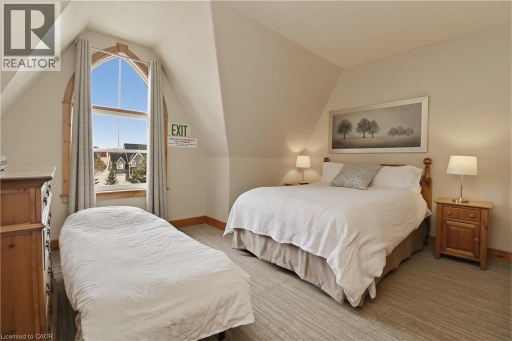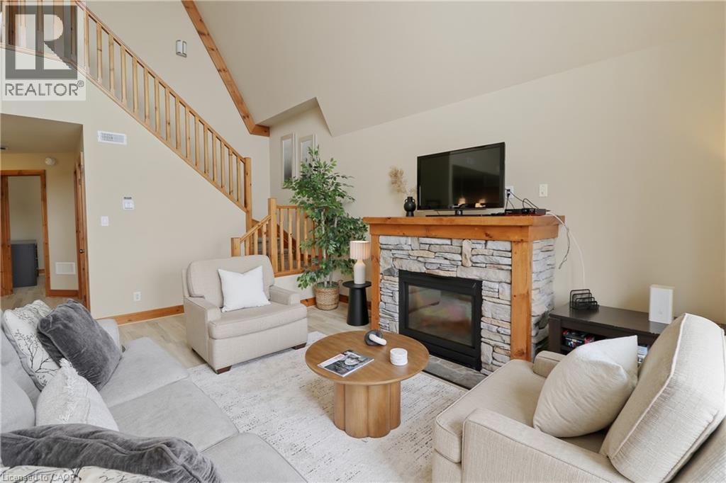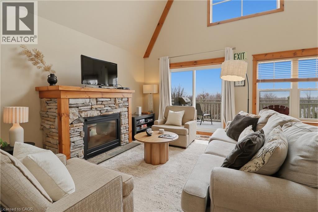Licensed for Short-Term Rentals! This beautifully designed 2-bedroom, 2-bathroom upper-level condo is located in the sought-after Historic Snowbridge community at Blue Mountain Resort. With its established rental potential, this property offers an ideal opportunity for investors or those seeking a four-season getaway. Enjoy unobstructed golf course views from the private balcony, primary bedroom, and dining area, setting the scene for morning coffee or an evening glass of wine. The open-concept layout features soaring vaulted ceilings, oversized windows that flood the space with natural light, and a cozy gas fireplace for après-ski relaxation. The spacious primary suite includes a private 4-piece ensuite, while the second bedroom and full bath provide comfort for family and guests. This unit also features convenient in-suite laundry, a ski locker for secure storage, and access to a seasonal outdoor pool exclusively for owners and guests. With strong short-term rental demand in the Blue Mountain area, this property combines personal enjoyment with consistent income-generating potential. Owners and visitors alike will love the free resort shuttle offering direct access to Blue Mountain Village, ski hills, restaurants, shops, and nightlife. In summer, enjoy nearby private beaches, golf courses, and scenic hiking trails. Whether it’s skiing, hiking, relaxing, or entertaining, Historic Snowbridge is the ultimate four-season escape and a proven short-term rental investment. (id:64974)