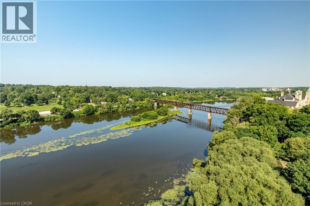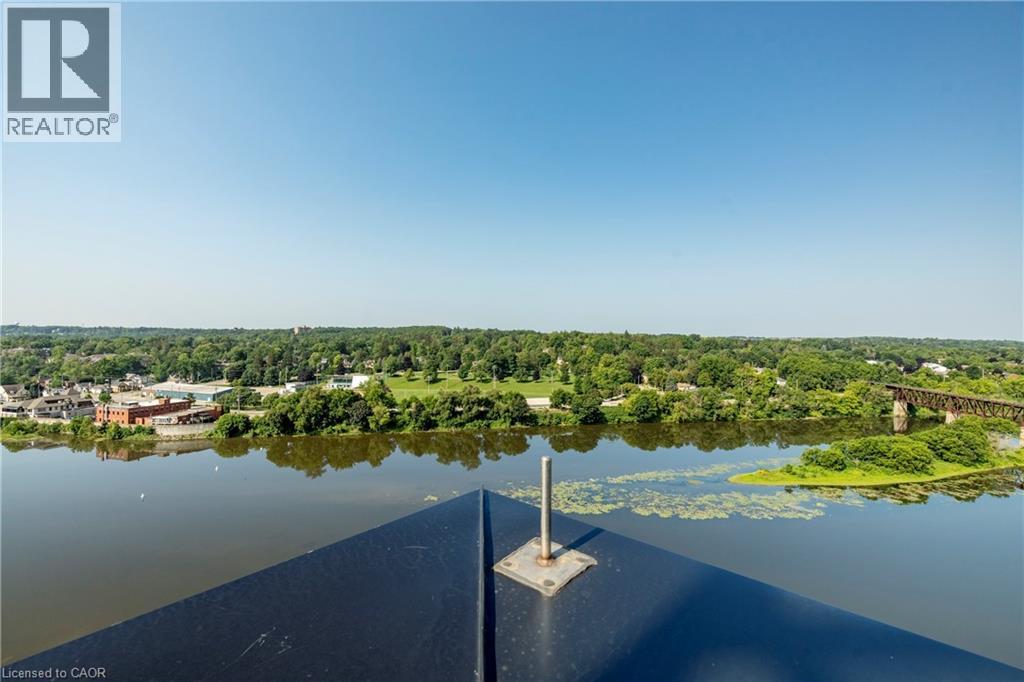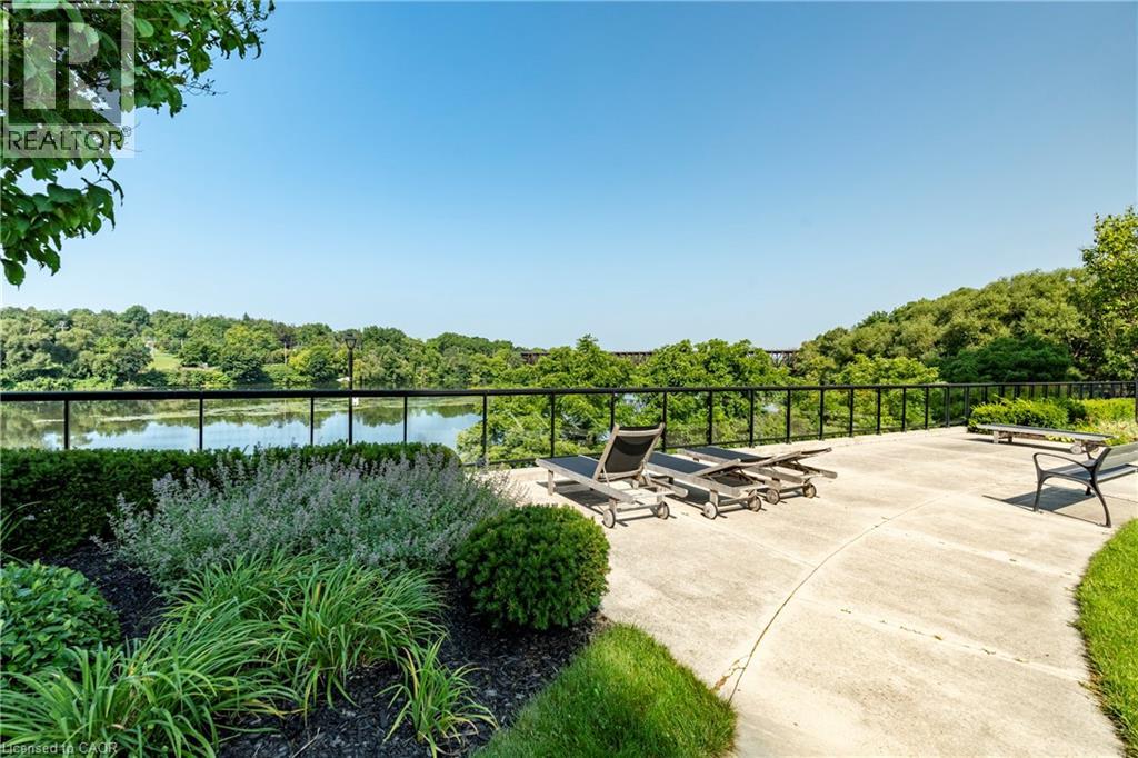 Located in the heart of Cambridge’s beautiful and historic downtown core, this spacious 1-bedroom end-unit apartment offers 785 square feet of stylish and comfortable living. As an end unit, you’ll enjoy neighbours on only one side and an abundance of natural light that fills the space. Inside, you’ll find high ceilings, fresh paint, and laminate flooring throughout. The modern kitchen is perfect for everyday living and entertaining, and the convenience of in-suite laundry makes life easy. Step out onto your private balcony to enjoy your morning coffee or unwind in the evening. This highly sought-after building offers exceptional amenities, including a large outdoor terrace with lounge chairs overlooking the Grand River, a fully equipped gym on the top level, a rentable common room for gatherings, and a stunning rooftop patio. Walking trails right behind the building allow you to stroll or bike along the river whenever you like. An added bonus is the on-site guest suite available for rent when friends or family come to visit. Conveniently located right next door to this unit, it’s the perfect setup for out-of-town guests — close enough to feel connected while still offering everyone their own private space. The monthly rent includes heat, air conditioning, and water. Underground parking for one vehicle and a private 5x3 locker are also included. Available immediately. Enjoy low-maintenance living in one of Cambridge’s most desirable riverfront locations. (id:64974)
