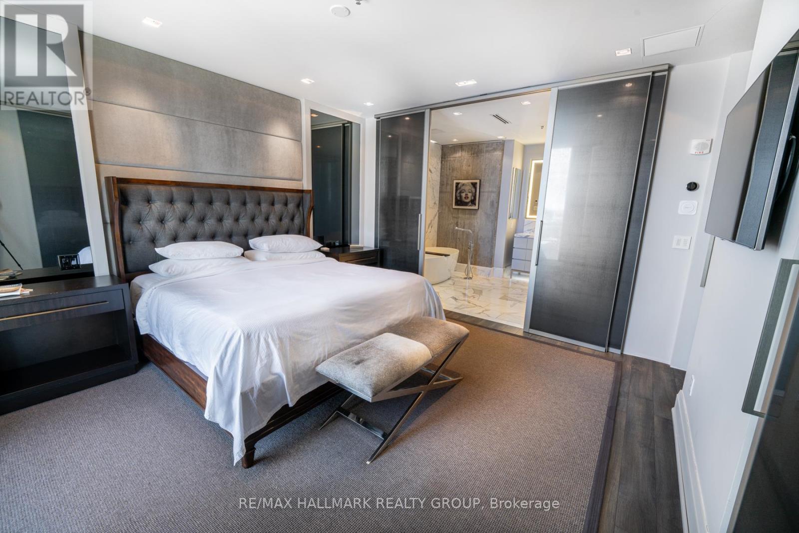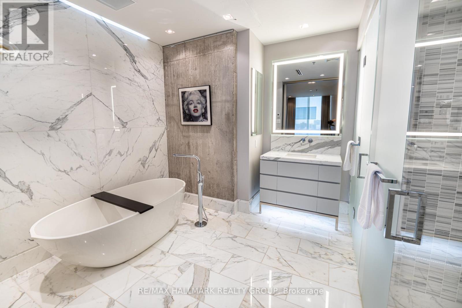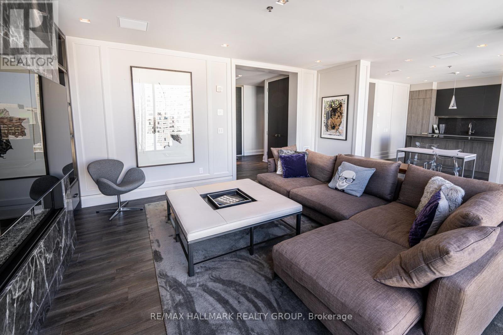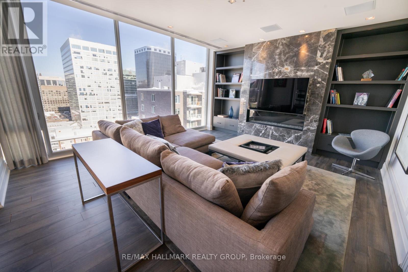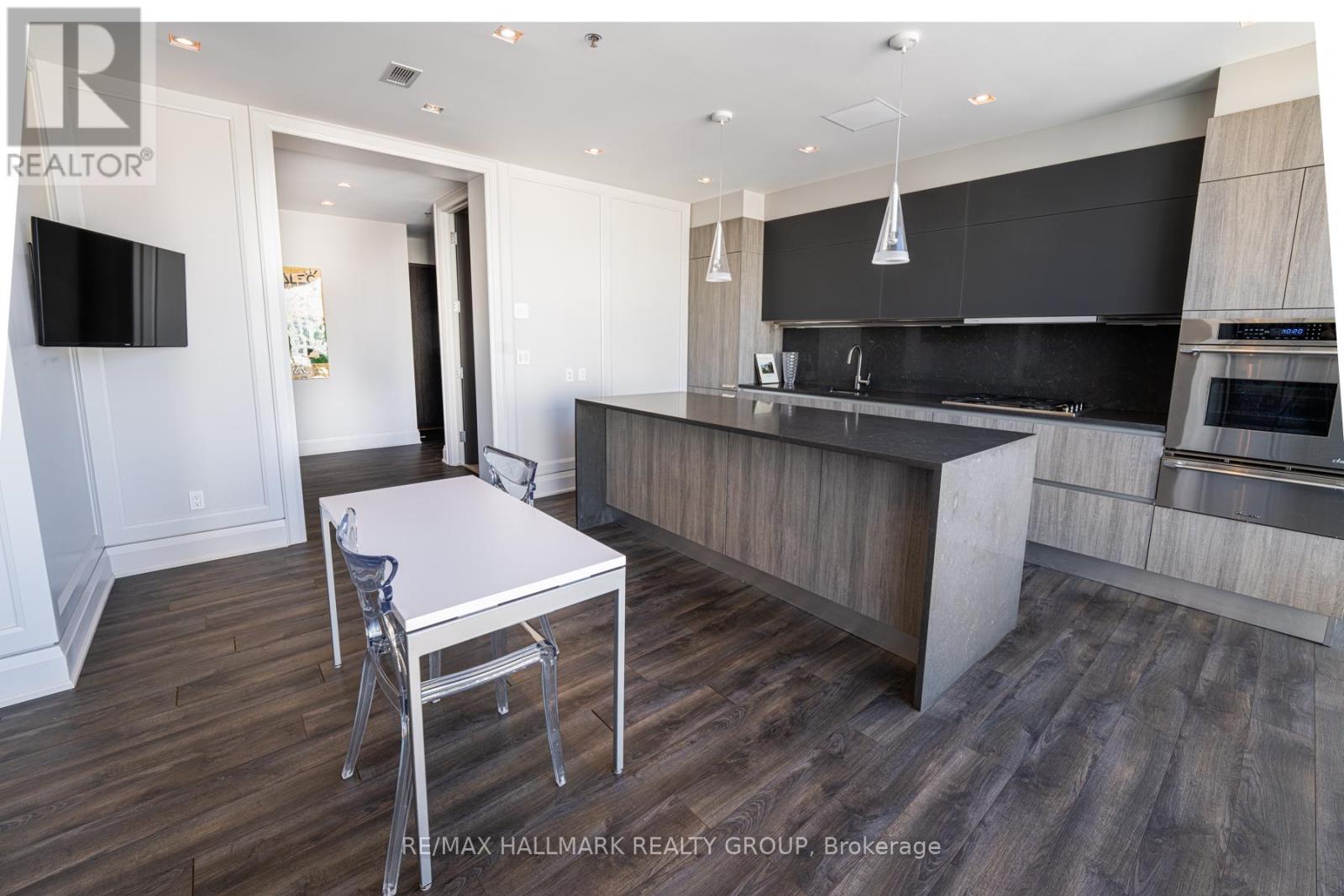 EXCLUSIVE OPPORTUNITY to rent a real top floor executive condo in one of downtown Ottawa's most prestigious buildings, Soho Lisgar. Discover opulence in this 1400+ sqft penthouse with dramatic floor-to-ceiling windows, framing the mesmerizing downtown skyline. The one of a kind Scavolini kitchen with quartz counters, gas cooktop and high-end appliances is a chef's dream. Relax and unwind in the spacious living room complete with a linear fireplace and wall mounted big screen. The large primary bedroom boasts a walk-in closet and a one of kind inspired 4-piece bathroom with marble and a large soaker tub. This sanctuary not only offers lavish interiors but also bathes in natural light, accentuating its spacious layout. It's not just a home, it's a statement. A viewing is imperative to fully appreciate its majesty. Perfect for your most discerning clients seeking elegance and exclusivity. (id:64974)