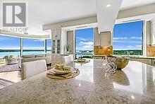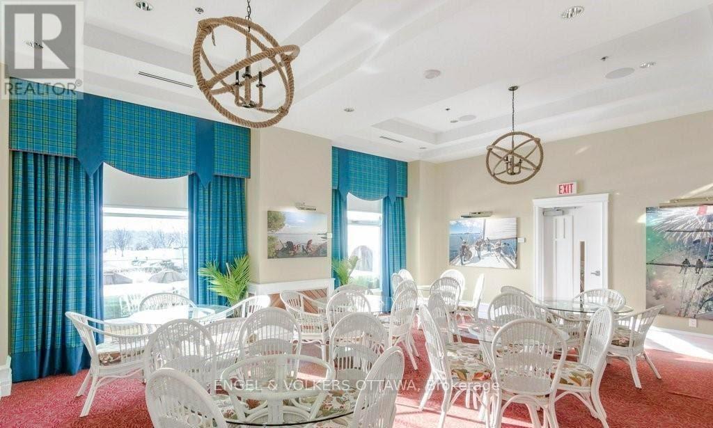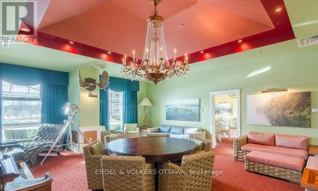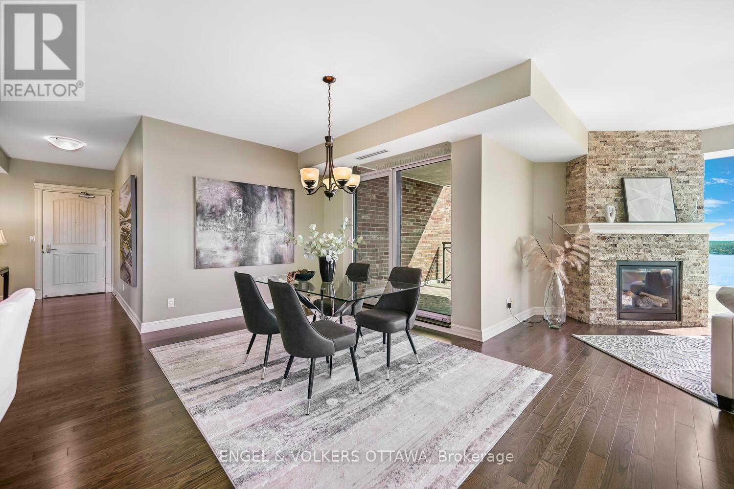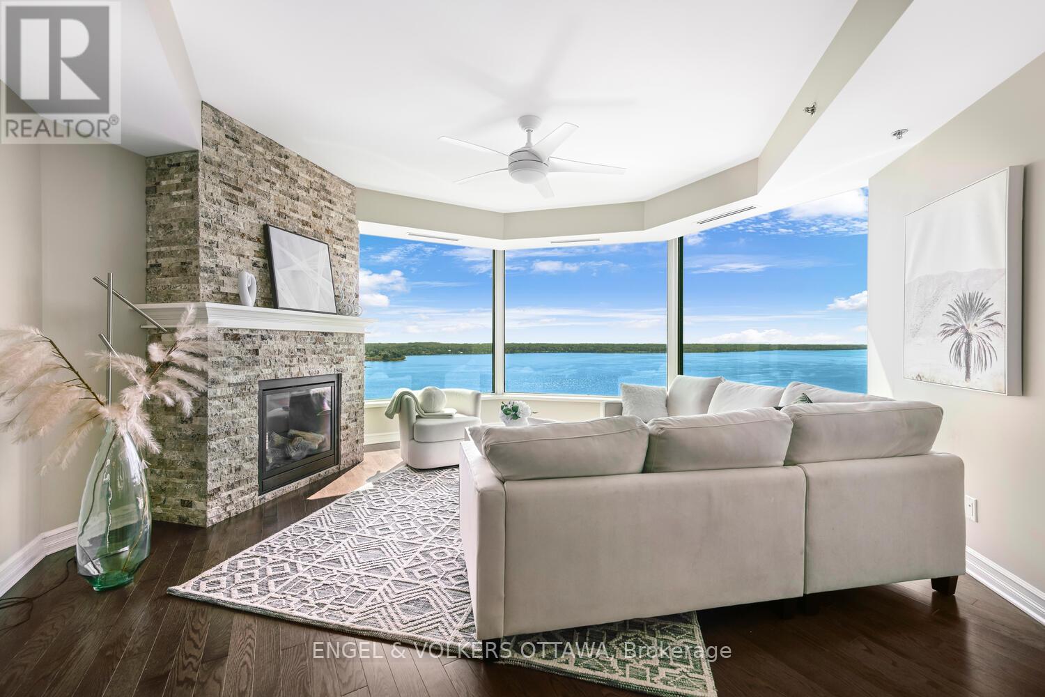 Upon entering you are immediately drawn to the most remarkable view and the magic of the Thousand Islands! Enjoy the endless wonder of ships from faraway places, majestic cruise ships and private yachts plying the waters of the St. Lawrence River! This west facing T'Gallant suite boasts approximately 1622 sq. ft. of superbly designed luxury living plus 110 sq. ft. balcony. Open concept great room style combines a high quality custom kitchen with huge centre island, high end appliances, quartz countertops and great task lighting. This flows seamlessly to a spacious dining area and to an octagonal living room. The subtle stone work surrounding the gas fireplace adds a classic touch to an already extraordinary living space. And all this as well as both bedrooms and hallways are anchored by rich hardwood flooring. The primary bedroom easily accommodates a king size bed plus tonnes of space for bedside tables, armoires, etc. The ensuite bath separate shower, bath, double sinks, lots of storage and ceramic flooring. The second bedroom is easily used as a den, office and for occasional overnight stays. A second full bath completes the suite. Impeccably maintained throughout. Tall Ships offers amazing amenities indoor pool, sauna, indoor and outdoor hot tubs, meeting rooms, catering kitchen. Indoor parking for one car is included. (id:64974)