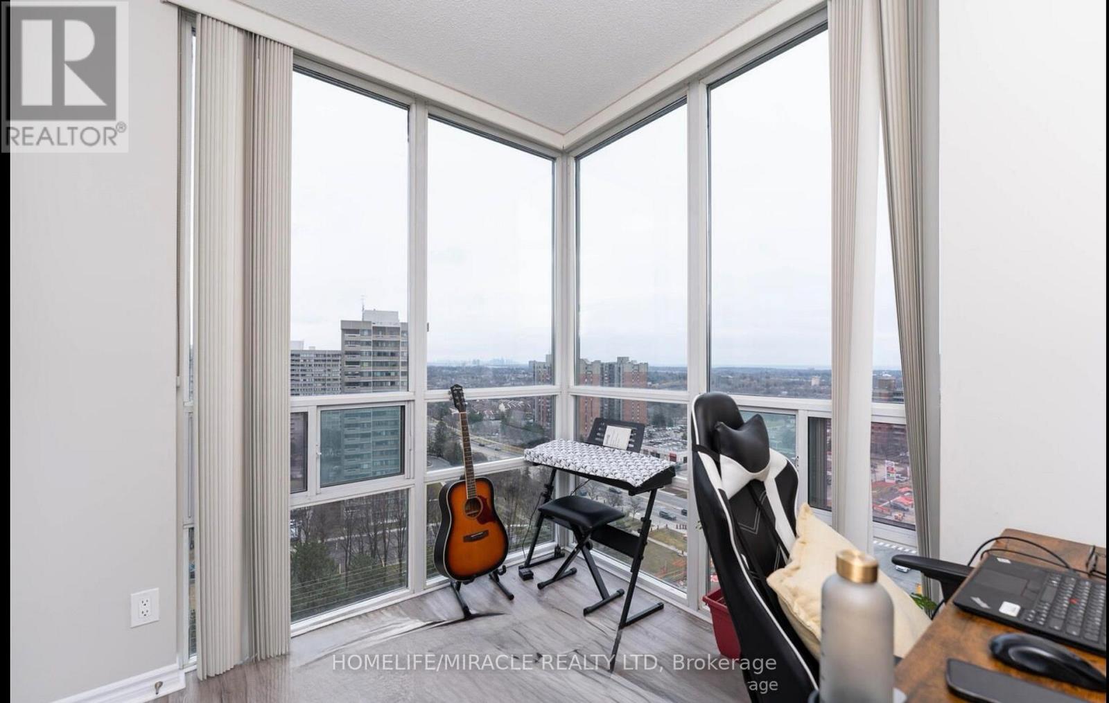 Experience elevated living in this premium south-east facing suite with unobstructed panoramic views of downtown Toronto and Lake Ontario. This spacious 2-bedroom plus sun-filled den, 2-bath residence showcases a highly efficient layout with all rectangular rooms, maximizing usable space and design flexibility. The primary retreat features a fully customized walk-in closet and a spa-inspired 4-piece ensuite. Floor-to-ceiling windows bathe the home in natural light, complemented by 9-ft ceilings and elegant hardwood flooring in the living and dining areas. The bright sunroom/den offers a refined space for a home office or lounge. Thoughtfully upgraded with custom shelving in all wardrobes and bathrooms for exceptional, organized storage.All-inclusive maintenance fees cover heat, hydro (electricity), water, parking, building insurance, common elements, and car wash facilities - enjoy true worry-free living with no extra utility costs. Ideally located steps from Square One Shopping Centre, schools, GO Transit, public transit, and the upcoming LRT, in one of the city's most sought-after urban communities. (id:64974)