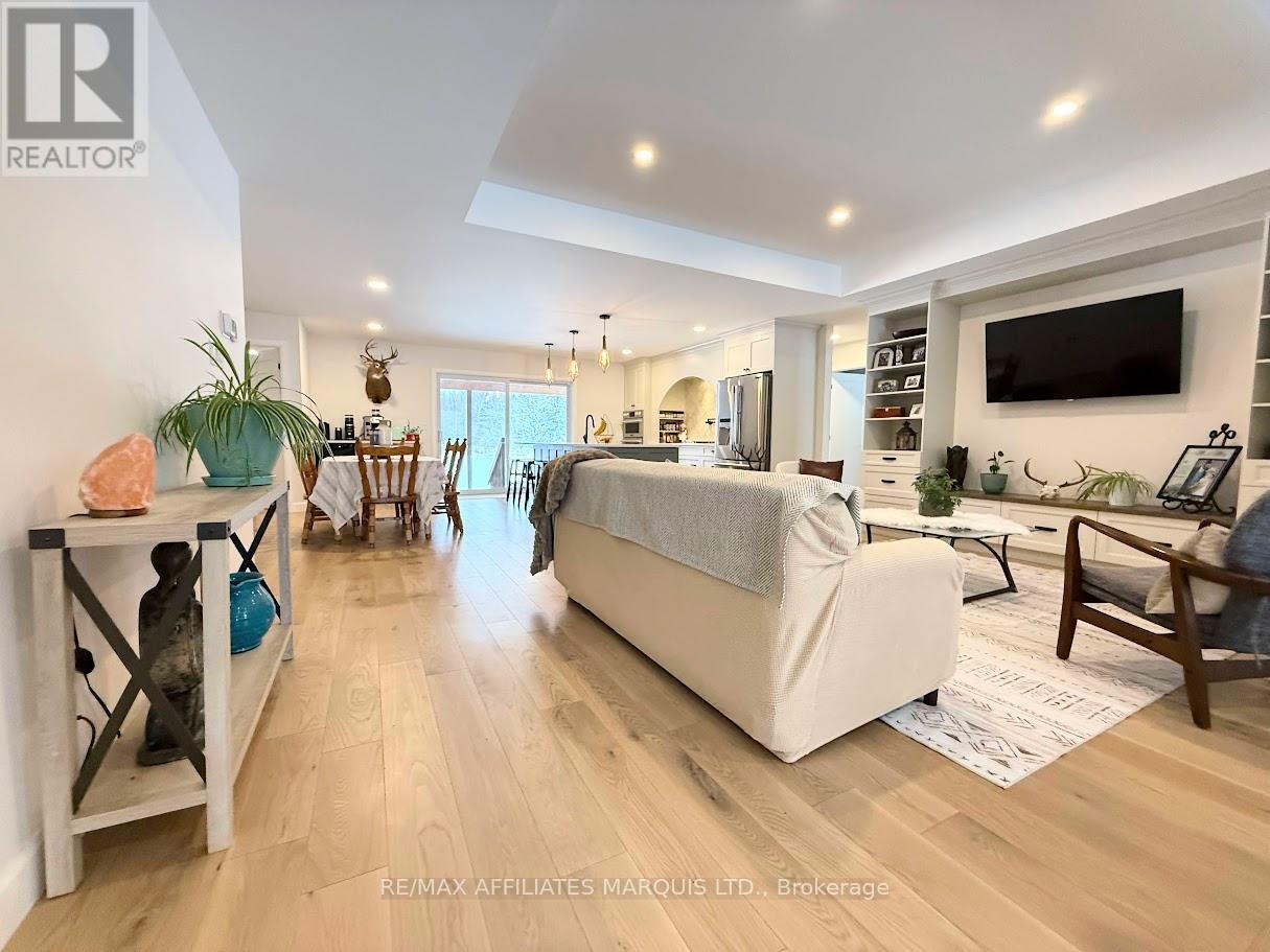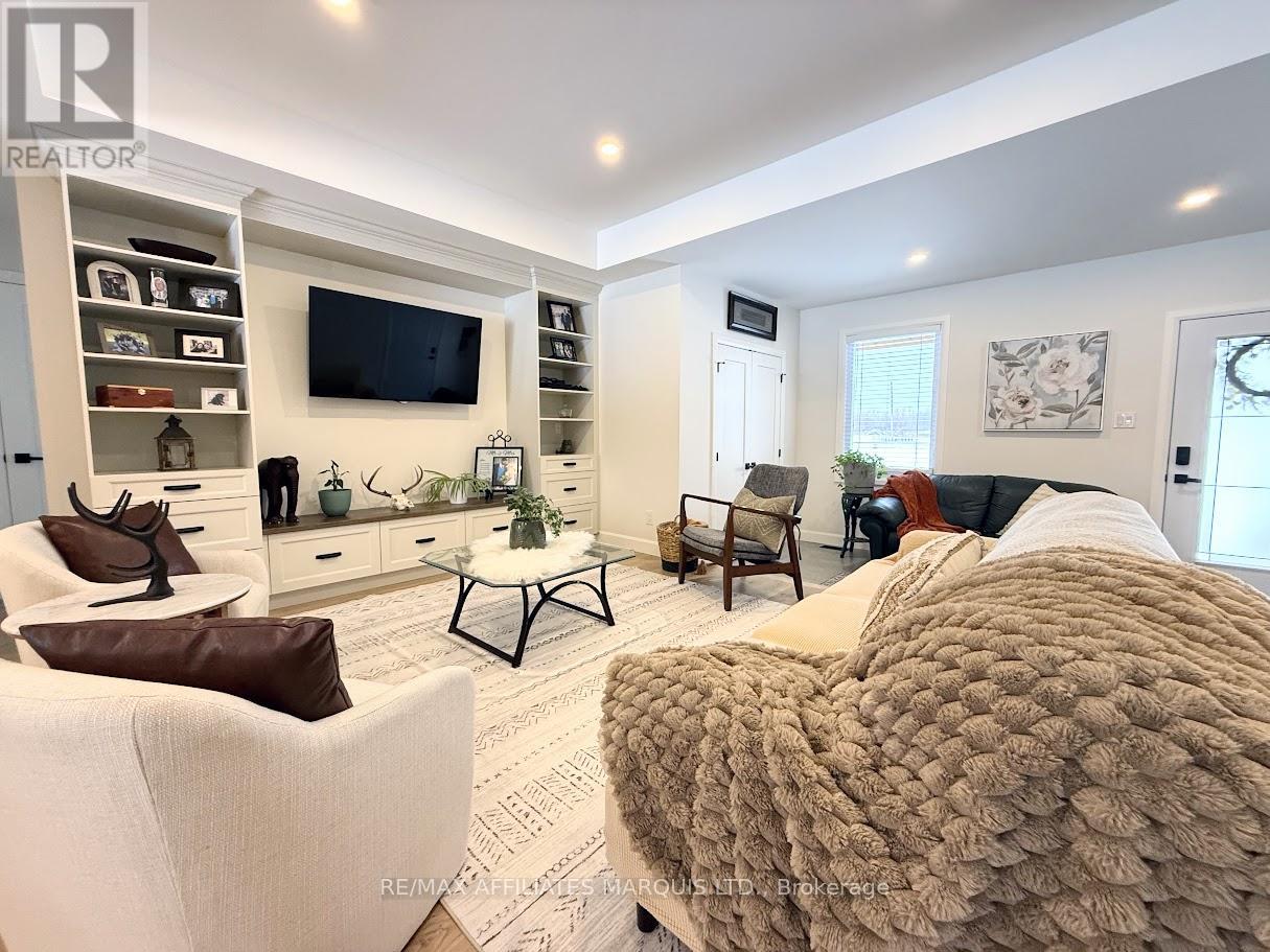 This 2024 custom-built 4-bedroom bungalow delivers approximately 1,670 sq. ft. of intelligently designed living space on a pristine 7.5-acre country setting that offers privacy, efficiency, and future expansion.. Constructed on a full ICF foundation with 9' basement ceilings, the home is engineered for efficiency and longevity, complete with a Generac backup generator powerful enough to run two homes. From the moment you step inside, quality craftsmanship is evident. The open-concept main level features a striking kitchen with birch soft-close cabinetry, built-in double oven/microwave, oversized centre island, and dedicated coffee bar-perfectly flowing into a bright living room with a custom entertainment unit and access to a covered rear porch ideal for relaxing or entertaining. Car enthusiasts, hobbyists, and trades will appreciate the impressive 1,250 sq. ft. triple attached garage, featuring in-floor heating, arena-style lighting, and three dedicated breaker zones-designed to function as a serious workshop. Heating is efficiently supplied by an outdoor Heatmor wood furnace and/or propane system, providing domestic hot water and in-floor radiant heat to both the home and garage. Additional upgrades include an over-insulated attic, in-floor basement heating with separate garage access, pre-run conduits for future Fibe/internet, full home network wiring with multiple Wi-Fi boosters, gas BBQ hookups, and a security system with backup power. With approval potential for a secondary dwelling or shop, and well and septic systems designed for expansion, plus a second driveway already in place, this property offers exceptional flexibility for multi-generational living, income potential, or future growth. A rare opportunity to own a modern country home with superior utility systems, intelligent design, and room to grow. Please allow 24-hour irrevocable on all offers. (id:64974)