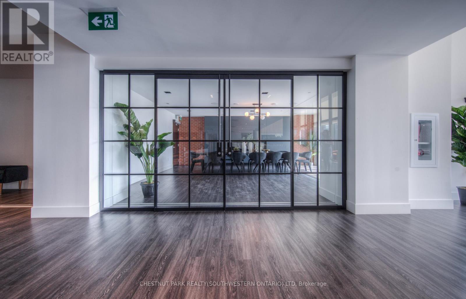 Welcome to Station Park Condos in Kitchener, where modern living meets everyday convenience. This well-maintained 1-bedroom, 1-bathroom unit offers a comfortable and functional layout, ideal for first-time buyers, professionals, or investors. The open-concept living and dining area is bright and welcoming, with floor-to-ceiling windows that bring in plenty of natural light and offer city views. The kitchen is thoughtfully designed with quality appliances, ample counter space, and plenty of storage. The bedroom is spacious and practical, featuring durable solid-surface flooring and generous closet space. A clean, modern bathroom completes the unit. Residents of Station Park enjoy access to a wide range of amenities, including a dog park, outdoor amphitheater, shared workspaces, an outdoor fitness area, and green spaces to relax or socialize. Conveniently located close to transit, shops, dining, and downtown amenities, this condo offers an excellent opportunity to own in one of Kitchener's most popular developments (id:64974)