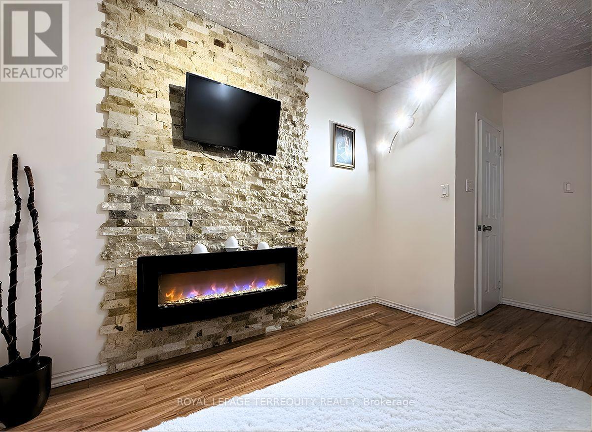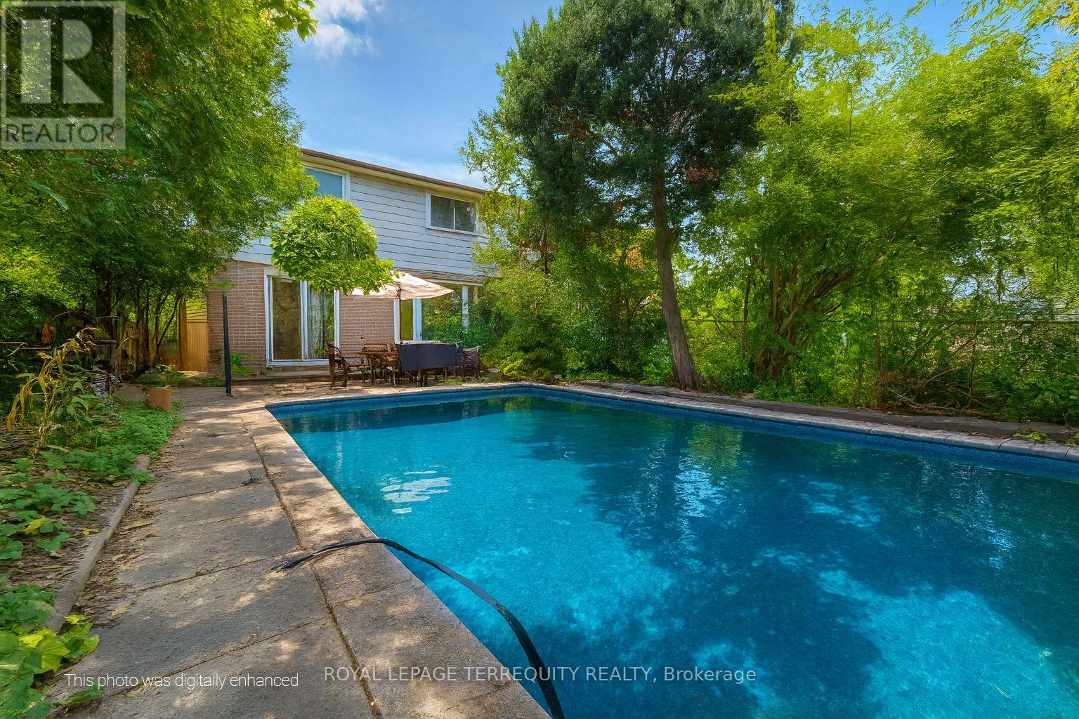 Welcome to this delightful two-story semi-detached home, thoughtfully designed for modern comfort and easy entertaining. The spacious open-concept kitchen flows seamlessly into the dining and living areas, creating a warm and inviting atmosphere for family gatherings and social events. Step outside through the walkout patio door to an expansive backyard featuring an inground pool and a generous patio-perfect for summer BBQs and relaxing evenings. Additional features include a two-car driveway with a convenient carport and a finished basement with a cozy fireplace, wet bar, and a partial kitchen that can easily be converted into a full kitchen for added versatility. Upstairs, you'll find three well-appointed bedrooms, offering plenty of space for the whole family. (id:64974)