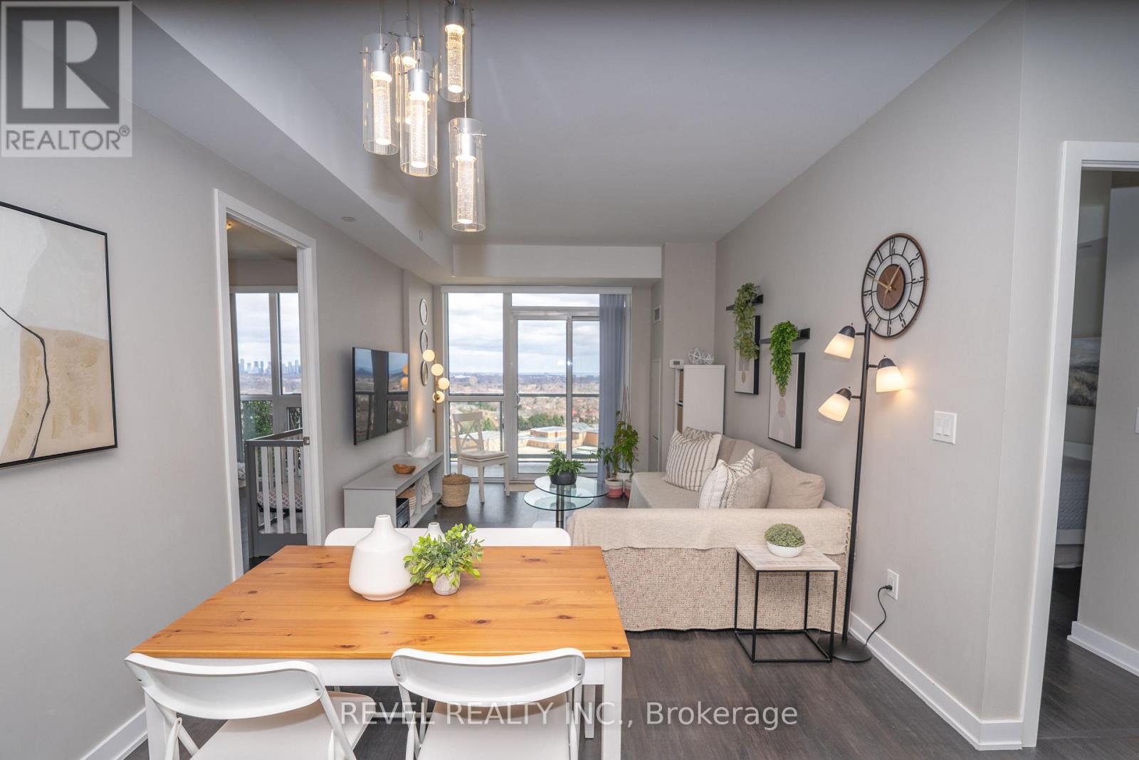 Perched on the 17th floor, this beautifully designed two-bedroom condo offers sweeping horizon views and a layout that maximizes both space and comfort. The modern interior features spacious rooms and an open-concept design, highlighted by a kitchen with expansive counter space that's perfect for cooking, entertaining, or casual dining. Step out onto the large private balcony to enjoy the skyline and fresh air high above the city. Thoughtfully designed to make the most of every square foot, this home combines style, functionality, and an unbeatable vantage point. The amenities in this building are absolutely incredible - the gym and the pool alone will attract your attention, and you'll love carving time out of your busy schedule to spend time in both. Location? Can't be beat. You're literal steps across the street to almost everything you'll need - the walk score is phenomenal, with none of the drawbacks of something like the overcrowded feel of the Square One City Centre area. Lifestyle and amenities WITH relaxed living? Sounds like the perfect combination to us! (id:64974)