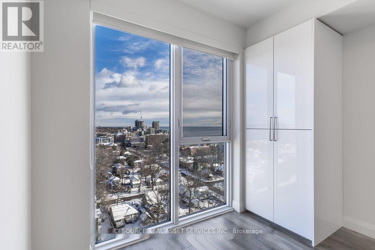 1 bed + den, 1 bathroom Eastern facing condo with stunning Lake and Downtown views. Steps to Lake Ontario, Spencer Smith Park, Brant st, and Mapleview Mall. Open concept floor which doesn't feel narrow, oversized kitchen, and cozy den which works as a great office space. Spacious bedroom and bathroom. Quality finishes throughout. Incredible amenities such as gym, and two rooftop party rooms. Easy access to all major highways and Burlington Go station. 1 year lease minimum, and all necessary documents required. *For Additional Property Details Click The Brochure Icon Below* (id:64974)