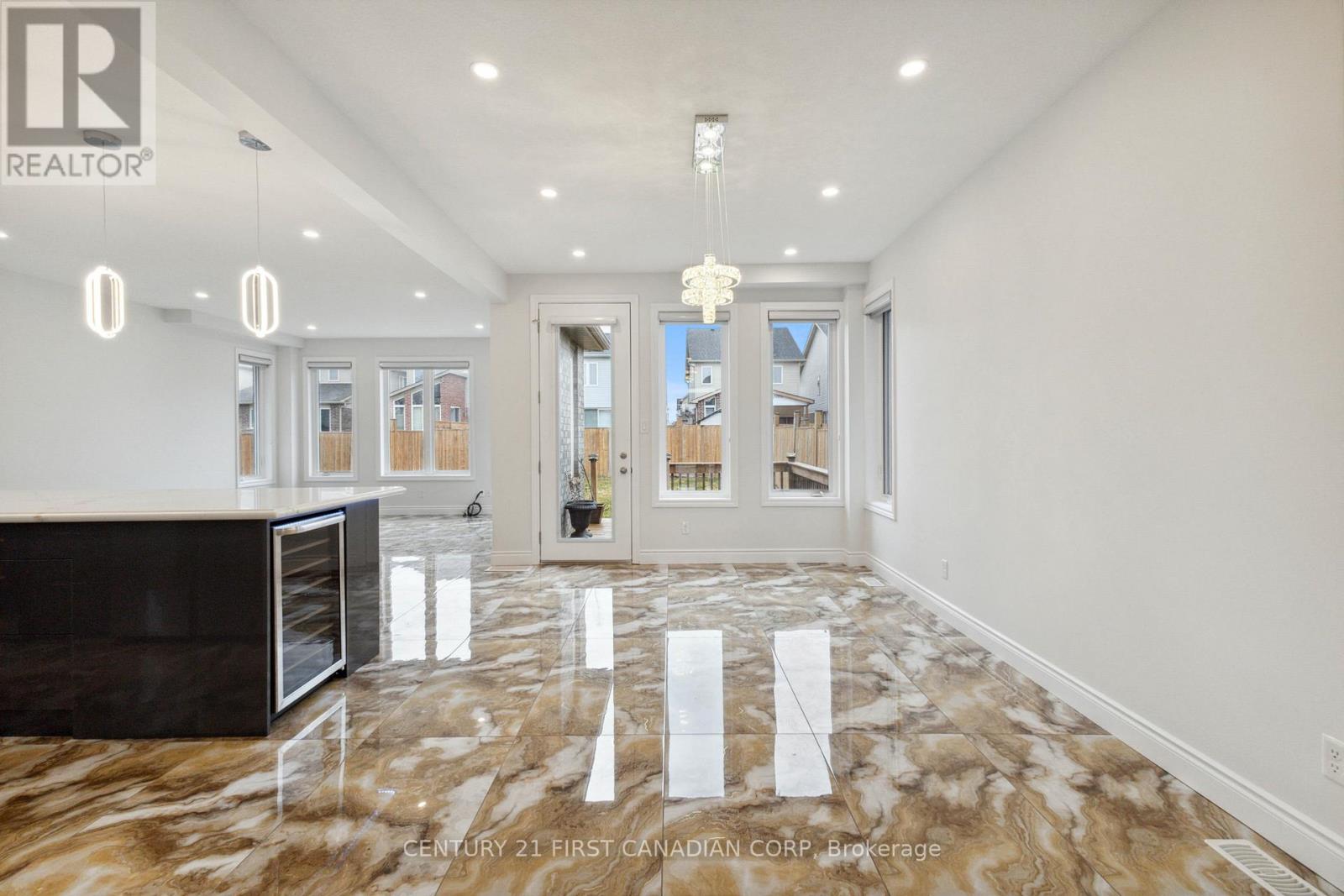 Welcome to 1707 Aukett Drive, a beautifully renovated 4-bedroom detached home located in the highly desirable Cedar Hollow community in North London, Ontario. Thoughtfully updated from top to bottom, this home blends modern design with everyday functionality. Step inside to a bright, refreshed interior featuring stylish flooring, upgraded lighting, and quality finishes throughout. The redesigned kitchen is the heart of the home, showcasing sleek contemporary cabinetry, quartz countertops, an expansive island with generous storage, stainless steel appliances, and a convenient bar/wine fridge - perfect for entertaining. The open and inviting layout is enhanced by large windows that fill the space with natural light, complemented by modern window coverings for both privacy and style. Pot lights inside and out add warmth and elegance throughout the home. Upstairs, you'll find four spacious bedrooms with ample closet space, along with a beautifully designed second-level laundry room complete with quartz counters, abundant cabinetry, and a practical utility sink. Step outside to enjoy the private backyard with a spacious deck - ideal for relaxing or hosting summer gatherings. Additional highlights include a sophisticated security monitoring system for added peace of mind Ideally located just minutes from the vibrant Masonville area, offering convenient access to shopping, dining, parks, and the public library. Families will appreciate being within walking distance to schools, making this an exceptional opportunity in one of North London's most sought-after neighbourhoods. (Basement is not included. Basement will be in the process of being finished) (id:64974)