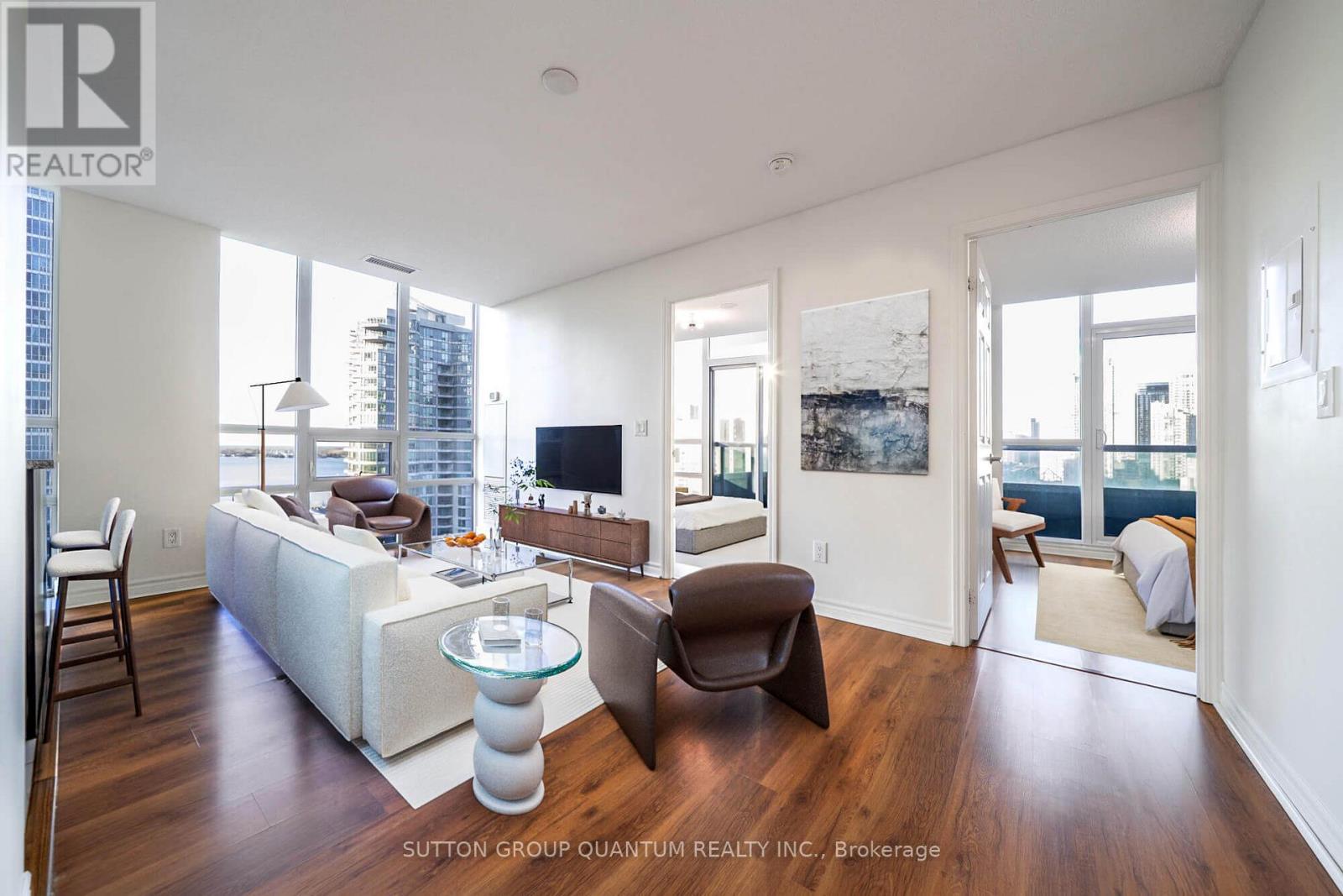Welcome To The Infinity 4 Condominiums. This High Floor 2 Bedroom With 1 Bathroom Corner Suite Features Approximately 676 Interior Square Feet. Designer Kitchen Cabinetry With Stainless Steel Appliances, Granite Countertops, Under Cabinet Lighting & A Centre Island. Bright Floor To Ceiling Windows With Laminate Flooring Throughout. Spacious Sized Bedrooms With Walk-Outs To The Large Private Balcony Facing Stunning Unobstructed C.N. Tower & Lake Views. Steps To Toronto's Harbourfront, C.N. Tower & Rogers Centre. This Building Is Connected Directly To The Underground P.A.T.H., Union Station, Scotiabank Arena, Longo's Grocery Store, Starbucks, Dry Cleaners, Pharmacy, The Financial & Entertainment Districts. Click On The Video Tour! (id:64974)