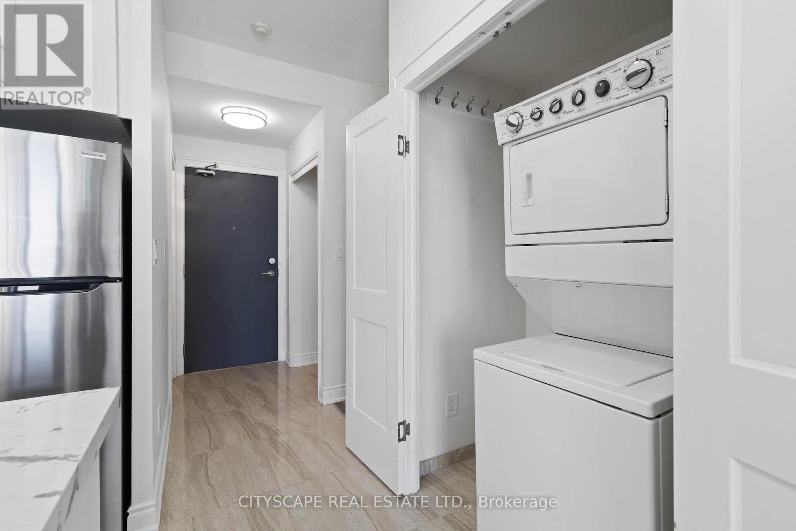 Bright and beautifully updated unit, renovated within the last two years. Boasting high ceilings, an open-concept design, white kitchen cabinetry, stainless steel appliances, and quartz countertops. Unobstructed views with new window coverings throughout and a carpet-free layout. The primary bedroom features a walk-in closet, plus a generous den approximately 8 ft by 6 ft. Brand-new, never-used appliances including fridge, stove, dishwasher, and microwave range hood. Prime location, steps to Square One and City Centre. Parking and locker included. Please complete application using fallowing link https://l.singlekey.com/8303ae46 (id:64974)