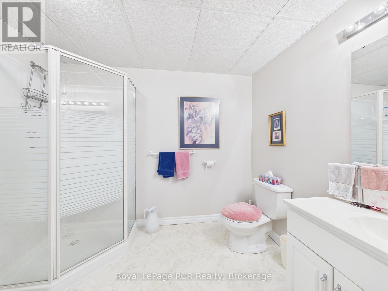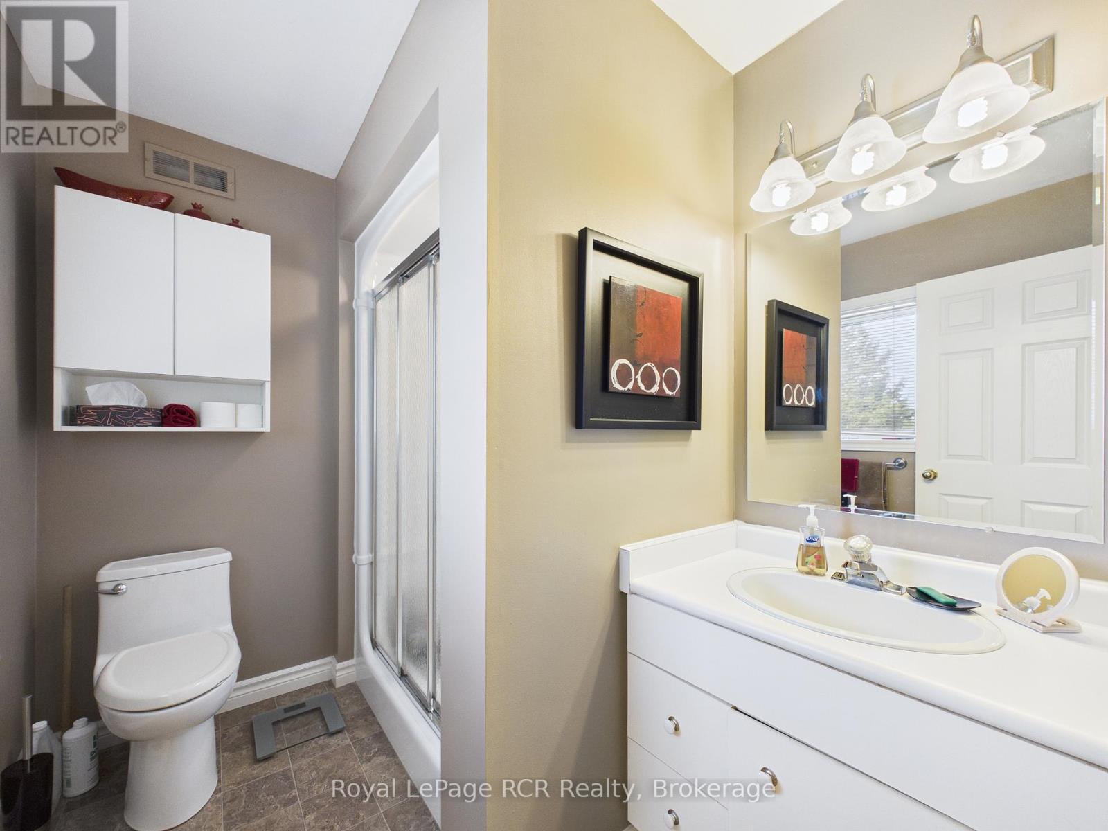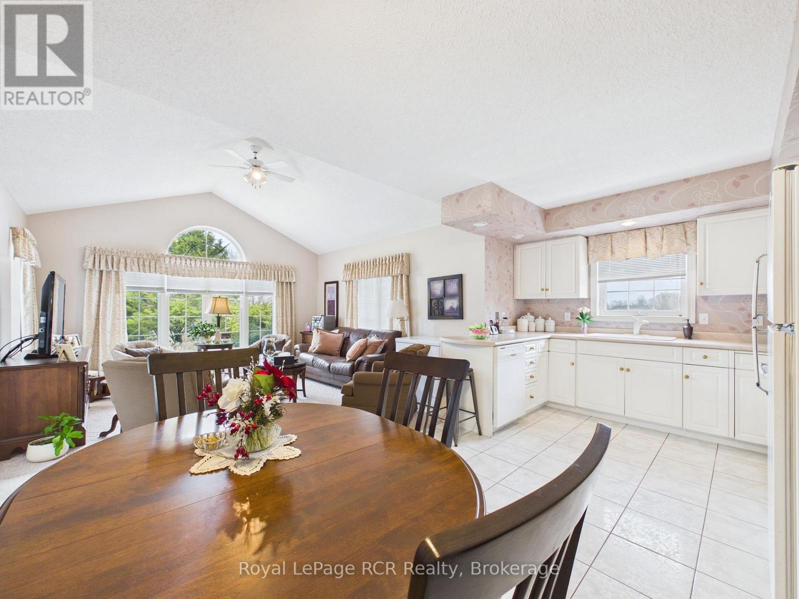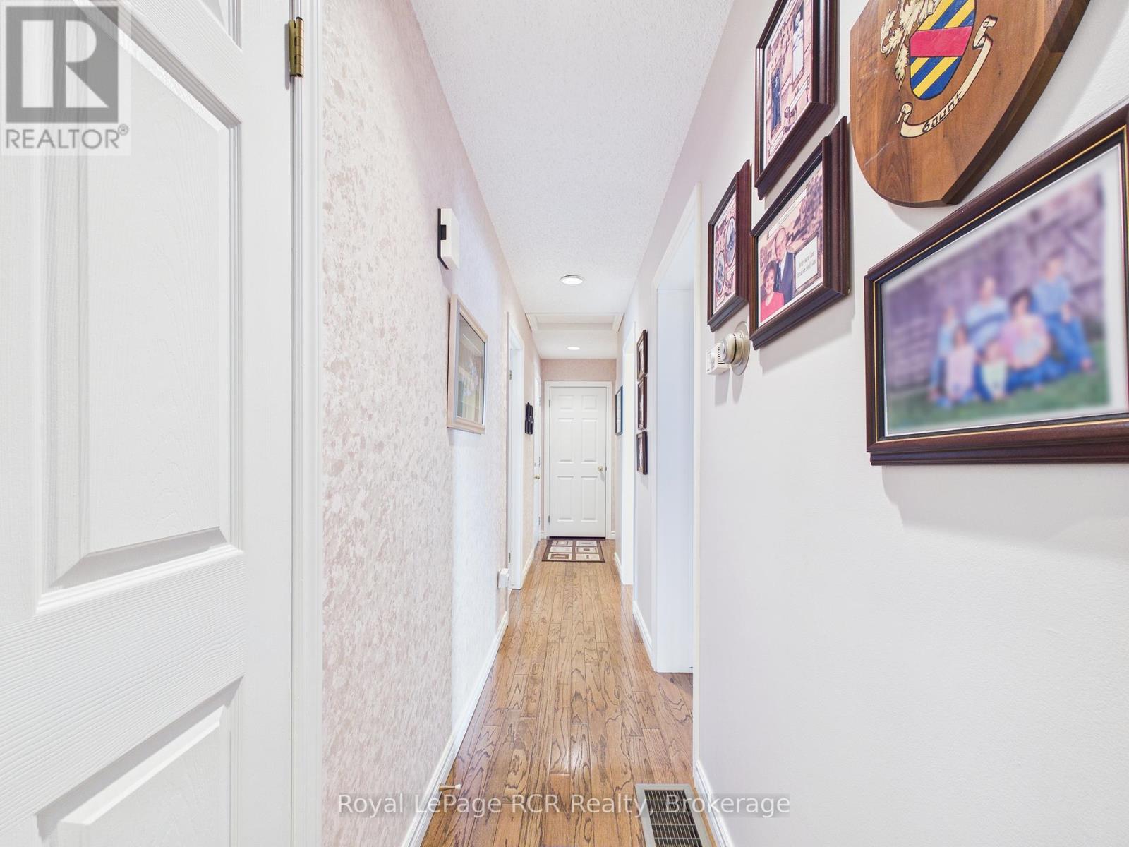 Welcome to this beautifully maintained brick bungalow, proudly built by Royal Home in 1994 and nestled on a mature, landscaped lot with outstanding curb appeal. The double-wide asphalt driveway and classic brick façade make a lasting first impression, complemented by lush greenery and manicured gardens. Inside, the open-concept kitchen and living room create a bright, functional heart for the home. The kitchen features ample cabinetry and generous counter space, while the adjacent living area flows seamlessly toward the rear of the home. A separate formal dining room connects to a stunning sitting room adorned with soaring vaulted ceilings, an elegant arched window, and an abundance of natural light - a truly special space for entertaining. The main level offers three well-sized bedrooms, including a private primary suite with an ensuite, plus an additional primary bathroom. Step outside from the main living area onto the updated rear deck, finished with sleek glass panel railings, and descend to the beautiful interlocking brick patio below, surrounded by a lush, private backyard - perfect for summer evenings. The fully developed lower level impresses with a massive rec room ideal for entertaining or family fun, a generous office/den, a full 3-piece bathroom, and a cold storage room. Comfort is ensured year-round with natural gas forced air heating, central air conditioning, and a single-car attached garage. Located within walking distance of schools, parks, the baseball diamond, and the hospital. (id:64974)