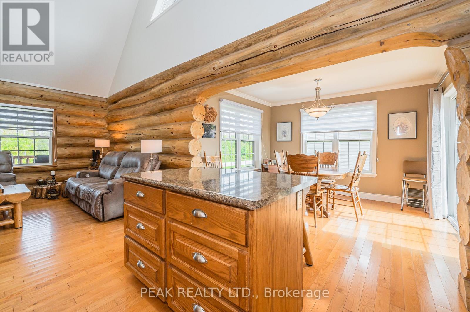 Stunning custom-designed and built white pine log home in the heart of Southampton. This one of a kind residence combines natural charm with modern comfort, centrally located close to schools, shopping, golf, and the beach and just minutes from Lake Huron's world-famous sunsets. The property also features an impressive 930 sq. ft. detached garage, perfect for a workshop, RV (with RV outlet), classic car storage, or a home-based business. Step inside this well maintained, carpet free home and enjoy the warmth of a two-sided gas fireplace shared between the chalet-style living room with soaring ceilings and the main-floor primary bedroom, which features a walk-in closet, ensuite privilege with jacuzzi tub, and laundry area. The kitchen offers ample cabinetry, an island with breakfast bar, and a seamless flow to the dining area with walkout to a covered porch and natural gas BBQ hookup. The upper loft, which could be a 3rd bedroom provides spectacular sunset views and star gazing, another bedroom and full bathroom complete the upper level and offer privacy for family or guests. The partially finished basement features drywall, a cold room, and a rough-in for a bathroom, ready for your finishing touches. Neutral interior paint (2021), exterior wood painted (2022), foundation painted (2024). In addition to the amazing detached garage, enjoy a large, partly fenced backyard with raised garden beds, landscaping with pond, sandy area, firepit, garden shed, and ample parking. Whether you enjoy hiking, biking, swimming, boating, fishing, golfing, skiing, or gardening, this home places you at the centre of it all. A rare opportunity to own a truly unique property in one of Ontario's most desirable communities. (id:64974)