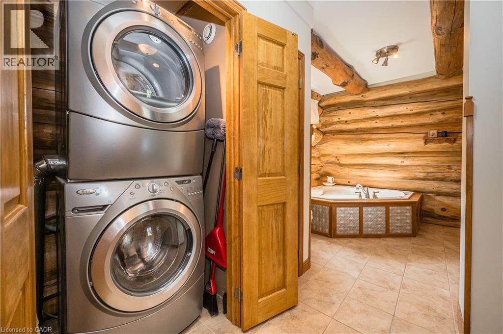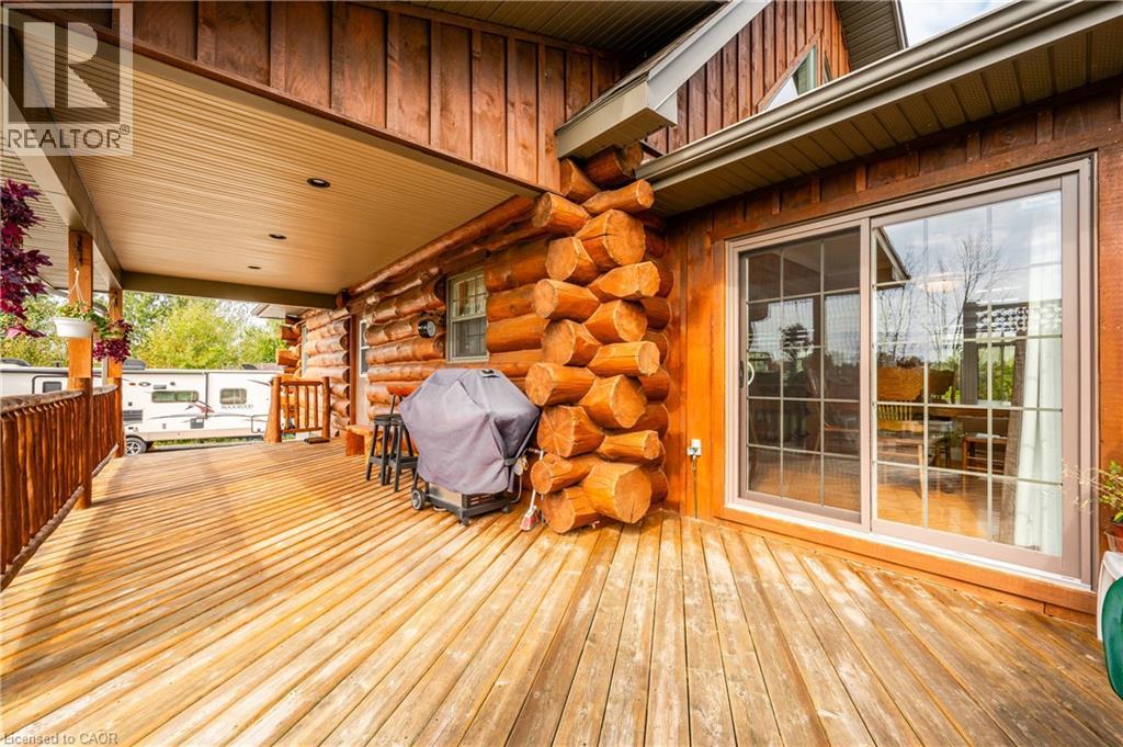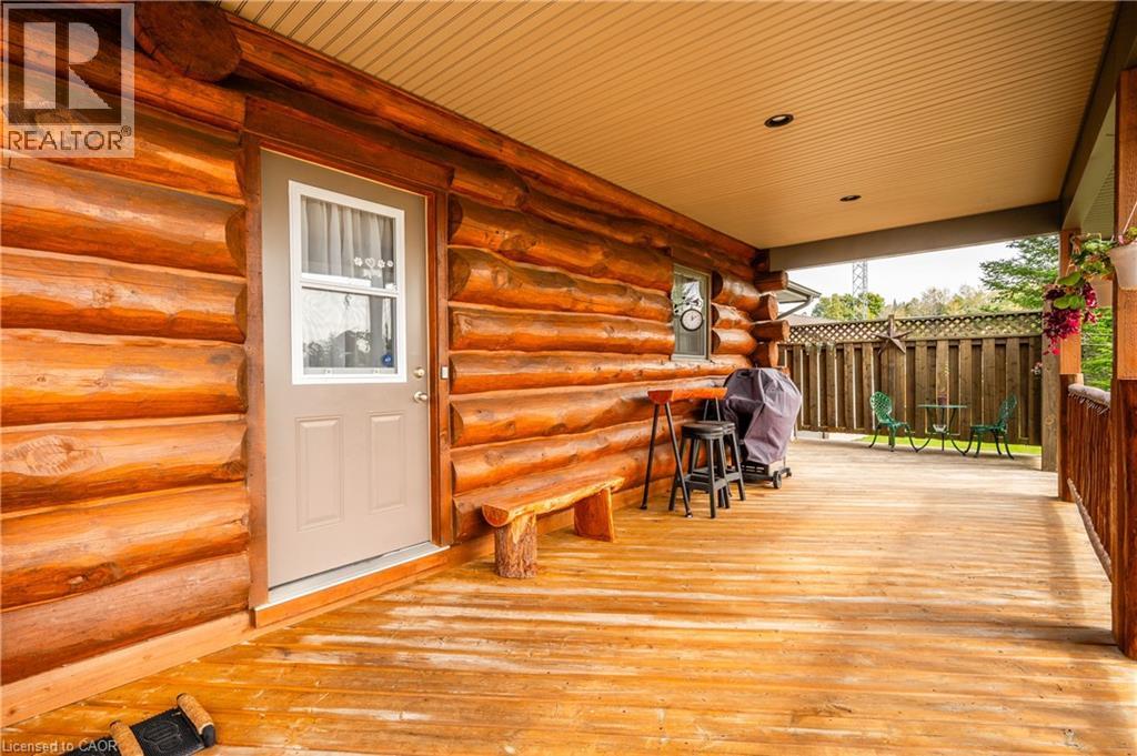 Stunning custom-designed and built white pine log home in the heart of Southampton. This one of a kind residence combines natural charm with modern comfort, centrally located close to schools, shopping, golf, and the beach and just minutes from Lake Huron’s world-famous sunsets. The property also features an impressive 930 sq. ft. detached garage, perfect for a workshop, RV (with RV outlet), classic car storage, or a home-based business. Step inside this well maintained, carpet free home and enjoy the warmth of a two-sided gas fireplace shared between the chalet-style living room with soaring ceilings and the main-floor primary bedroom, which features a walk-in closet, ensuite privilege with jacuzzi tub, and laundry area. The kitchen offers ample cabinetry, an island with breakfast bar, and a seamless flow to the dining area with walkout to a covered porch and natural gas BBQ hookup. The upper loft, which could be a 3rd bedroom provides spectacular sunset views and star gazing, another bedroom and full bathroom complete the upper level and offer privacy for family or guests. The partially finished basement features drywall, a cold room, and a rough-in for a bathroom, ready for your finishing touches. Neutral interior paint (2021), exterior wood painted (2022), foundation painted (2024). In addition to the amazing detached garage, enjoy a large, partly fenced backyard with raised garden beds, landscaping with pond, sandy area, firepit, garden shed, and ample parking. Whether you enjoy hiking, biking, swimming, boating, fishing, golfing, skiing, or gardening, this home places you at the centre of it all. A rare opportunity to own a truly unique property in one of Ontario’s most desirable communities. (id:64974)