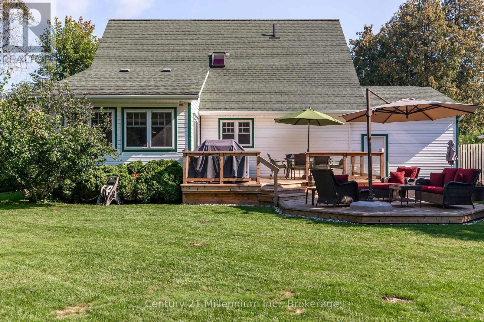 Welcome to 171 Island Street, a beautifully crafted Cape Cod-style home built by Seaman Builders in 2004. Ideally situated within walking distance to the sandy shores of Lake Huron, the Saugeen Rail Trail, and the vibrant heart of downtown Southampton, this property offers both convenience and lifestyle. The spacious kitchen is designed for family living, featuring a large central island perfect for cooking, gathering, or entertaining. The open-concept living and dining area is anchored by a natural gas fireplace, adding warmth and ambiance throughout the cooler months. A sunroom or family room on the main floor overlooks the private backyard an ideal space to relax with a book or enjoy quiet time. The primary bedroom is also located on the main level and includes a built-in dresser and media nook. The four-piece bathroom features a jetted tub for added comfort. Practical touches include a stacked laundry setup near the garage entrance, making daily routines seamless. Step outside to enjoy the recently updated two-tier cedar deck that captures sunlight all day, or unwind on the expansive covered front porch that spans the width of the home a perfect spot for lazy afternoons. Upstairs, you'll find two generously sized bedrooms on either side of a three-piece bathroom with a skylight, offering natural light and privacy. The layout is ideal for families, with main-floor living and ample space for children or guests on the upper level. The backyard is private and well-suited for entertaining, games, or summer barbecues. Whether you're enjoying dinner on the deck or relaxing on the porch, this home offers a relaxed, coastal lifestyle in one of Southampton's most desirable neighborhoods. Attached garage, central vac and an irrigation system complete this dream property! (id:64974)