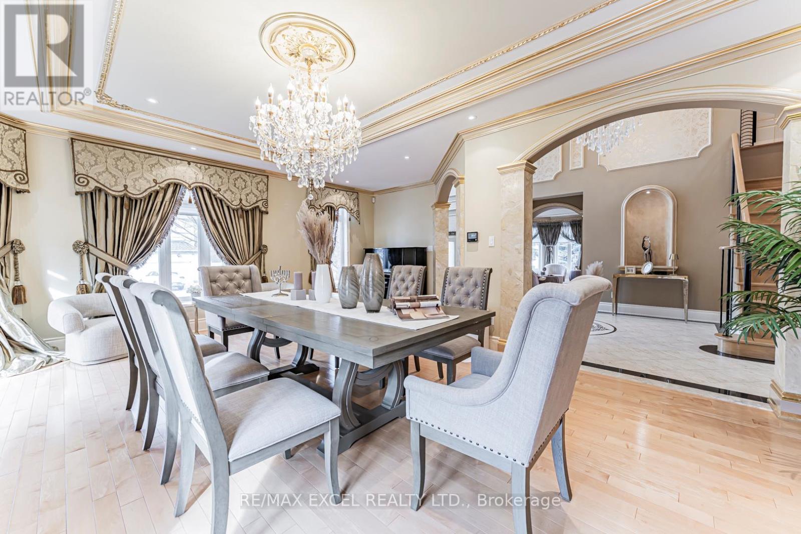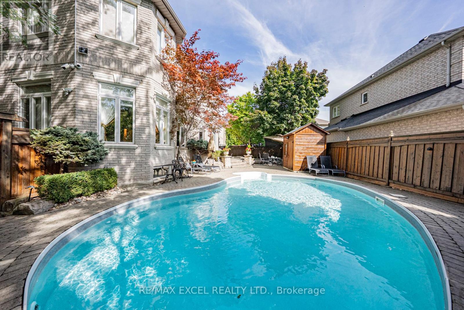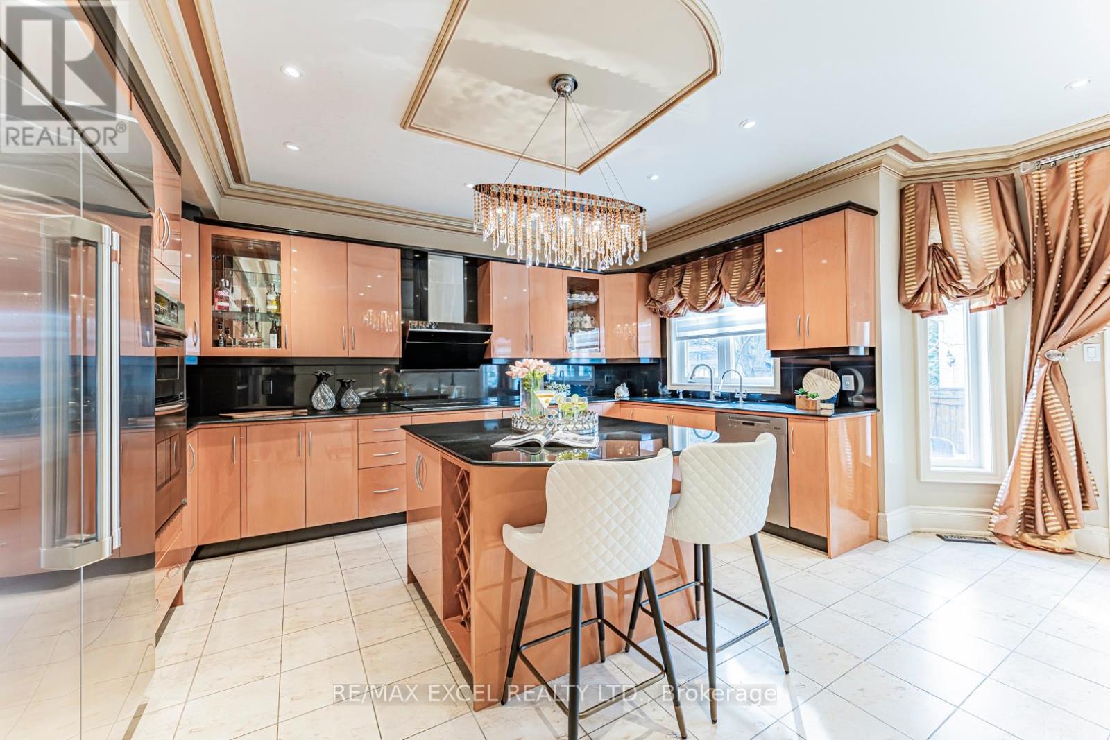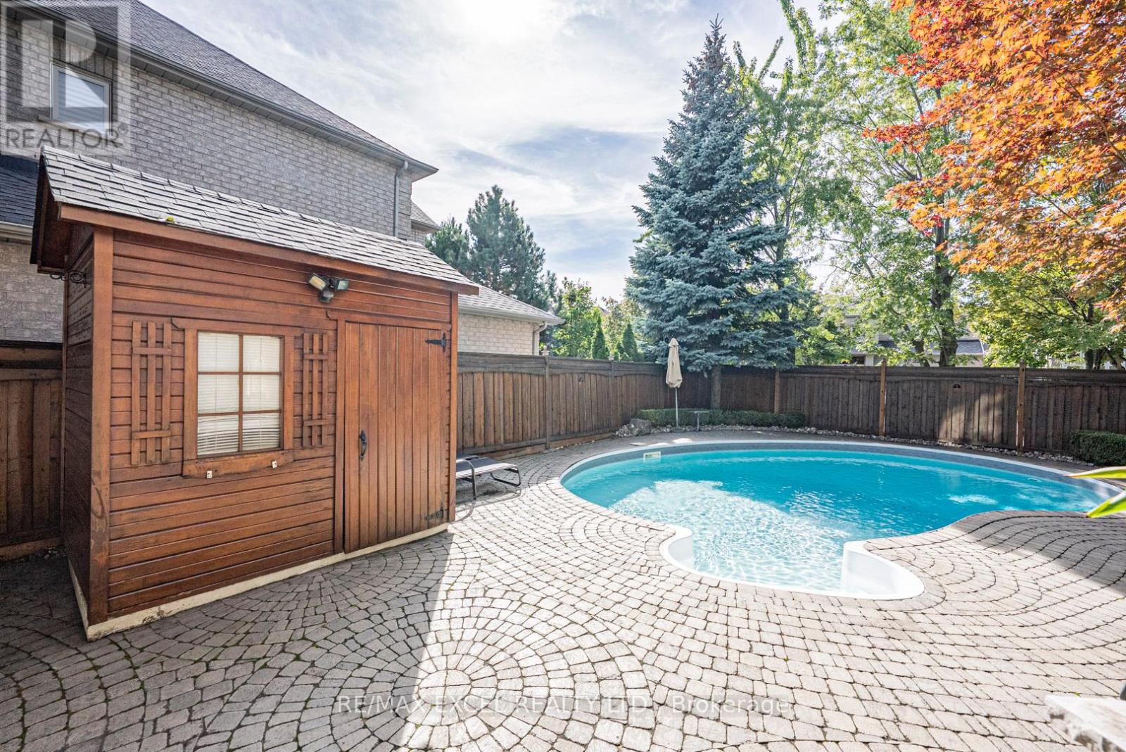 Welcome to this exceptional custom-built residence located on the most desirable stretch of Lawrie Rd in prestigious Beverley Glen, directly next to a park. Offering approximately 6,000 sq.ft. of total luxury living space including a professionally finished basement, this one-of-a-kind home was designed by a well-known architect and showcases timeless architecture, superior craftsmanship, and evident pride of ownership by the original owners. The stately stone façade sets the tone for the quality found throughout, with stunning plaster moldings, rich hardwood flooring, custom drapery, and extensive built-ins highlighting the home's refined character and substantial materials. The thoughtfully designed layout offers generously sized principal rooms, an expansive second-floor laundry room, and all bedrooms with private ensuites, creating both comfort and functionality for family living. The gourmet chef's kitchen overlooks a beautifully landscaped backyard oasis, seamlessly connecting indoor and outdoor spaces. The private retreat features professionally landscaped grounds, a renovated swimming pool, and a separate cabana complete with a 3-piece bath, ideal for entertaining or extended gatherings. Interlocked stonework enhances both the front and rear exterior, adding to the home's curb appeal and durability. Impeccably maintained and showcasing exceptional detail throughout, this distinguished residence presents a rare opportunity to own a truly special property in one of Thornhill's most sought-after neighbourhoods. Must be seen to be fully appreciated. (id:64974)