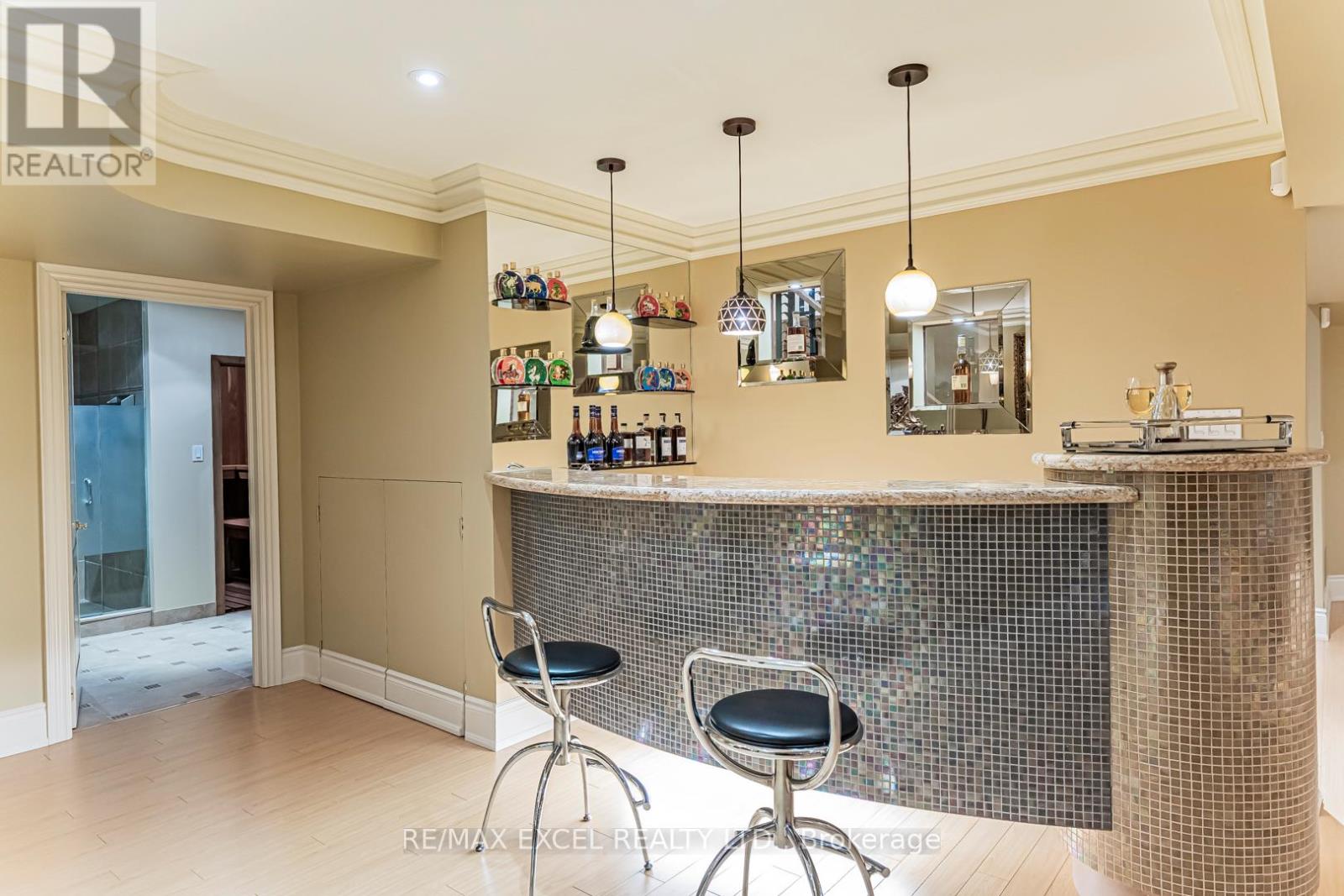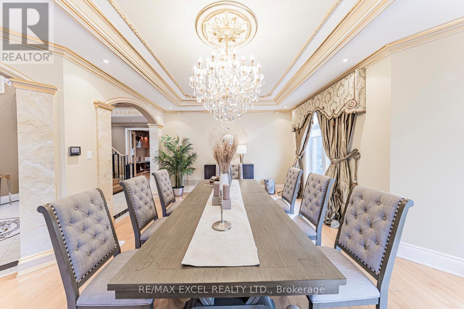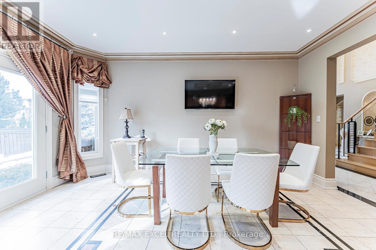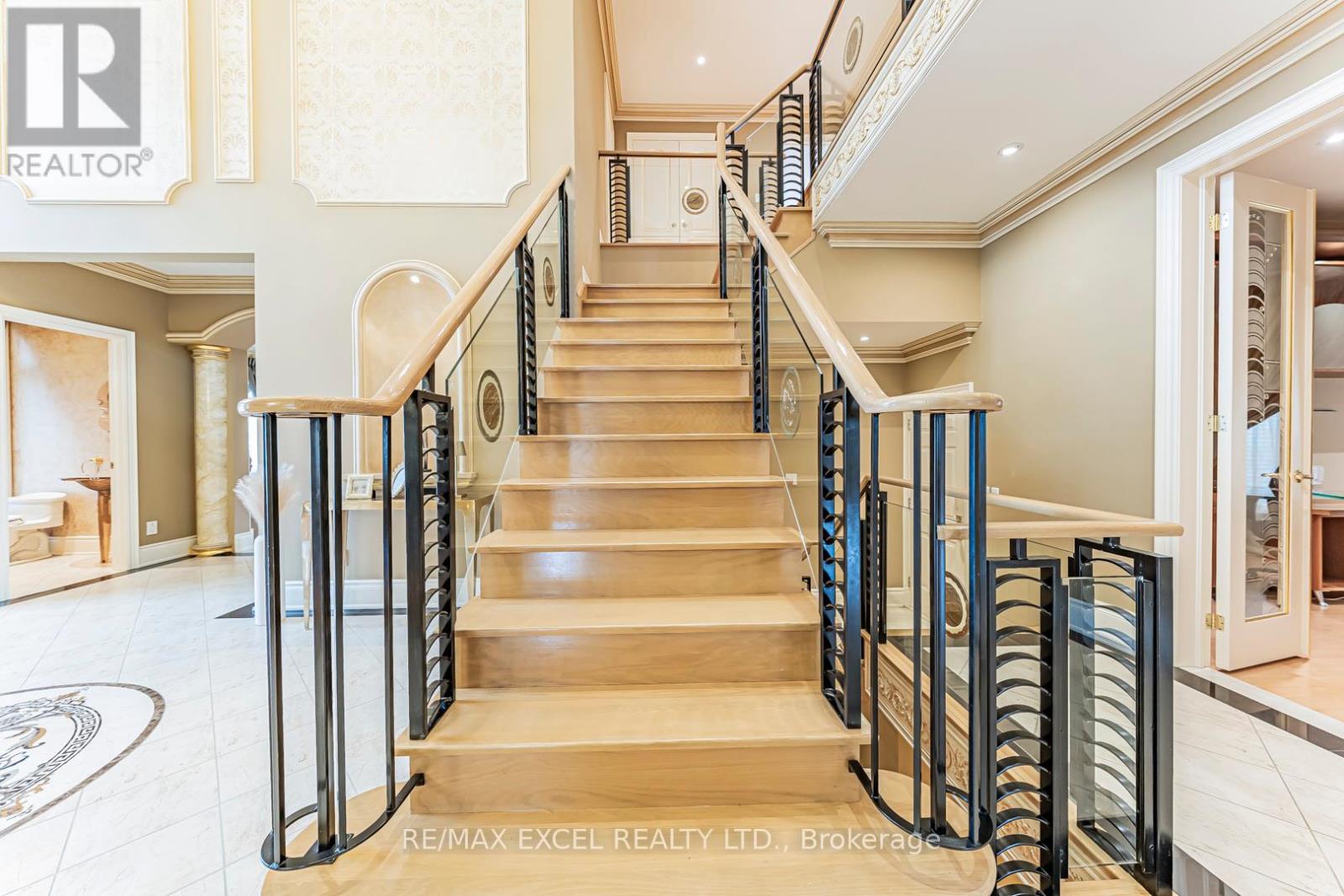 Welcome to this exceptional custom-built residence located on the most desirable stretch of Lawrie Rd in prestigious Beverley Glen, directly next to a park. Offering approximately 6,000 sq.ft. of total luxury living space including a professionally finished basement, this one-of-a-kind home was designed by a well-known architect and showcases timeless architecture, superior craftsmanship, and evident pride of ownership by the original owners. The stately stone façade sets the tone for the quality found throughout, with stunning plaster moldings, rich hardwood flooring, custom drapery, and extensive built-ins highlighting the home's refined character and substantial materials. The thoughtfully designed layout offers generously sized principal rooms, an expansive second-floor laundry room, and all bedrooms with private ensuites, creating both comfort and functionality for family living. The gourmet chef's kitchen overlooks a beautifully landscaped backyard oasis, seamlessly connecting indoor and outdoor spaces. The private retreat features professionally landscaped grounds, a renovated swimming pool, and a separate cabana complete with a 3-piece bath, ideal for entertaining or extended gatherings. Interlocked stonework enhances both the front and rear exterior, adding to the home's curb appeal and durability. Impeccably maintained and showcasing exceptional detail throughout, this distinguished residence presents a rare opportunity to own a truly special property in one of Thornhill's most sought-after neighbourhoods. Must be seen to be fully appreciated. (id:64974)