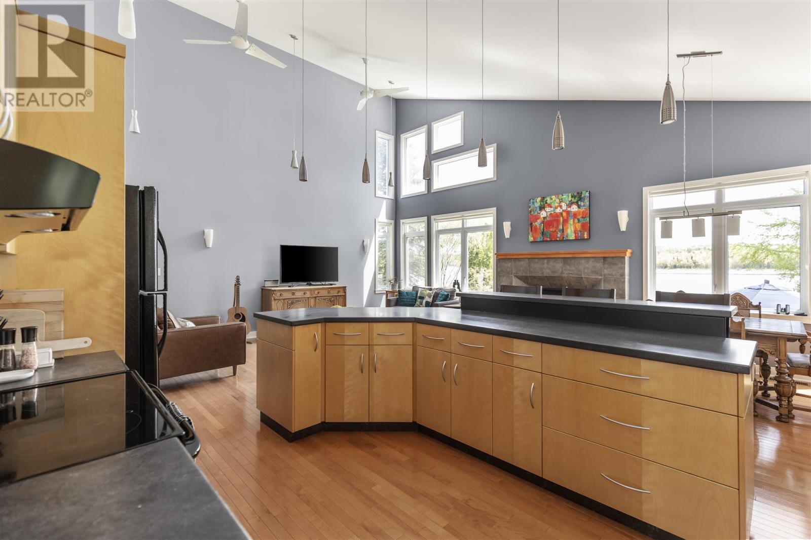 Waterfront living in the core of Sault Ste. Marie! Love where you live! This is your opportunity to settle into a custom built waterfront bungalow that is spacious, quality built in 2005 and finished top to bottom, inside and out. Like no other, this home features all main floor living with a full finished basement offering over 3500 sqft of bright living space with a grand foyer and great rooms, 4+2 bedrooms, 3 full bathrooms, vaulted ceilings, fireplace, main floor laundry, large primary with ensuite and walk in closet, and patio doors to deck and patio areas on water side. Basement is a bright open space with in-floor heating, large rec room, full bathroom, 2 bedrooms (or office/exercise room) and lots of storage! Gas forced air heating and A/C throughout, attached garage with drive through doors, asphalt driveway area, boathouse/storage at the water’s edge and solar contract as an income generator. This home provides the space, the location, a quality custom newer built home, and absolute move in ready! Relax, Enjoy, and Entertain - Waterfront living at its finest! Call today for a viewing. (id:64974)