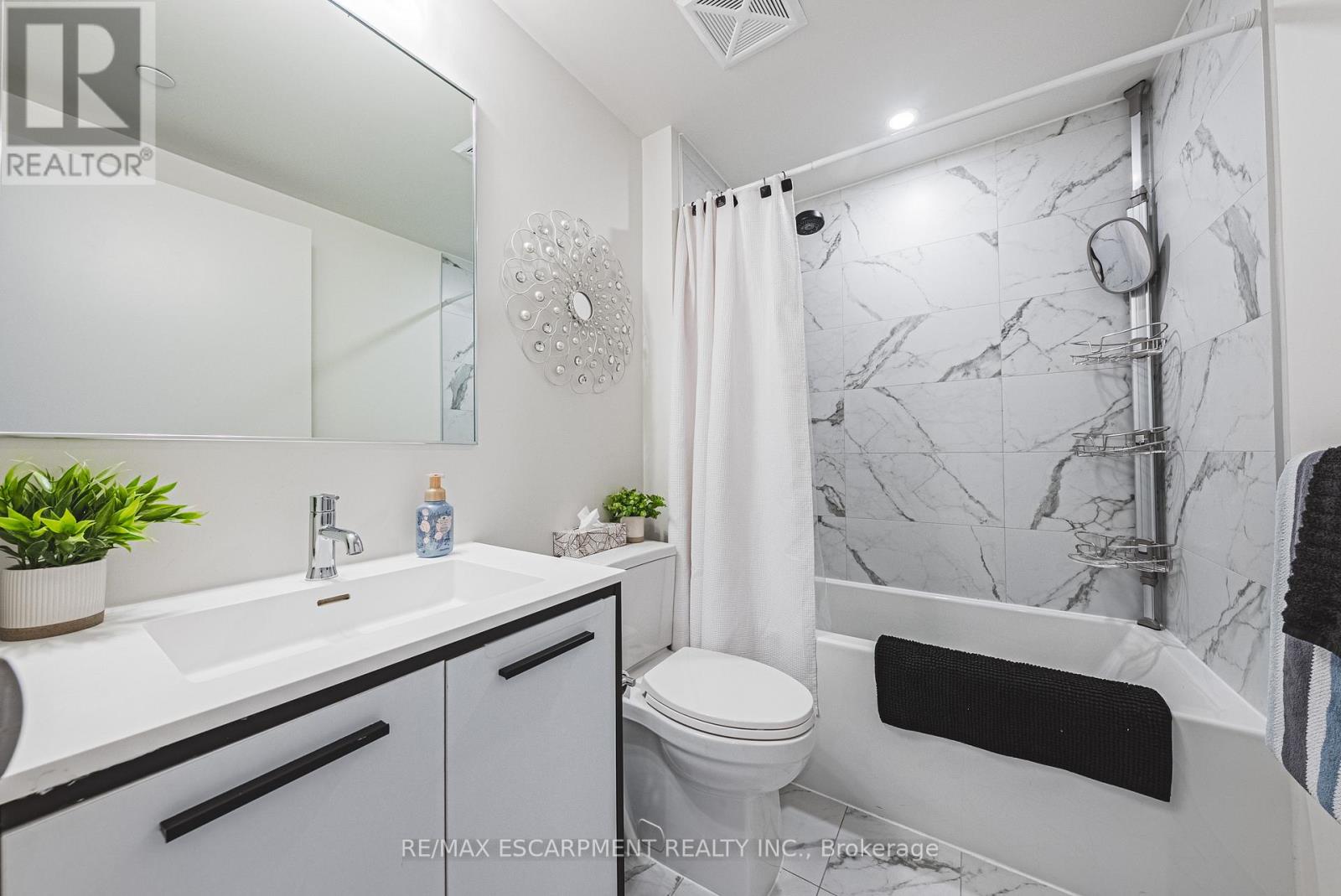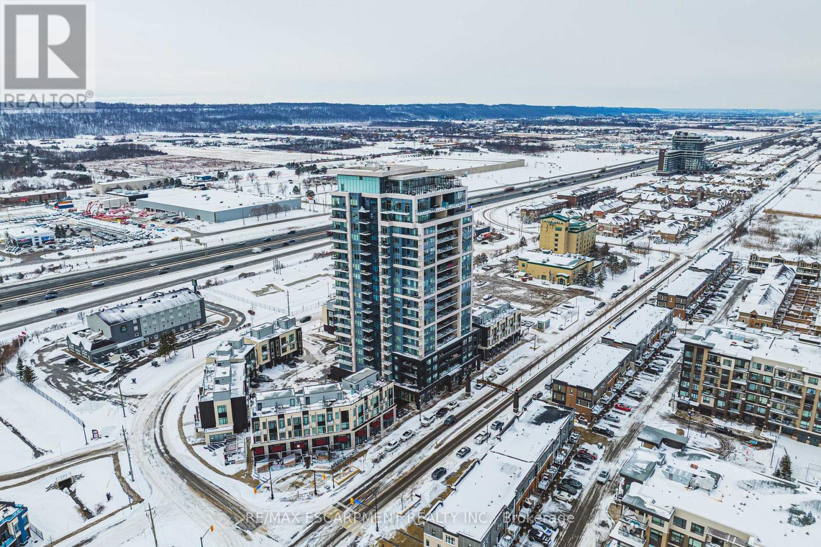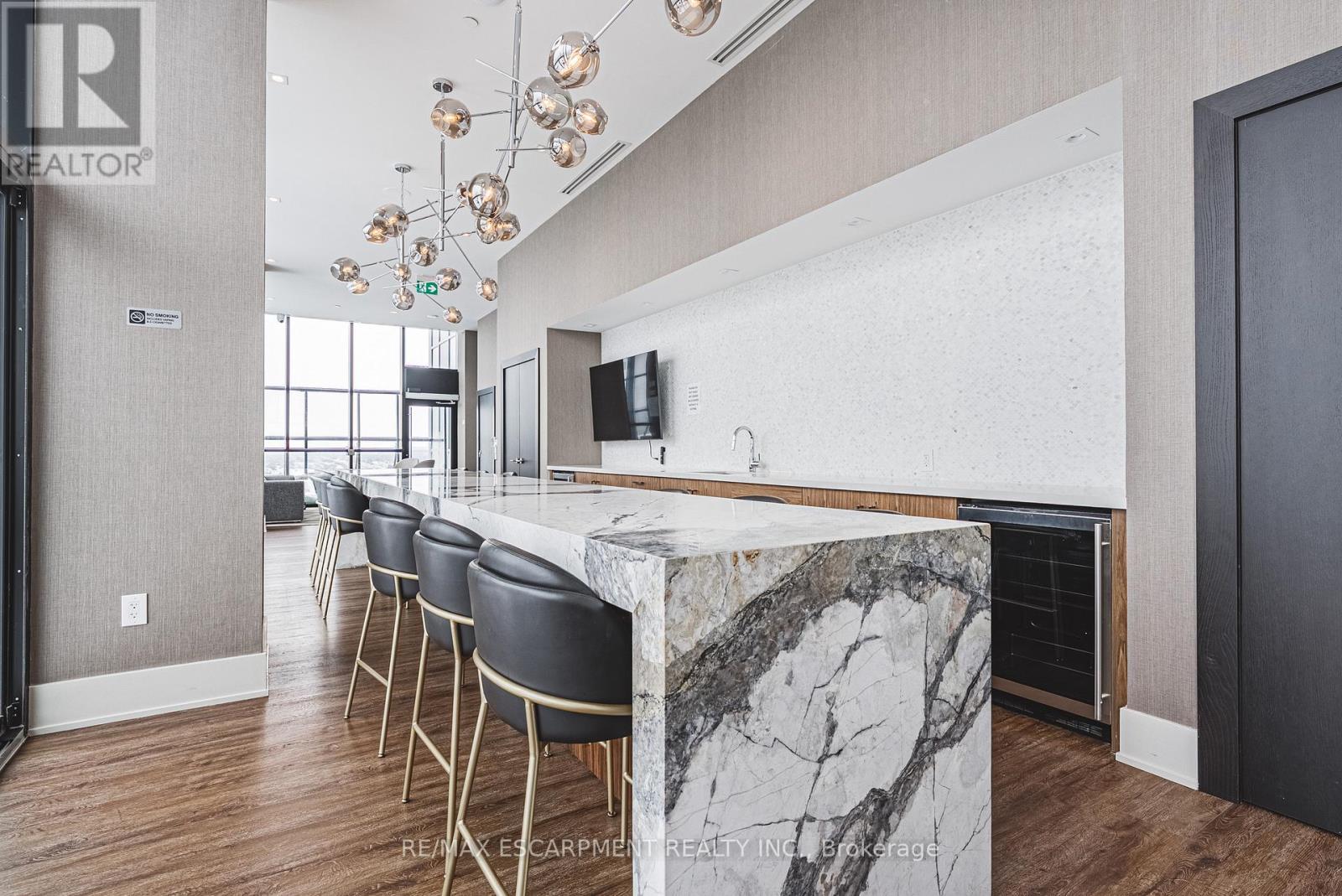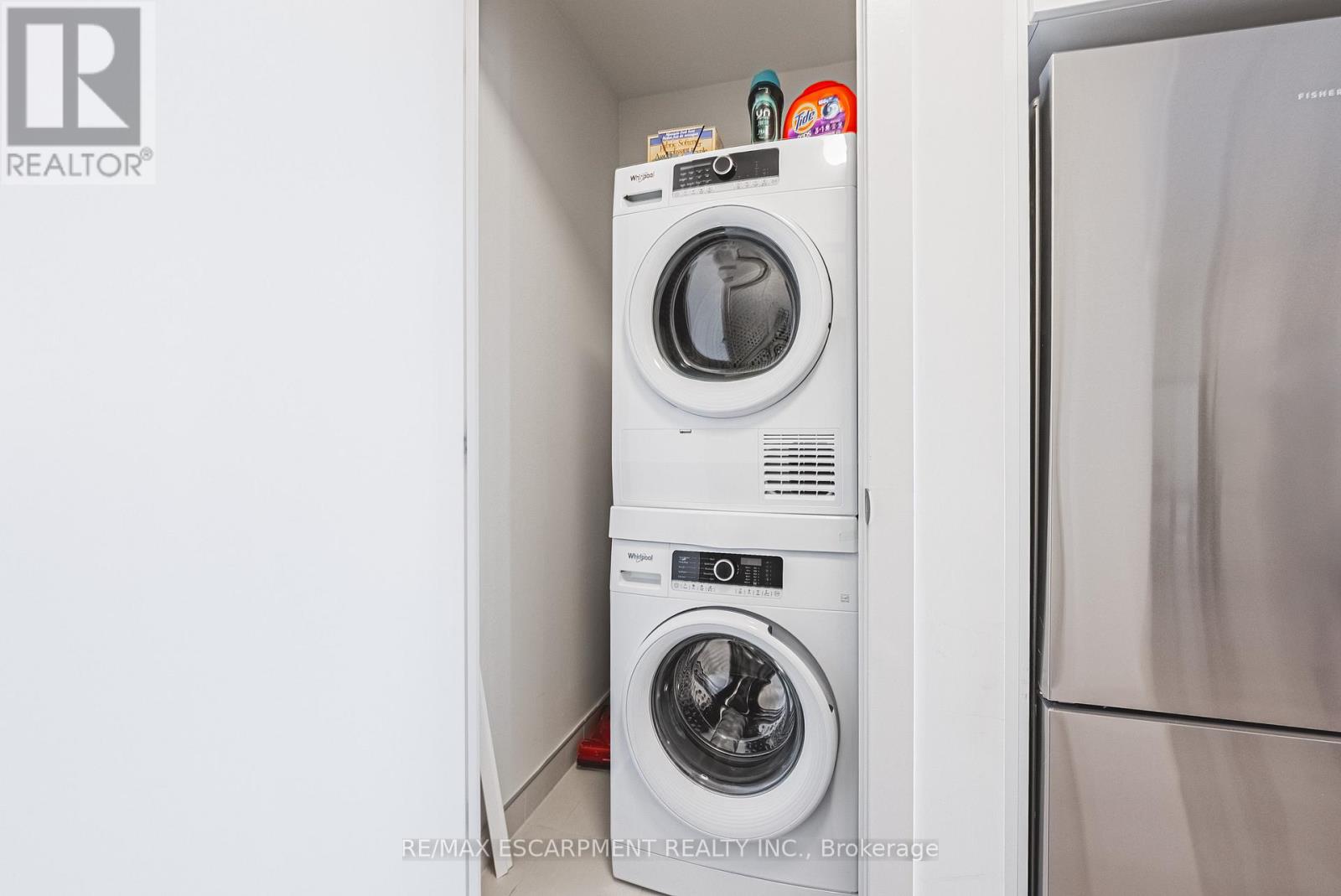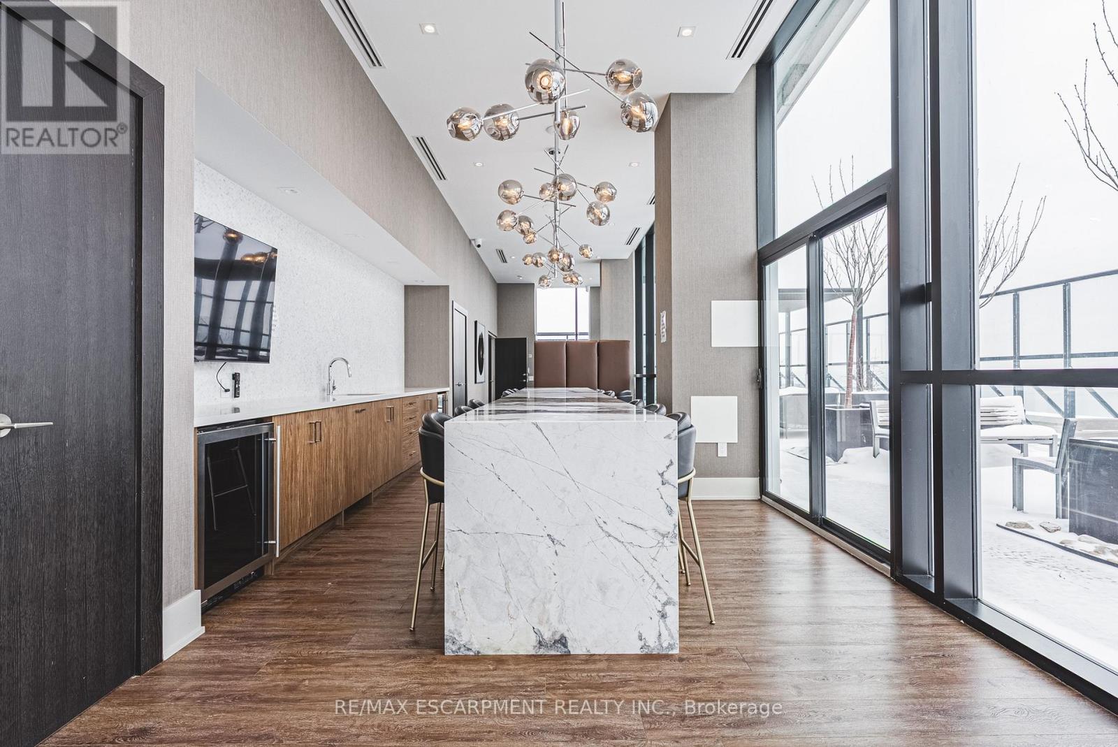 Enjoy breathtaking views of Lake Ontario and the Niagara Escarpment from this bright, modern condo in a highly desirable waterfront community. Just steps from the beach, local shops, cafes, dining, and scenic lakefront trails. Huge upgrade with two parking spots logistically positioned side by side and steps from the elevator. Approximately 12 k in upgrades. This thoughtfully designed unit features sleek laminate flooring throughout with massive island, stainless steel appliances, and an open-concept layout. The spacious den offers versatility-ideal for dinette and entertaining, guest room, office or nursery. Floor-to-ceiling windows flood the space with natural light, creating a warm and inviting atmosphere. Resort-style building amenities include a fully equipped gym, yoga/spin studio, self-serve pet spa, rooftop terrace with BBQs and indoor/outdoor dining, a sky lounge with fireplace, stylish party room, indoor bicycle storage, 24-hour concierge, and security cameras for peace of mind. Located just 30 seconds from the QEW for easy commuting. Includes one parking spot and one locker. Costco, Metro, LCBO, coffee shops, and restaurants are just across the street. Ideal for first-time buyers, professionals, or investors looking for lifestyle and location in one unbeatable package. (id:64974)