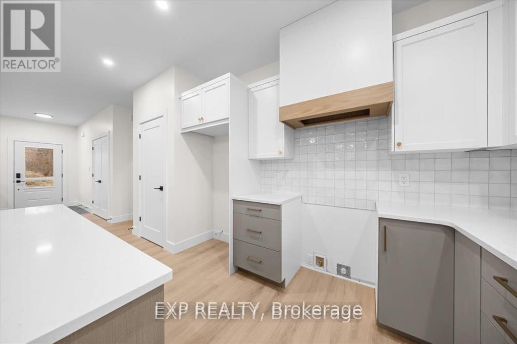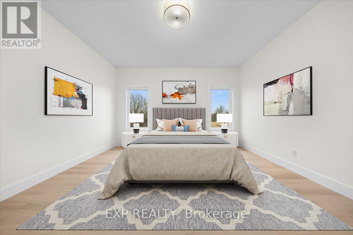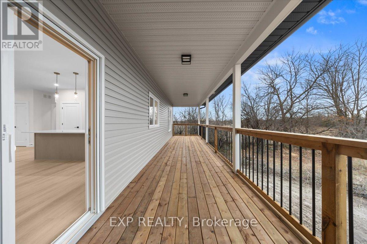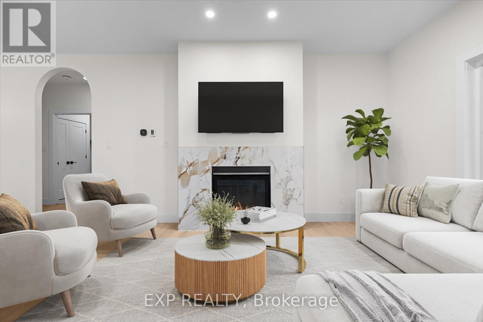 This brand-new Archstone Homes masterpiece offers approximately 2,745 sq. ft. of total finished living space, with 5 bedrooms and 3 bathrooms, including a fully finished walkout lower level. Located just 5 minutes from Kemptville, this home offers close proximity to Kemptville District Hospital, Old Town Kemptville, groceries, restaurants, dentists, schools, and everyday amenities, while still enjoying the quiet charm of a creek setting in the peaceful community of Oxford Mills. The interior is thoughtfully designed, featuring an open-concept kitchen with a large island, quartz countertops, range hood cover, and spacious pantry, flowing into an inviting living room with a cozy propane fireplace. A 3-piece bathroom is also conveniently located on the main level. The finished lower level walkout adds approximately 1,080 sq. ft. of living space, featuring two additional bedrooms, a 3-piece bathroom, a large recreation/entertainment area, and generous storage. It boasts 8 ft ceilings and direct outdoor access to the backyard and creek. Part of the exclusive 18 & Water Estates community, the interior design is in collaboration with Brown & Co. The exterior offers a welcoming front porch and a spacious back deck overlooking the private creek, ideal for enjoying the tranquil surroundings. The home backs onto the serene Kemptville Creek and is fully covered by a Tarion Warranty. Ideally located within walking distance to Oxford on Rideau Public School, Brigadoon Restaurant, and the picturesque Oxford Mills Dam, it provides both convenience and charm. (id:64974)