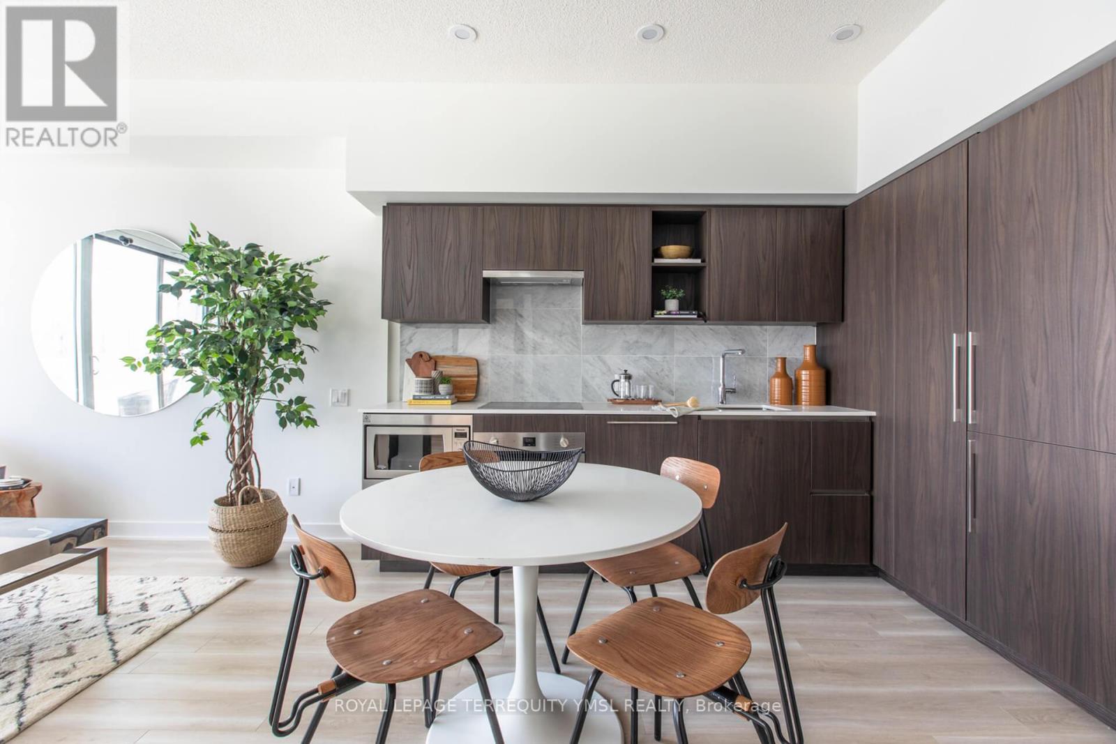 "The Lakefront" - Live your best life in this highly sought-after waterfront residence! This bright 1-bedroom + den suite offers approximately 550 sq. ft. of well-designed living space, plus a 95 sq. ft. open balcony with sunny east exposure and stunning views of the downtown skyline and CN Tower. The den is a separate, enclosed room with a door, ideal as a home office or nursery. Featuring premium finishes, sleek built-in kitchen appliances, and modern laminate flooring throughout, this unit blends style and comfort seamlessly. Enjoy exceptional amenities including a rooftop garden and BBQ area, all just steps to transit, LCBO, schools, community centres, Lake Ontario, and a variety of trendy cafés. An ideal home for those seeking vibrant waterfront living with urban convenience. (id:64974)
