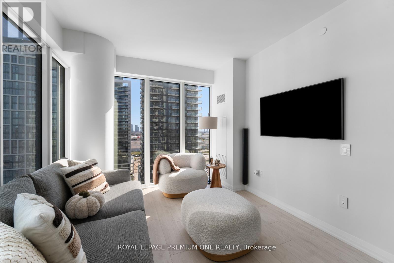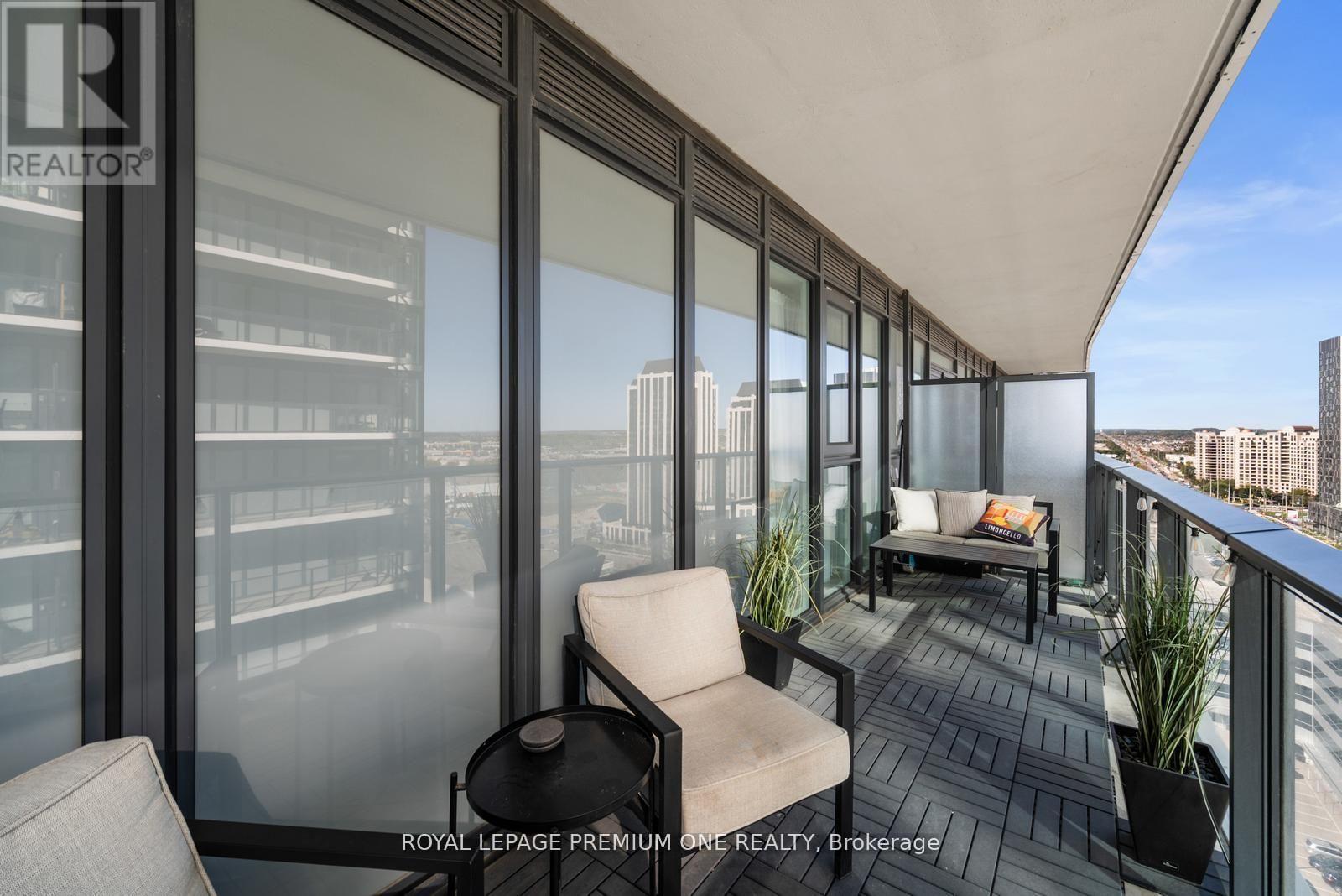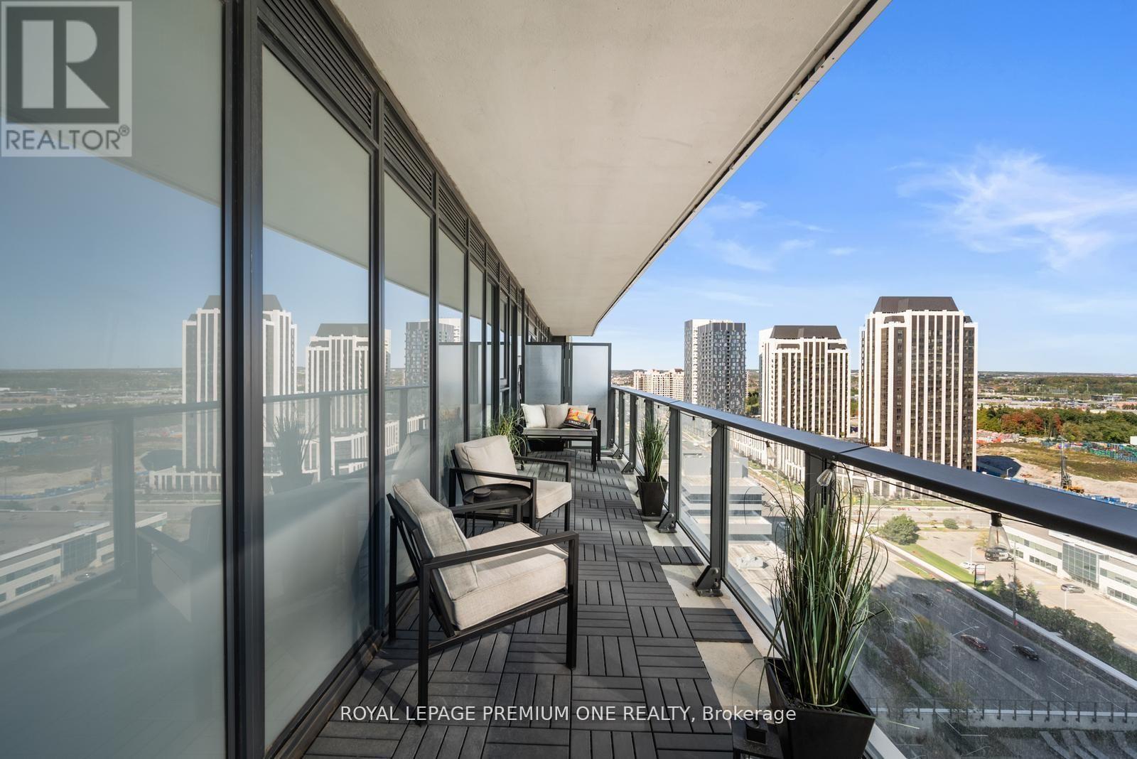 Welcome to Charisma West Tower! This stunning 2 bedroom, 2-bathroom corner suite with parking and locker offers 875 sq. ft. of interior living space plus a 200 sq. ft. wraparound balcony with bright south-east exposure. Featuring a highly sought-after split bedroom layout, soaring 9 ft. ceilings, premium flooring, and countless upgrades, this unit has it all. The sleek modern kitchen boasts a centre island, quartz countertops, designer backsplash, upgraded moulding, and full-size stainless-steel appliances, while both bedrooms are outfitted with custom cabinetry closets. The spacious open-concept living and dining area is filled with natural light, creating a warm and inviting atmosphere. Residents enjoy access to exceptional building amenities including a 24-hour concierge, Wi-Fi lounge, and 7th floor wellness centre. Perfectly located steps from Vaughan Mills, TTC subway, VMC Bus Terminal, Viva Rapid Transit, Hwy 400/407, Cortellucci Vaughan Hospital, and Canada's Wonderland, this bright and beautifully upgraded unit is a must-see in a high-demand community! (id:64974)