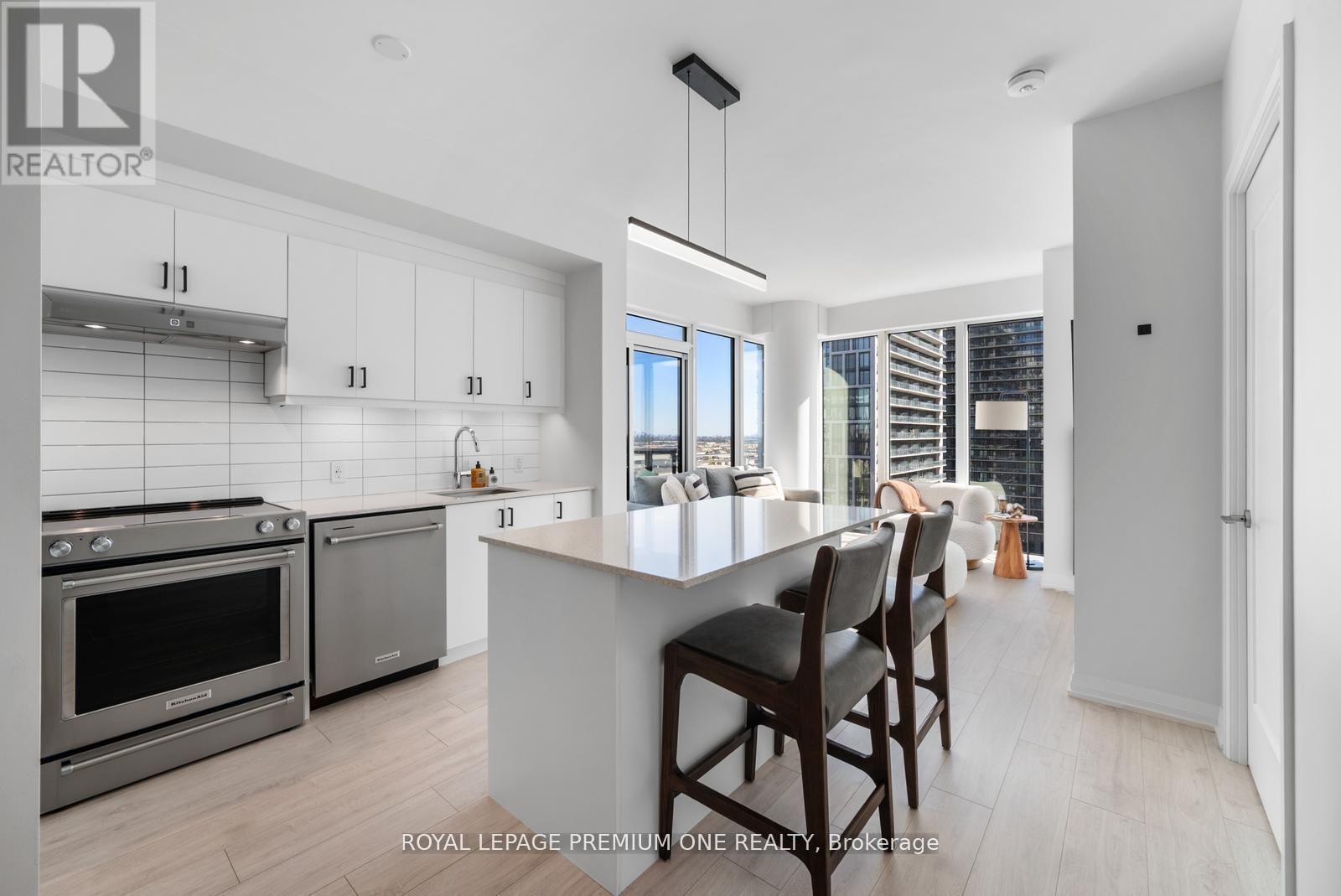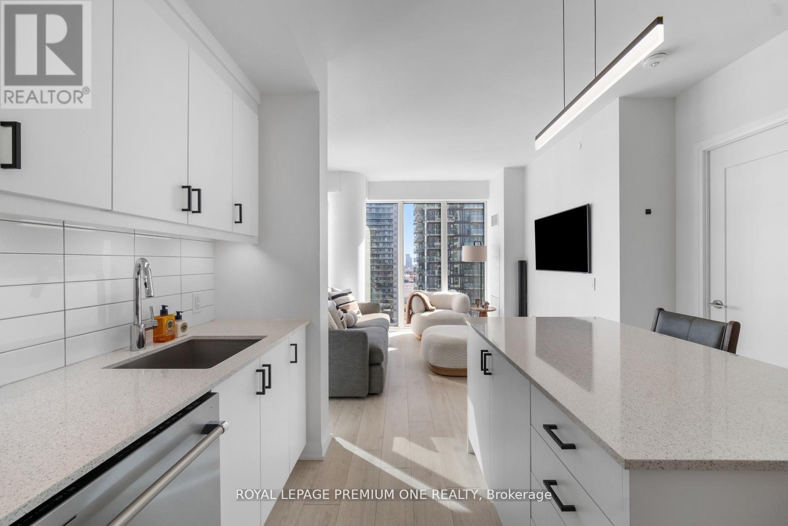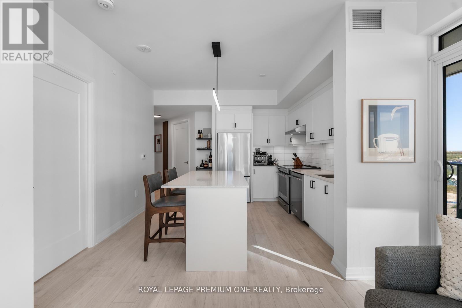 Welcome to Charisma West Tower! This stunning 2 bedroom, 2-bathroom corner suite with parking and locker offers 875 sq. ft. of interior living space plus a 200 sq. ft. wraparound balcony with bright south-east exposure. Featuring a highly sought-after split bedroom layout, soaring 9 ft. ceilings, premium flooring, and countless upgrades, this unit has it all. The sleek modern kitchen boasts a centre island, quartz countertops, designer backsplash, upgraded moulding, and full-size stainless-steel appliances, while both bedrooms are outfitted with custom cabinetry closets. The spacious open-concept living and dining area is filled with natural light, creating a warm and inviting atmosphere. Residents enjoy access to exceptional building amenities including a 24-hour concierge, Wi-Fi lounge, and 7th floor wellness centre. Perfectly located steps from Vaughan Mills, TTC subway, VMC Bus Terminal, Viva Rapid Transit, Hwy 400/407, Cortellucci Vaughan Hospital, and Canada's Wonderland, this bright and beautifully upgraded unit is a must-see in a high-demand community! (id:64974)