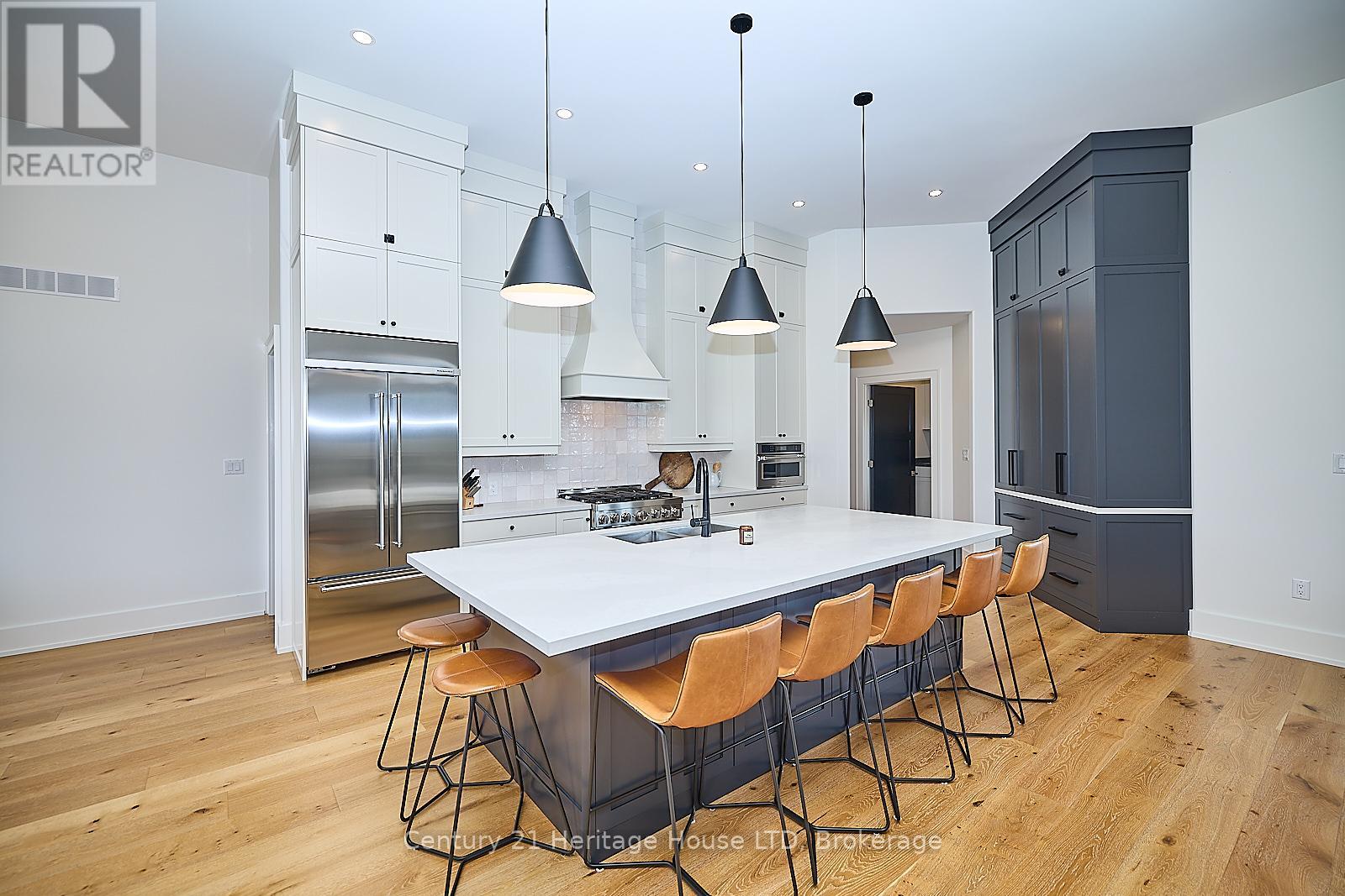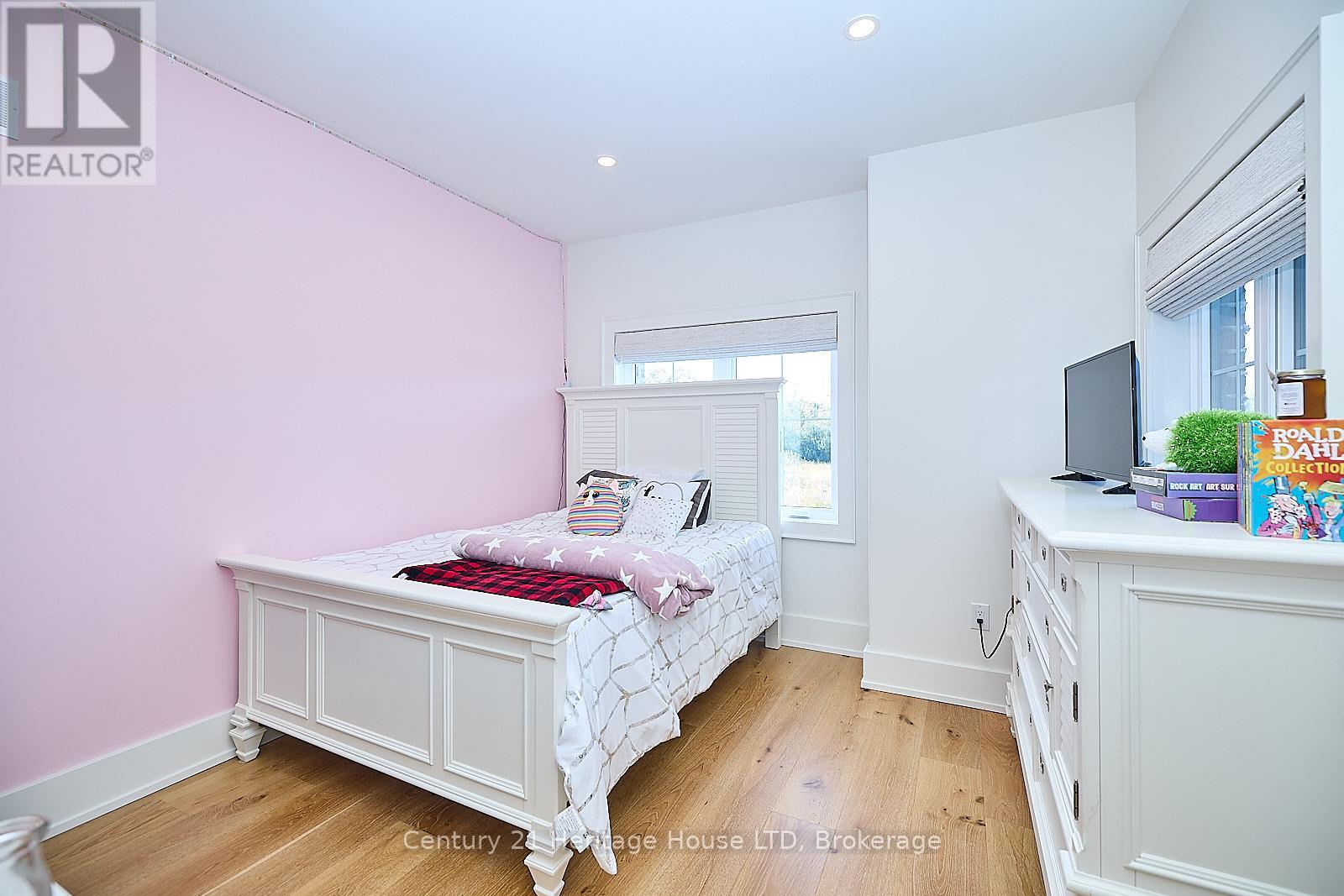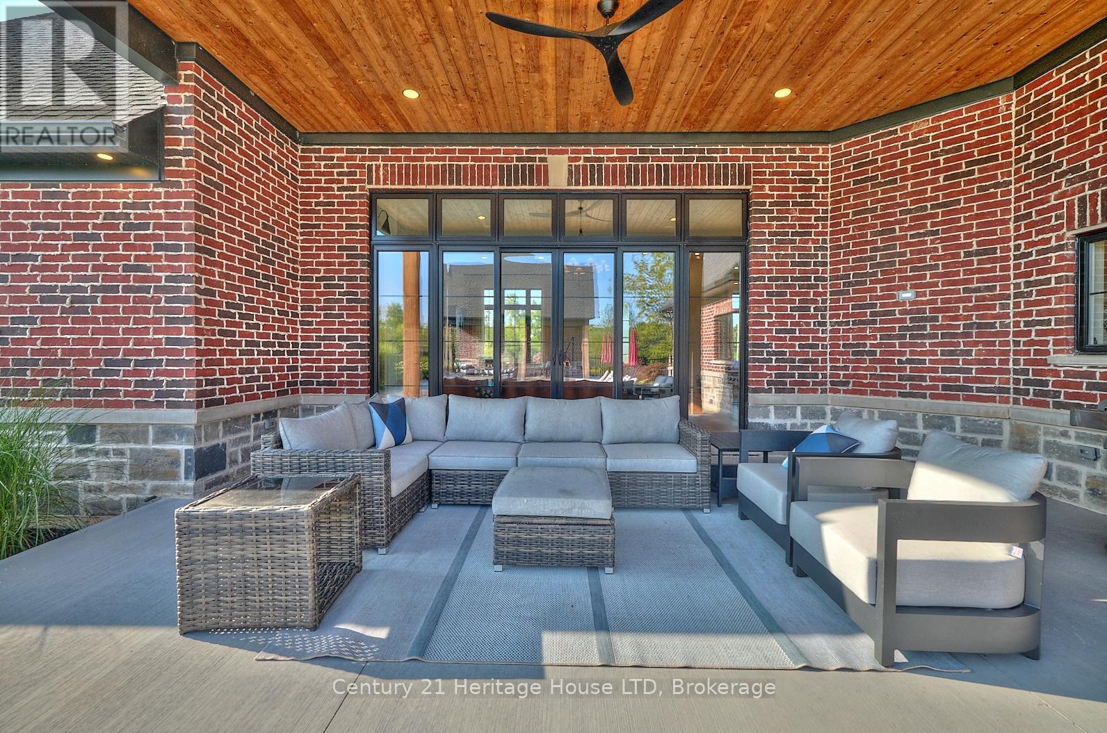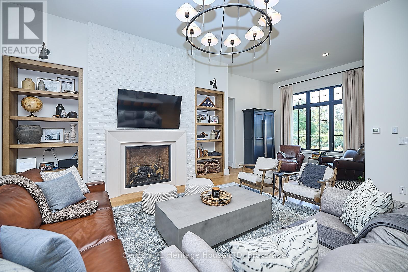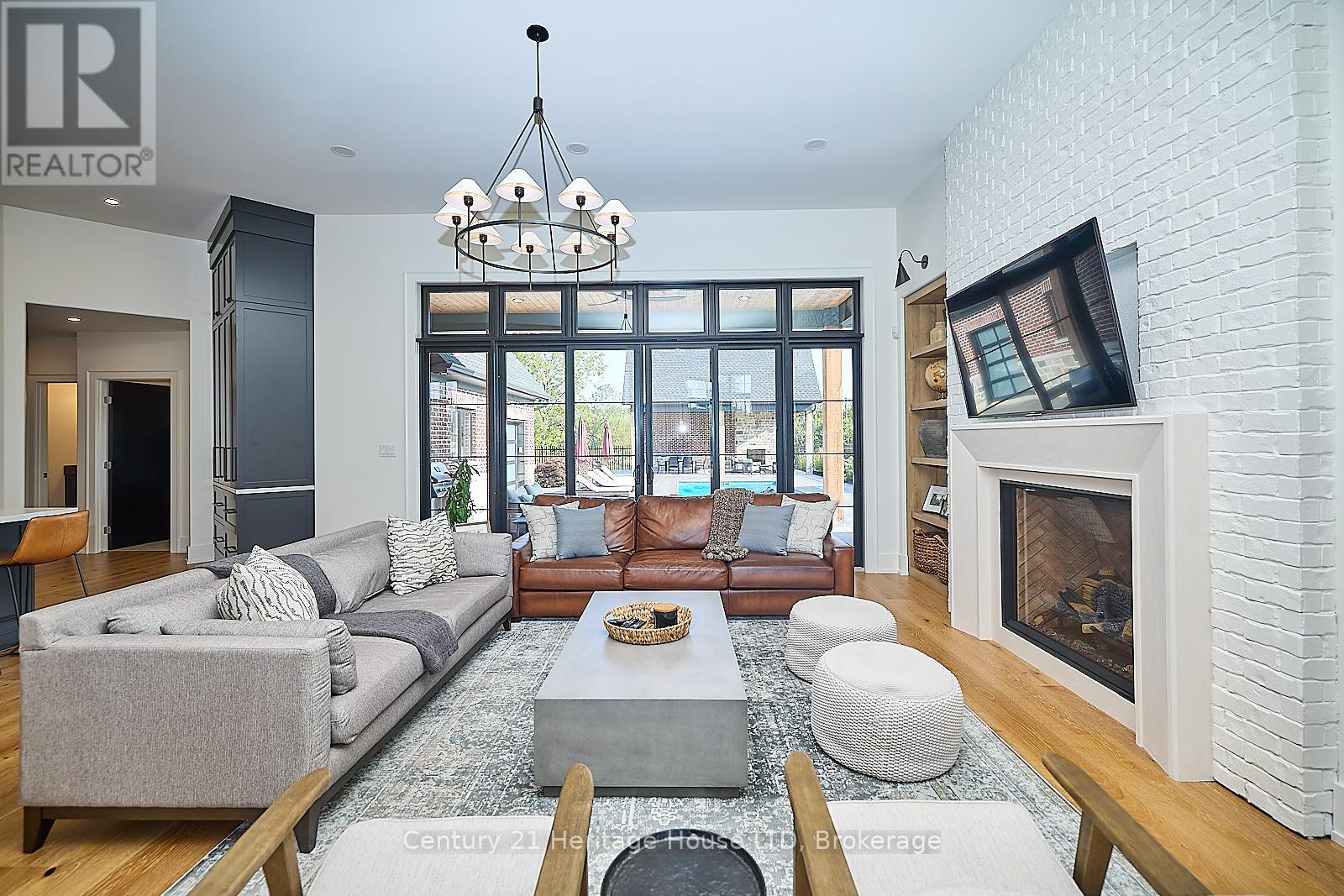 Refined Country Living Meets In-Town Sophistication.Nestled on 1.7 professionally landscaped acres, this exceptional brick bungalow is a masterclass in curb appeal-anchored by lush gardens, a stone walkway, and a stately front porch. The interior reveals a seamless open-concept design where rich hardwood floors lead to a true chef's kitchen, complete with premium quartz countertops, a social seating island, and custom cabinetry. The heart of the home is the expansive Great Room, featuring a bespoke cast-mantle gas fireplace and walk-out access to a covered rear patio.The primary retreat is a sanctuary of its own, boasting a walk-in closet and a 5-piece spa ensuite with radiant in-floor heating and a deep soaker tub. Two additional bedrooms-each with their own walk-in closets-ensure space for everyone. Outside, the property transforms into a private resort: an in-ground pool, an outdoor fireplace, and a dedicated bar area are set against a fenced backdrop. Bonus: A detached 3-car garage with loft space and roughed-in floor heat offers endless possibilities for the hobbyist. Just steps from the Friendship Trail and Lake Erie, this is more than a home; it's a lifestyle. (id:64974)