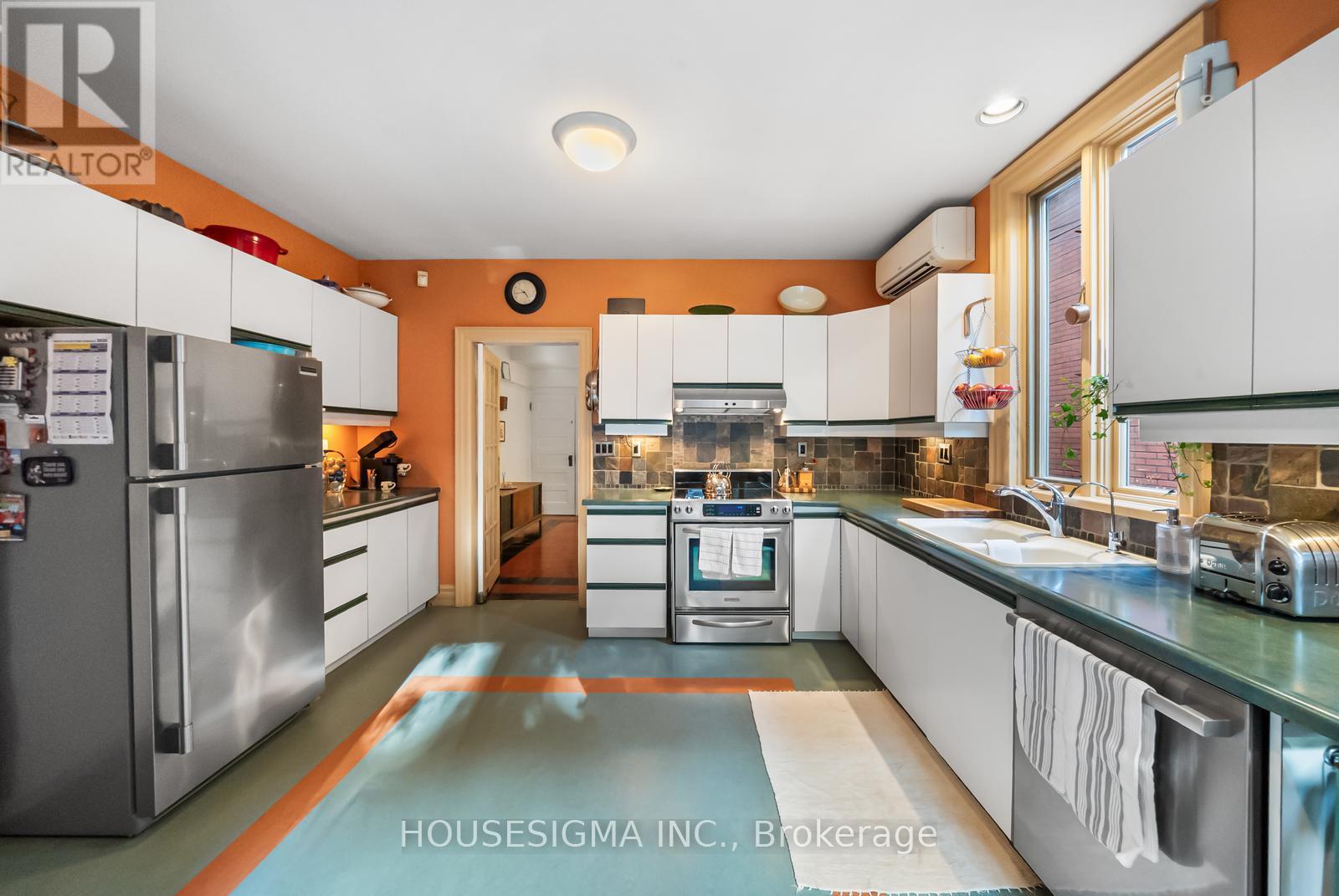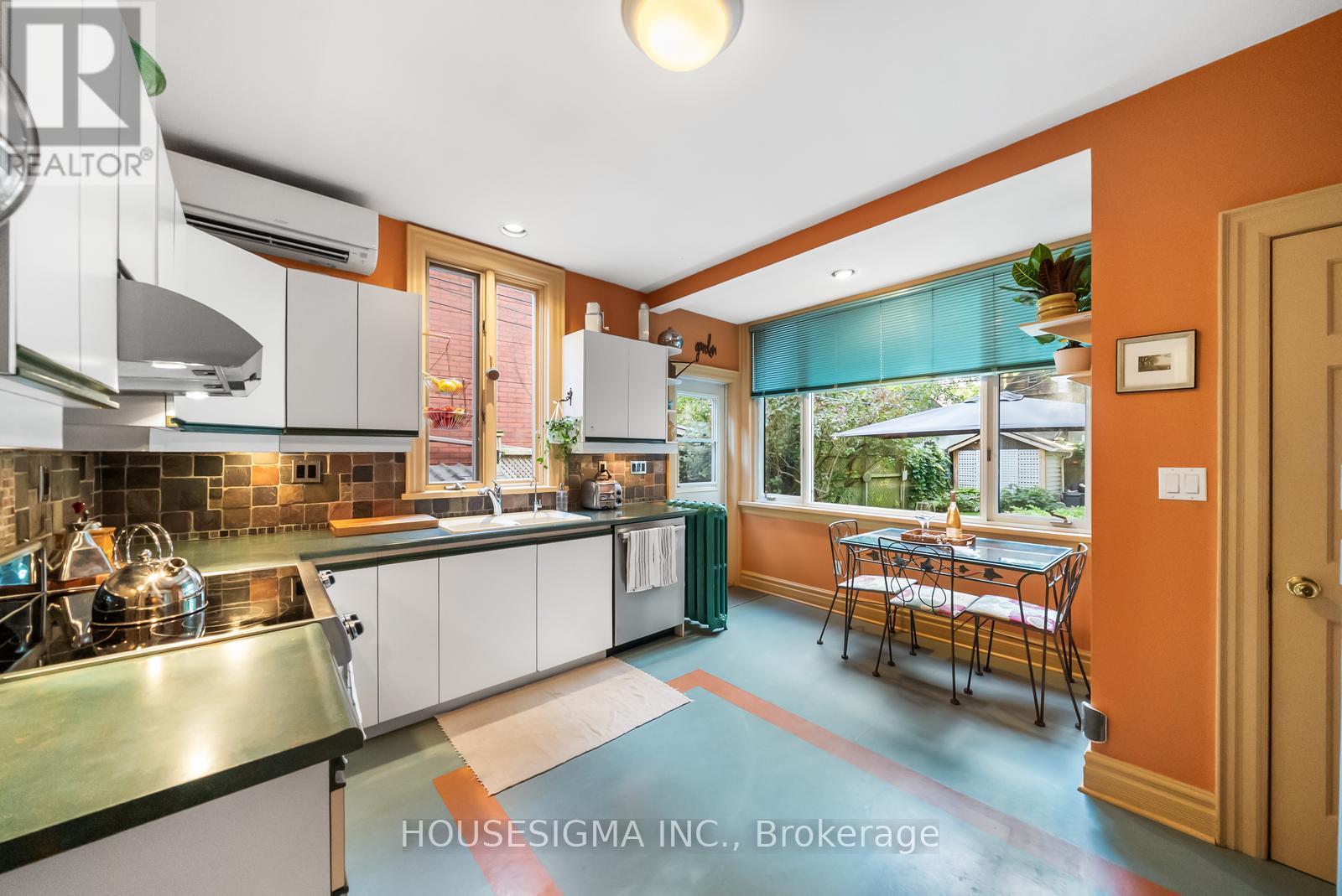 Upon entering this lovingly maintained home you're greeted by timeless charm seamlessly blended with contemporary living. This turnkey two-storey exudes warmth and character, with three bedrooms, soaring ceilings, two modern bathrooms, and a kitchen designed for both everyday living and entertaining. The spacious living/dining room includes exposed brick, large windows, and generous traditional trims. The second floor includes a primary bedroom with a bonus office, two additional bedrooms, and a tranquil 4-piece bath with cathedral ceiling and skylight. The exterior's charm extends the interior's comfort, with a welcoming front porch and a walkout from the kitchen that leads to an inviting urban courtyard - mature perennial gardens and a natural shade provide the perfect spot for morning coffee or unwinding with a book. The basement has a separate entrance and provides versatile additional living space, ideal for work, guests, or recreation. With its abundance of character, exceptional curb appeal, and a deep lot with a wide, private driveway, this home checks every box. Shopping, transit, restaurants, schools (Montessori, public, and alternative), and the lake are just steps away. Whether you're a first-time buyer or looking to downsize, this home offers comfort, convenience, and charm in a delightful family-oriented community. Welcome to 172 Ashdale everything you need, wrapped up in one sweet package. (id:64974)