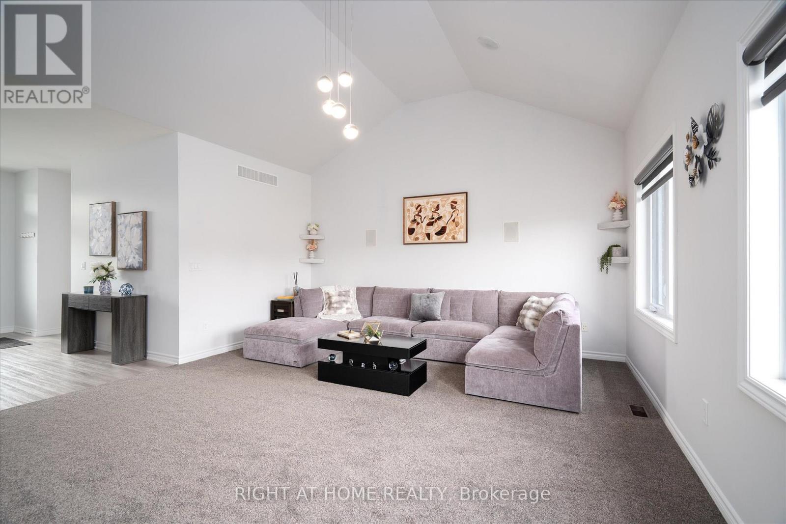 Welcome to 172 Glens of Antrim Way, a beautifully designed detached bungalow set on approximately 1 acre in an exclusive enclave of just six custom homes, featuring the highly sought-after "Brimely" model. Offering the perfect blend of privacy, space, and modern comfort, this home is ideal for those seeking peaceful country living without sacrificing convenience.Step inside to a bright open-concept layout designed for both everyday living and entertaining. The impressive great room features soaring ceilings and a striking modern fireplace feature wall, creating a warm and inviting focal point. The chef-inspired eat-in kitchen is both stylish and functional, complete with sleek white cabinetry, modern appliances, a contemporary backsplash, pantry storage, and a large centre island perfect for gathering with family and friends. A convenient walk-out leads to the patio and expansive backyard, creating seamless indoor-outdoor living.This thoughtfully designed bungalow offers 3 spacious bedrooms and 2 full bathrooms. The primary suite serves as a private retreat, featuring a generous walk-in closet and a luxurious upgraded ensuite with heated floors. The additional bedrooms are bright and well-proportioned, ideal for family, guests, or a home office.The property welcomes you with a long private driveway accommodating up to 10 vehicles and a charming front porch that enhances the home's curb appeal. The expansive one-acre lot provides exceptional privacy and endless potential for outdoor enjoyment.Located under an hour from the GTA and just minutes from the charming lakeside town of Cobourg, you'll enjoy easy access to shops, restaurants, golf, and Lake Ontario while still enjoying the tranquility of country living.A rare opportunity to own a modern custom bungalow on a private acre in a sought-after community. (id:64974)