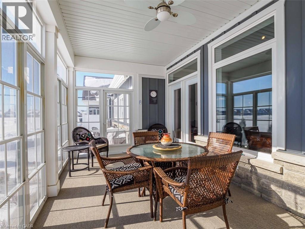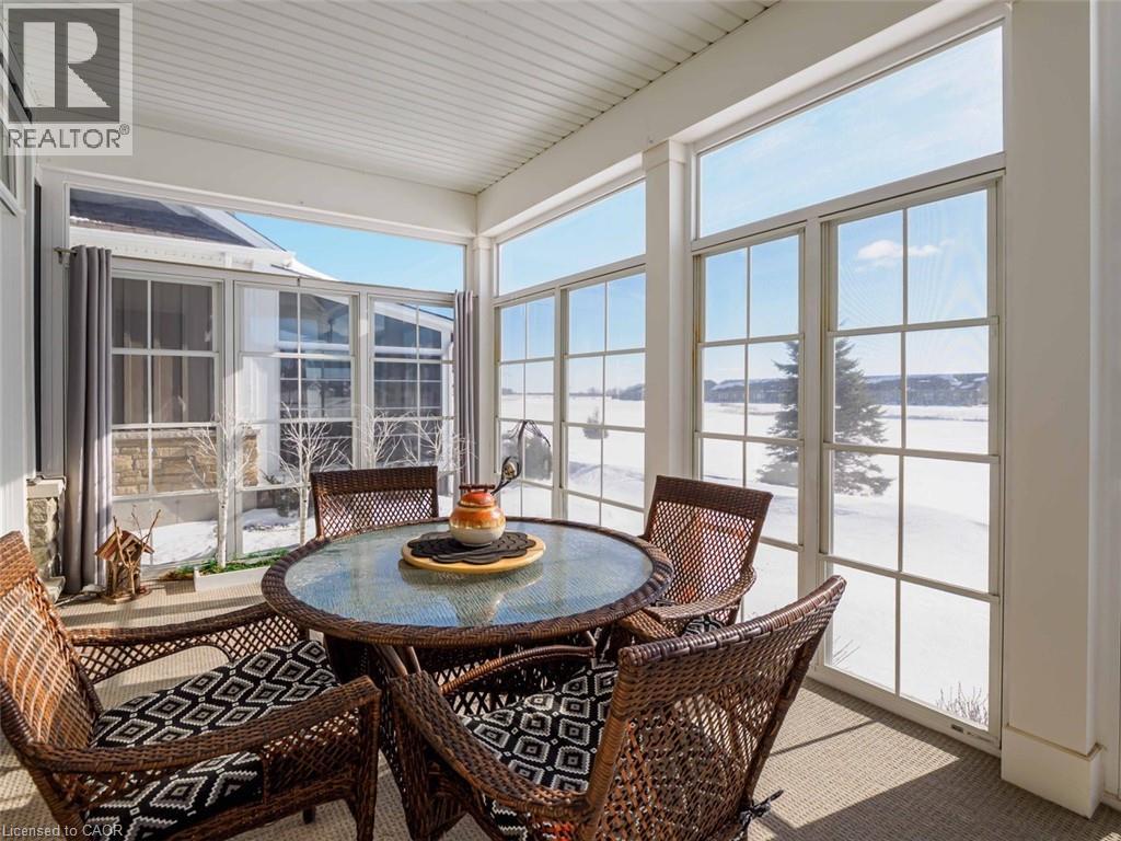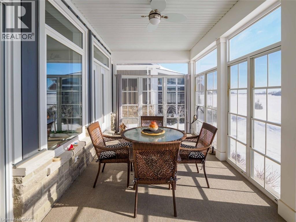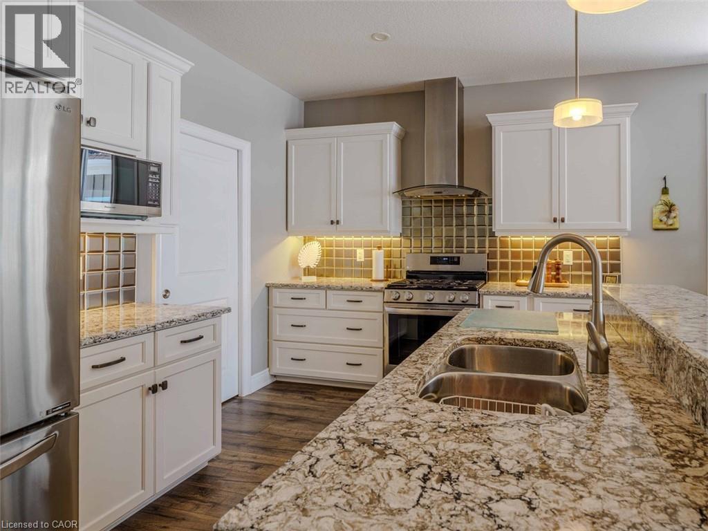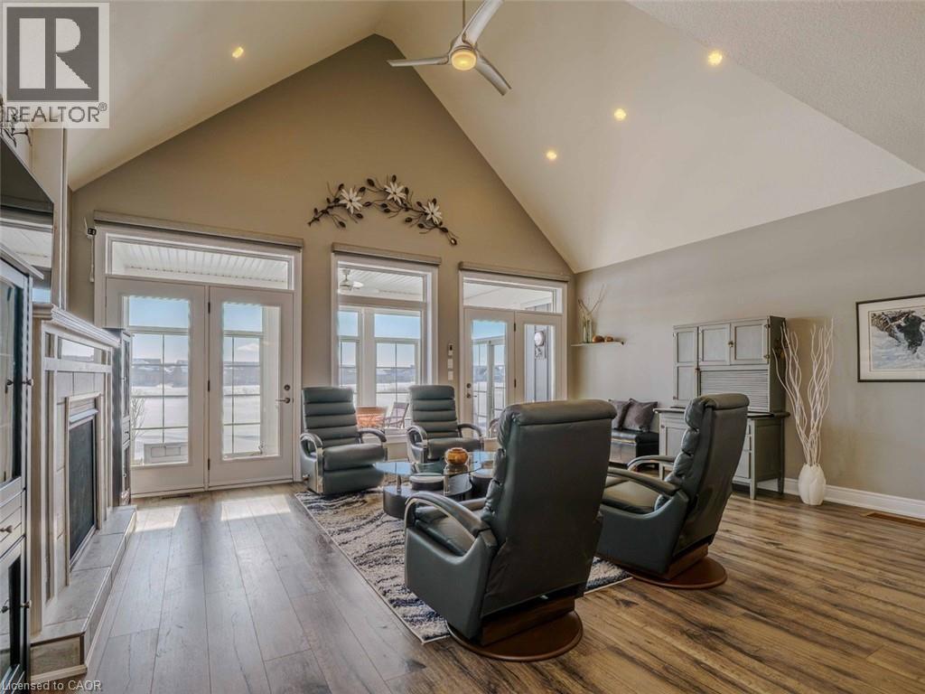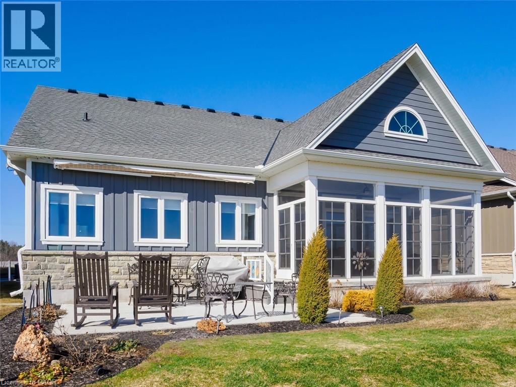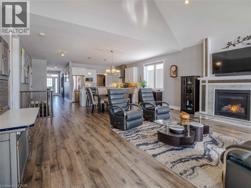Welcome to this beautifully finished home offering 1834 sq. ft. low-maintenance living in the sought-after lakeside Dover Coast community. Offering custom finishes—including stained glass accents, custom barn doors, and a unique antique vanity—this home is truly one of a kind. Backing on to the 2nd fairway of the golf course, this property delivers comfort, functionality, & lifestyle in equal measure. The main level features a beautiful kitchen with quartz countertops, stainless steel appliances and quality cabinetry—perfect for both everyday living & entertaining. The open-concept design flows into the dining area and a stunning living room highlighted by a vaulted ceiling, beautiful gas fireplace, and 2 sets of glass doors leading to the 3 season sunroom that fill the space with natural light. Enjoy peaceful mornings or relaxing evenings in the sunroom, overlooking the golf course—a lovely setting for quiet moments or gathering with friends. Convenient main-floor laundry offers excellent flexibility and could easily function as a walk-in pantry off the kitchen or a walk-in closet for the adjacent office/bedroom, depending on your needs. The fully finished lower level provides 1,834 sq ft of additional living space, featuring a rec room, bedroom, 3-piece bathroom, creating an ideal space for guests, hobbies & storage. For the car enthusiast, the home offers an oversized double garage complete with heating and durable epoxy floors. Residents enjoy access to amenities including private swimming access, golf course, pickleball crts, & a fenced dog park, enhancing the active lifestyle this community provides. (*some amenities addition fee) Located in the vibrant destination town of Port Dover on the shores of Lake Erie, you’ll enjoy beaches, boating, fishing, a marina, walking & biking trails, restaurants, boutiques, and all that Norfolk County has to offer. Here's your opportunity to own a beautifully finished home in one of Ontario’s most charming waterfront towns. (id:64974)