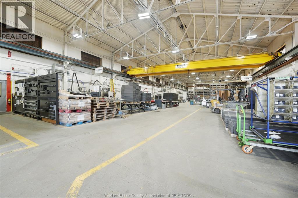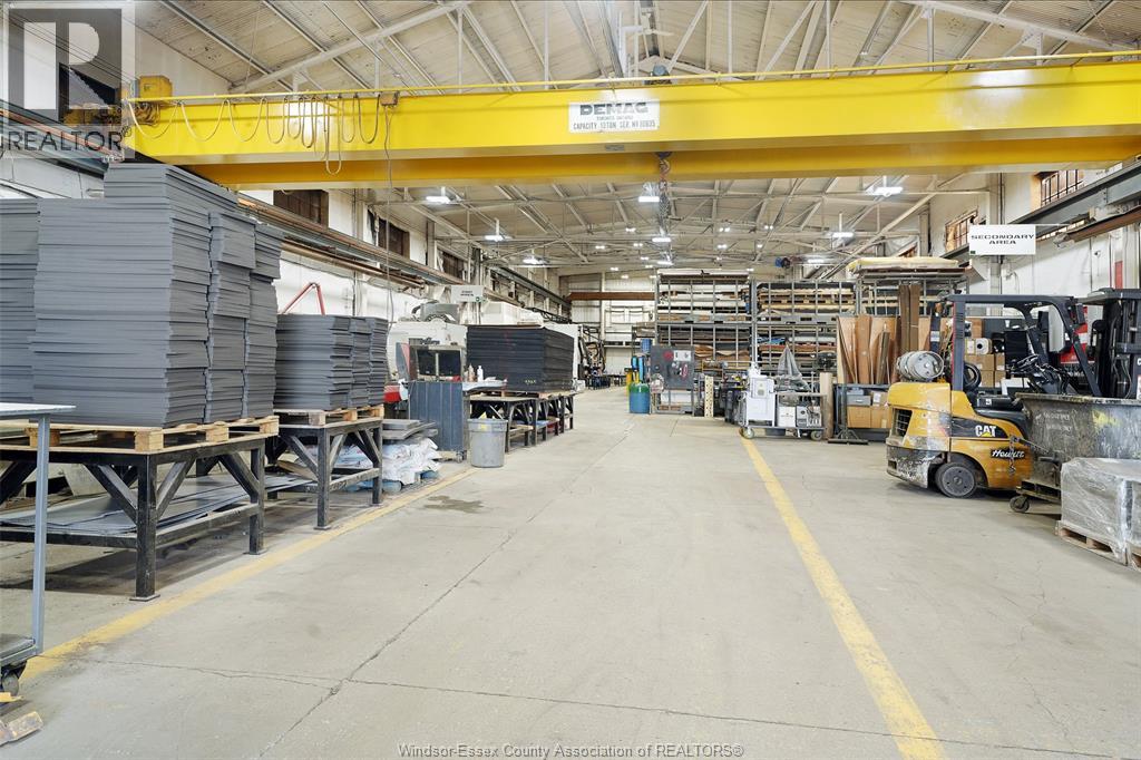 Exceptional industrial opportunity in one of Windsor-Essex’s most sought-after commercial hubs. This well-maintained property offers approximately 20,276 sq ft of primarily industrial space, complemented by finished offices including reception, boardroom, bullpen, kitchen, and lunchroom. Designed for efficiency and productivity, ideal for linear manufacturing processes, the warehouse features high clear heights, two large bay doors, paint and power wash booths, and fully operational 5-ton and 10-ton cranes. Ample power is available with capacity for expansion. The building has seen numerous updates including newer exterior skin, partial roof and upgraded warehouse lighting. Office areas are serviced by forced air and central A/C, while the warehouse benefits from radiant heating. Situated on a high-exposure corner lot with powered signage, this property offers excellent visibility for your business. The site is fenced with onsite parking for 50+ vehicles. Ideally located in Old Castle Ontario's industrial corridor, just minutes from Highway 401, EC Row Expressway, and the US border, making logistics, shipping, and cross-border operations seamless and efficient. A turnkey facility built for performance, visibility, and growth. Contact Listing Agents for more information and a private tour. (id:64974)
