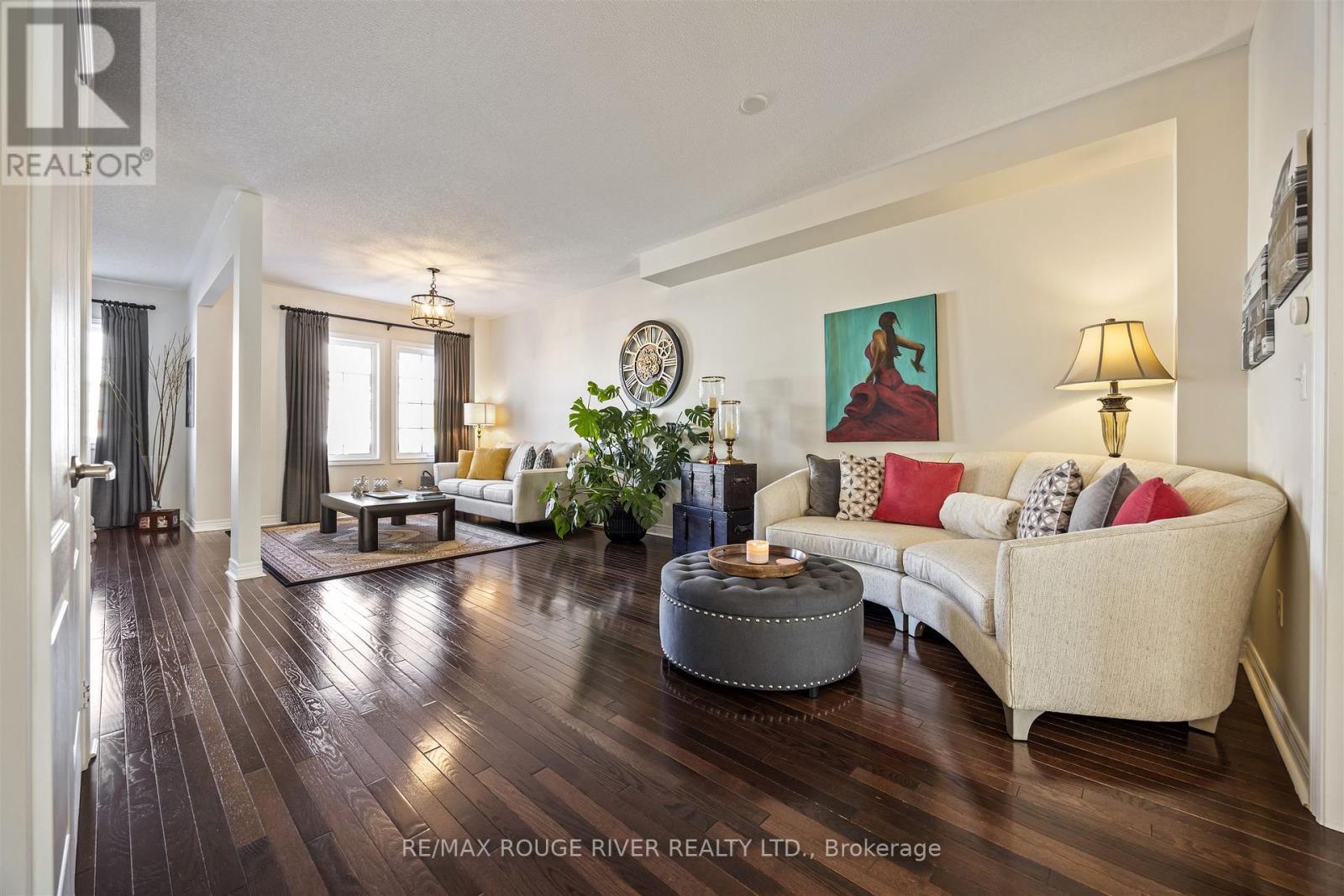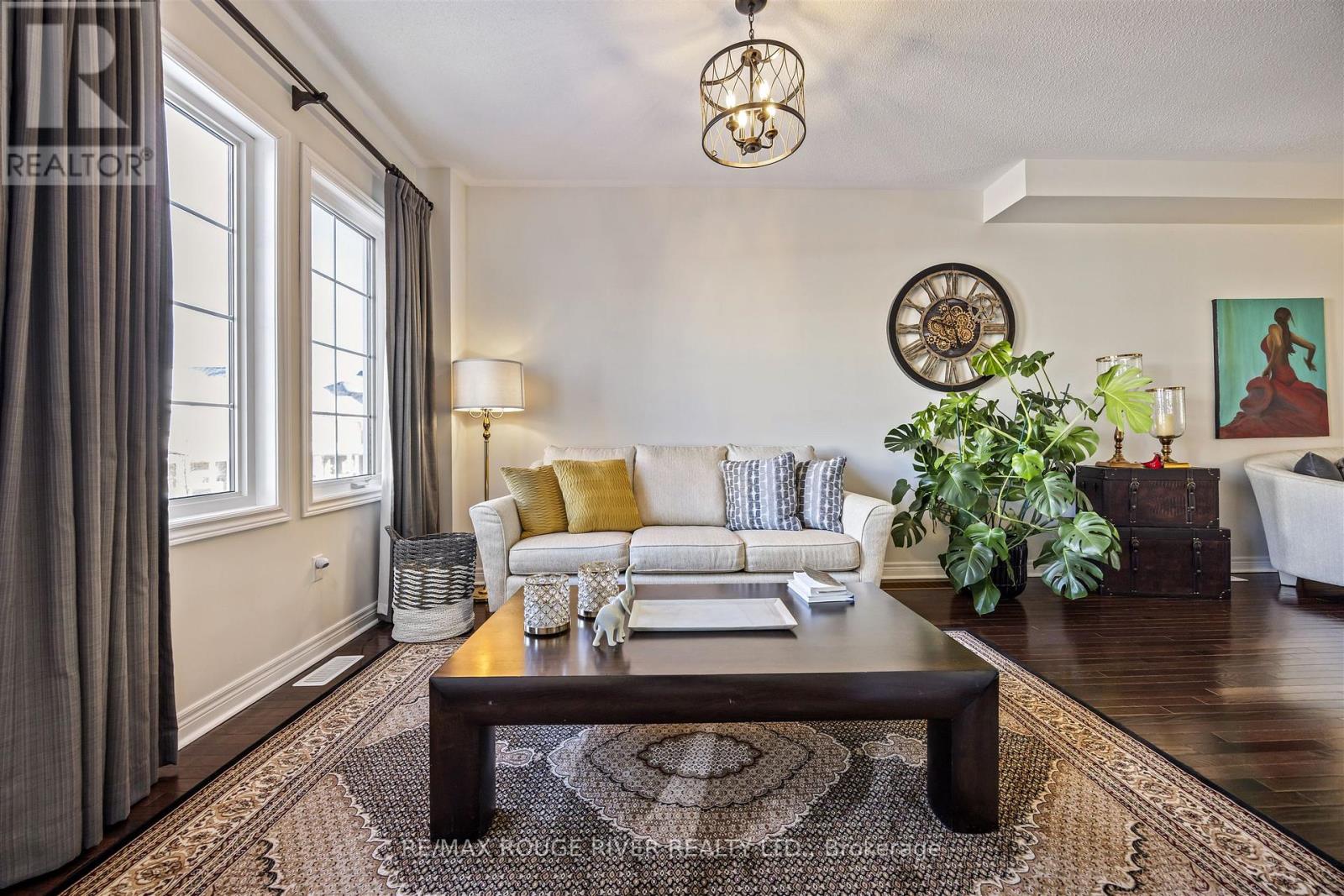 Welcome to 1721 Carousel Drive. Stunning End Unit Freehold Townhome by Lebovic Pine Homes in the desirable Duffin Heights Neighbourhood. This 3-Bedroom Home offers a Semi-Detached Feel. Direct Access from the Garage to the Main Floor adds everyday ease and convenience. The Second Floor features a bright open-concept front to back room with hardwood floors throughout, creating a natural flow between the Living, Dining and Kitchen areas - Perfect for both Everyday Living and Entertaining. The Spacious Gourmet Kitchen has a huge Granite Breakfast Counter, Upgraded Stainless Steel Appliances and Lots of Cabinetry with Walk-Out to a 12' x 12' Deck. Upstairs, the Expansive Primary Bedroom serves as a Private Retreat, Complete with a large walk-in closet, and a large 4-Pc Ensuite. Two spacious additional bedrooms and a 4-Pc Bathroom. The Finished Main Floor offers a 4-Pc Bathroom and Walk-Out to a Patio and Fully Fenced Backyard. Conveniently located near Highways, Transit, Parks, Schools and Place of Worship. (id:64974)