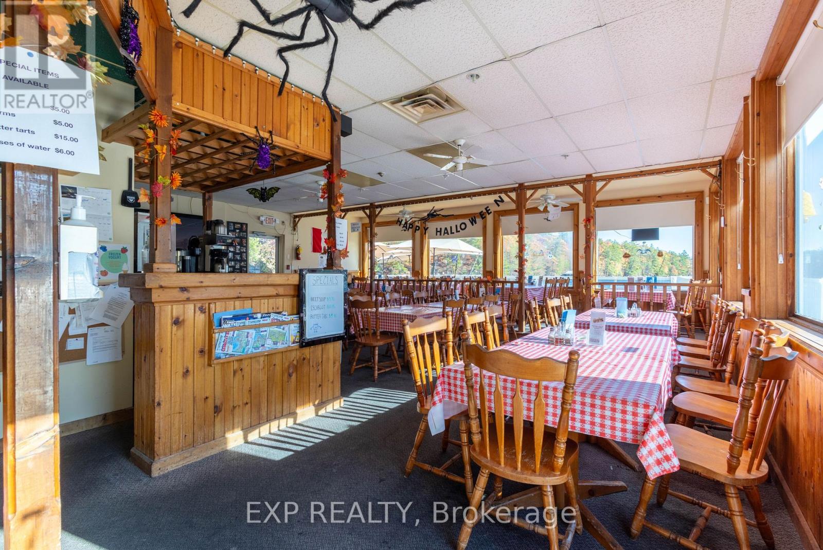 Rare Opportunity To Own The Well-Known River House Restaurant, Ideally Located In Severn Falls Directly On The Trent-Severn Waterway. Positioned Along A Highly Visible Waterfront Location With Direct Boat Access And Steady Year-Round Traffic, This Unique Commercial Property Can Offer Multiple Revenue Streams And Exceptional Future Potential. The Restaurant Building Has Been Well Maintained With Significant Capital Upgrades, Including Waterloo Biofilter Septic System, New Roof, New Waterfront Patio And A Whole Building Backup Generator, Making It A Turn-Key Business Opportunity Or Versatile Commercial Investment. Offering A Fully Equipped Commercial Kitchen, Bar Area, Dining Space, Storage And Mechanical Areas, This Property Is Designed For Efficiency And Continued Growth. The Zoning Allows A Wide Range Of Permitted Uses, Including Restaurant, Retail, Tourism, And Potential Redevelopment Options. With Waterfront Access, This Rare Property Also Lends Itself To Hospitality Expansion Or Continued Profitable Operation As A Restaurant With Living Quarters Above, The Perfect Live/Work Situation. Located Just 20 Minutes To Highway 400 And Easily Accessible By Road Or Boat, Severn Falls Is A Popular Destination For Cottagers, Snowmobilers, Boaters And Tourists. This Is An Excellent Opportunity For Entrepreneurs, Investors Or Developers Looking For A Strong Foothold In A High-Demand Waterfront Community. Property, Business, Equipment And Chattel Package All In One. Do Not Miss This Exceptional Opportunity On The Trent-Severn. (id:64974)