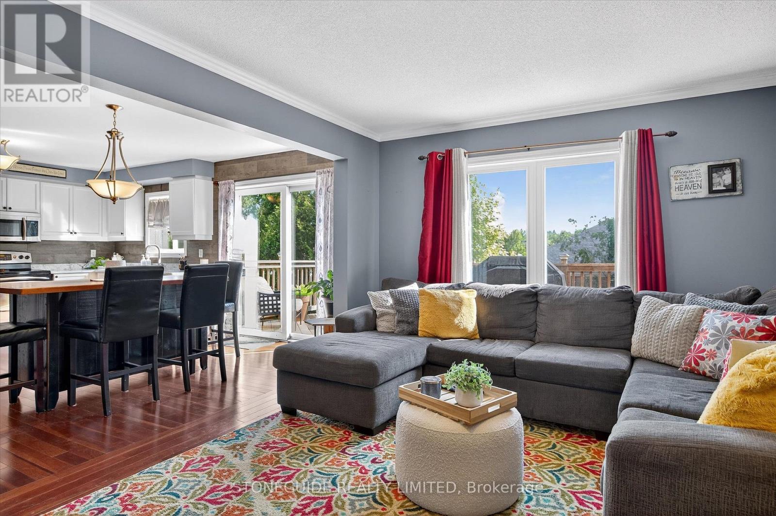 Welcome to 1726 Ravenwood Drive, a beautifully maintained two-storey family home in Peterborough's West End. This elegant 4+1 bedroom, 3.5-bathroom residence offers a perfect blend of classic charm and modern convenience. From the moment you enter, you'll be impressed by the warmth of the hardwood floors on the main level and the timeless elegance of the oak staircase. The heart of the home is a spacious, open-concept kitchen with a bright dining area with a walk-out to a large deck, and open to the main floor family room. Upstairs, you'll find four bedrooms, including a comfortable primary suite. The lower level boasts a bright, finished walk-out basement that includes a fifth bedroom and a kitchenette, making it perfect for extended family, guests, or a private home office. This flexible space adds both function and value, easily adapting to your family's evolving needs. Set in a family-friendly area, this home is close to schools, parks, scenic walking trails, and everyday amenities, offering both tranquility and convenience. Whether you're a growing family or looking for a home with room to entertain and relax, 1726 Ravenwood Drive delivers space, style, and comfort in a great neighbourhood. (id:64974)