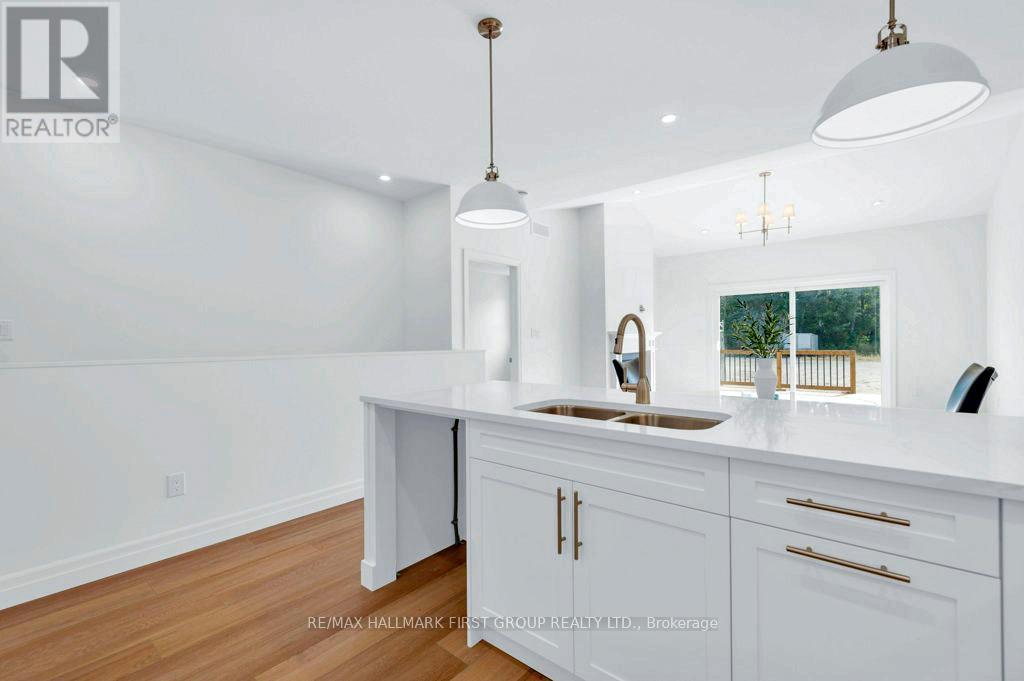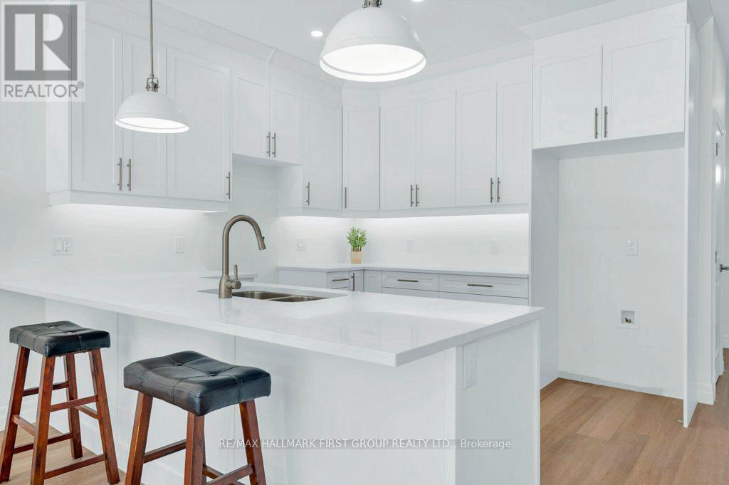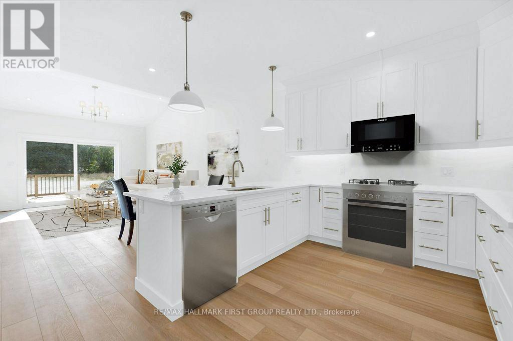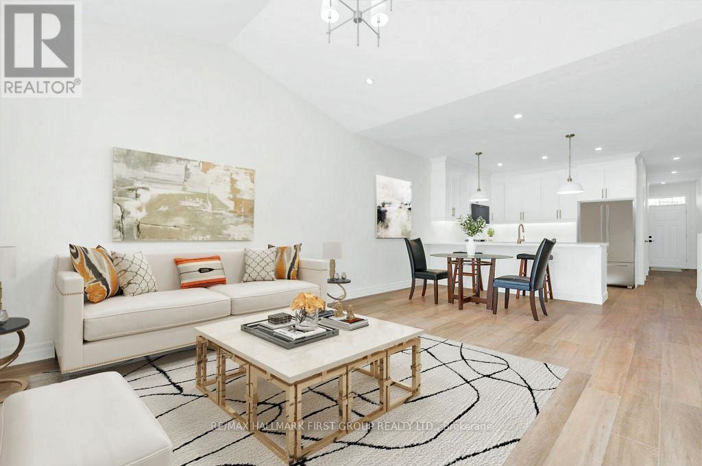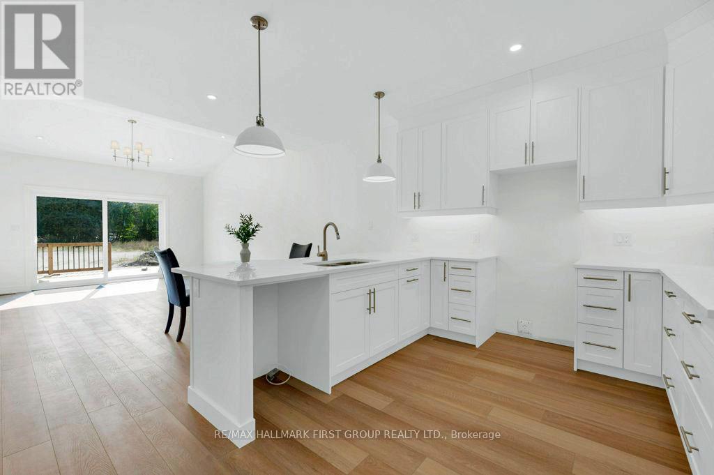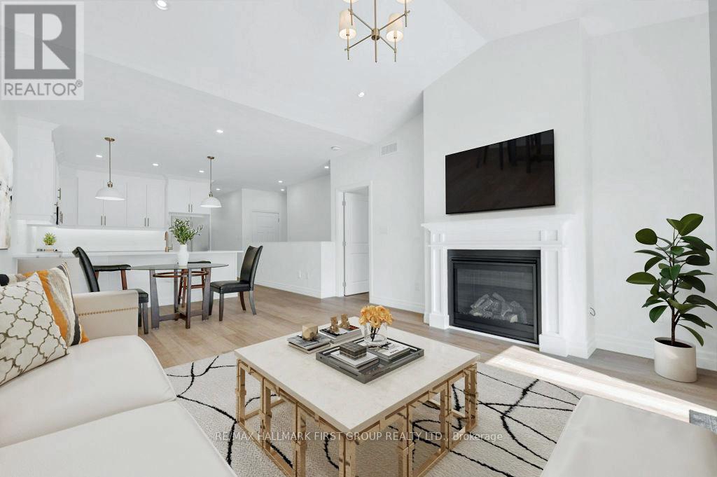 Welcome to 173 Pomeroy Ave, part of Tweed's newest development-a stunning BRAND-NEW townhome in the heart of the Village of Tweed! This beautifully designed, custom-built home blends modern style with timeless comfort, featuring 9-foot ceilings and a cathedral-style living area filled with natural light from large patio doors leading to a private deck and yard. The open-concept layout seamlessly connects the kitchen, dining, and living spaces, ideal for cozy evenings by the gas fireplace or entertaining friends. The kitchen boasts ample cabinetry, quartz countertops, a breakfast bar, and an optional appliance upgrade package. With two spacious bedrooms and two full bathrooms, the primary suite offers a walk-in closet and a 3-piece ensuite with a tiled walk-in shower. Main floor laundry adds convenience for single-level living, while the full basement provides potential for extra bedrooms, a family room, or a third bathroom, plus rough in for additional bathroom. Additional highlights include an attached garage with inside access, efficient forced-air gas heating, and central air. Located within walking distance to schools, shops, the library, medical centre, Stoco Lake, and more. The price includes completed lawn and paved driveway, plus Tarion New Home Warranty. Sample photos may differ from final finishes. Come visit today! (id:64974)