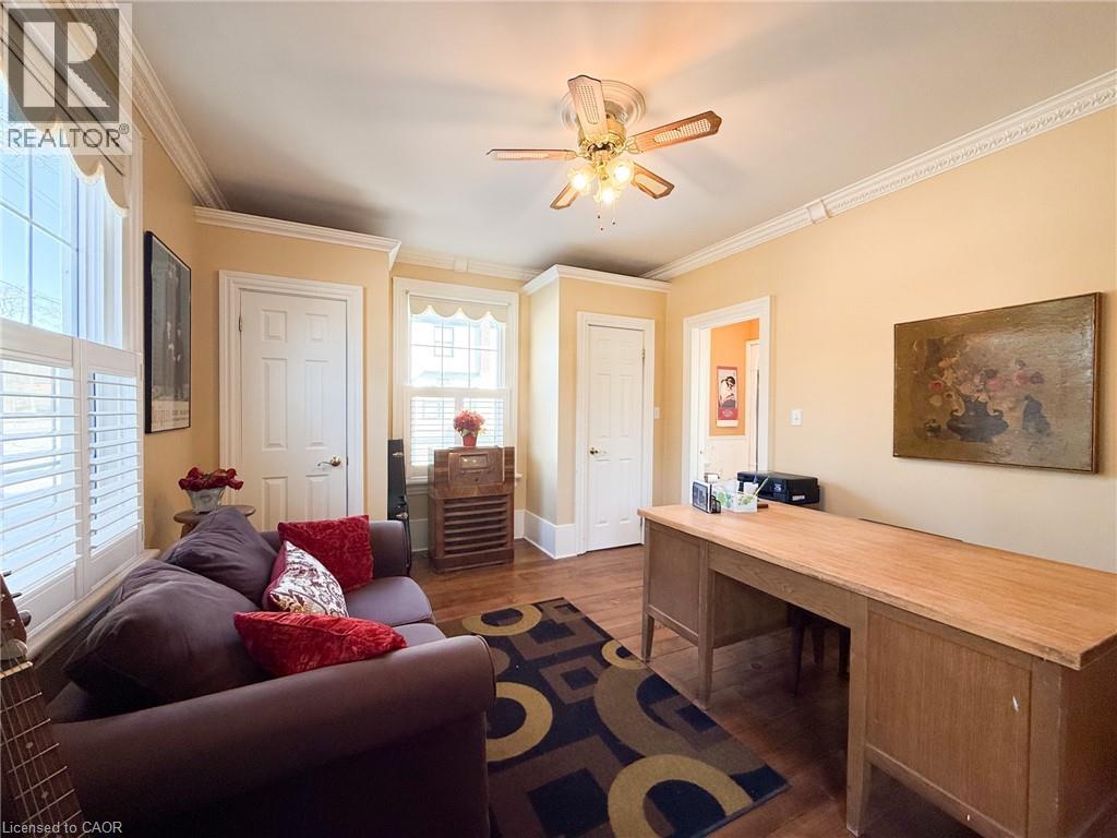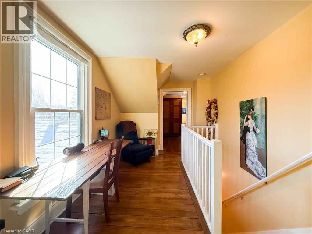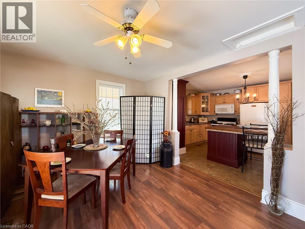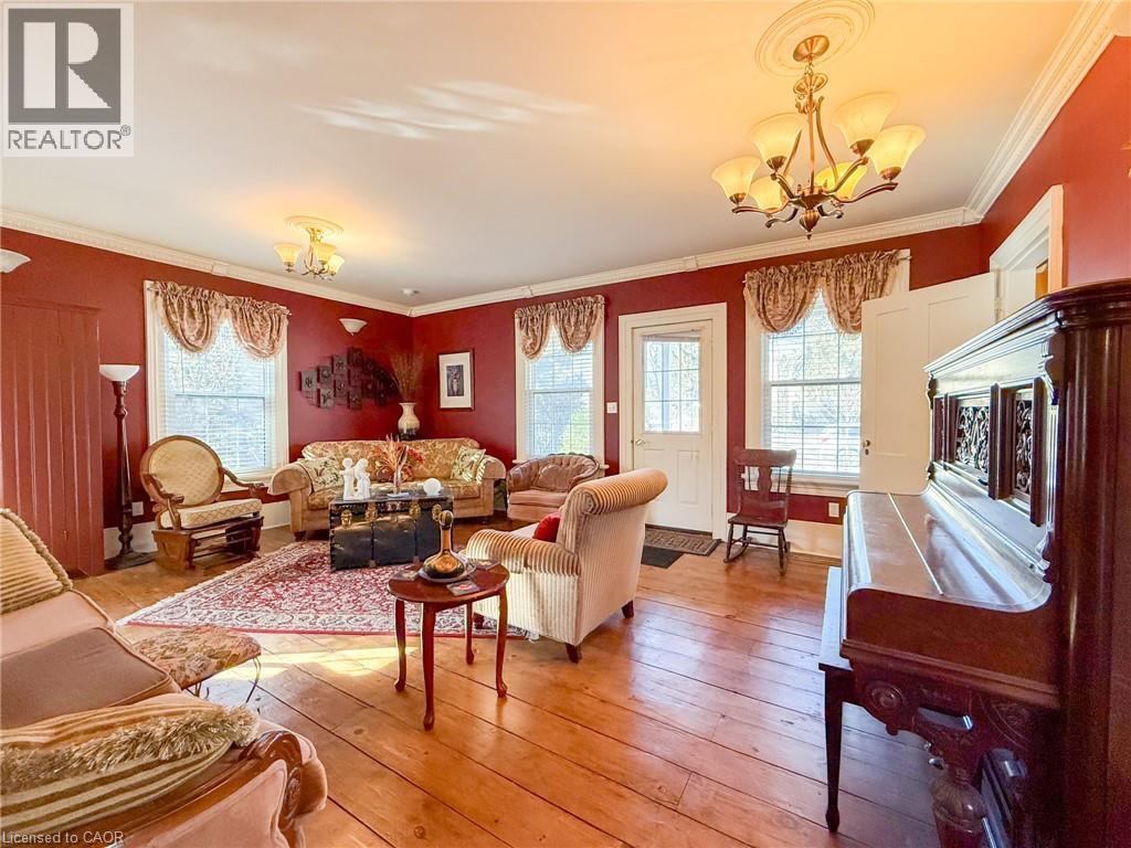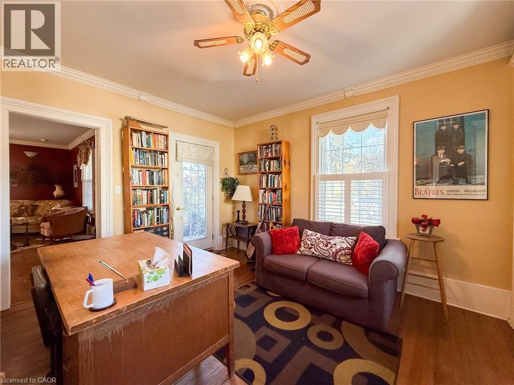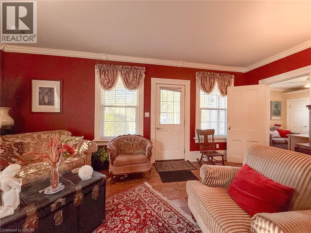 Nestled on one of Waterford’s most popular streets, this historic 1885 character home has been lovingly cared for by just a few devoted owners, preserving timeless charm and architectural details while offering modern comforts. A spacious 3-bedroom, 2-bathroom residence features high ceilings, crown molding, and warm pine plank floors that flow throughout, with a versatile main-level room ideal as a den, office, or bedroom and easy access to a covered front porch. The eat-in kitchen showcases maple cabinetry, a center island with built-in dishwasher, and room for 3 stools, plus a cabinet area for the stackable washer and dryer; just off the kitchen, a rear multi-purpose room with garden door access to the rear deck provides flexible space for dining, family, or retreat. The upper level affords a landing area perfect for a desk/workstation, a guest bedroom, and a primary bedroom with a private 3-piece ensuite featuring a corner soaker tub. Outside, a deep, fully fenced yard backs onto a fire lane for added access, with covered front & side porches & rear deck enhancing year-round living. Parking and storage are convenient with a single-wide paved driveway and a detached single-car garage. Waterford itself is a family-friendly community and home of Pumpkinfest, offering a short drive to employment and amenities, making this more than a home—it's a piece of history ready to be enjoyed by you. (id:64974)