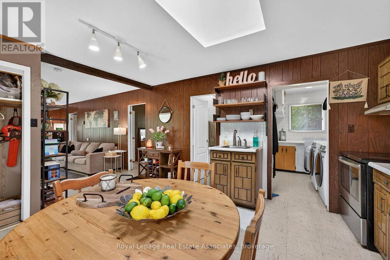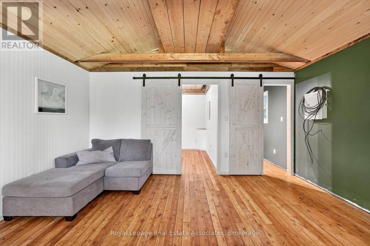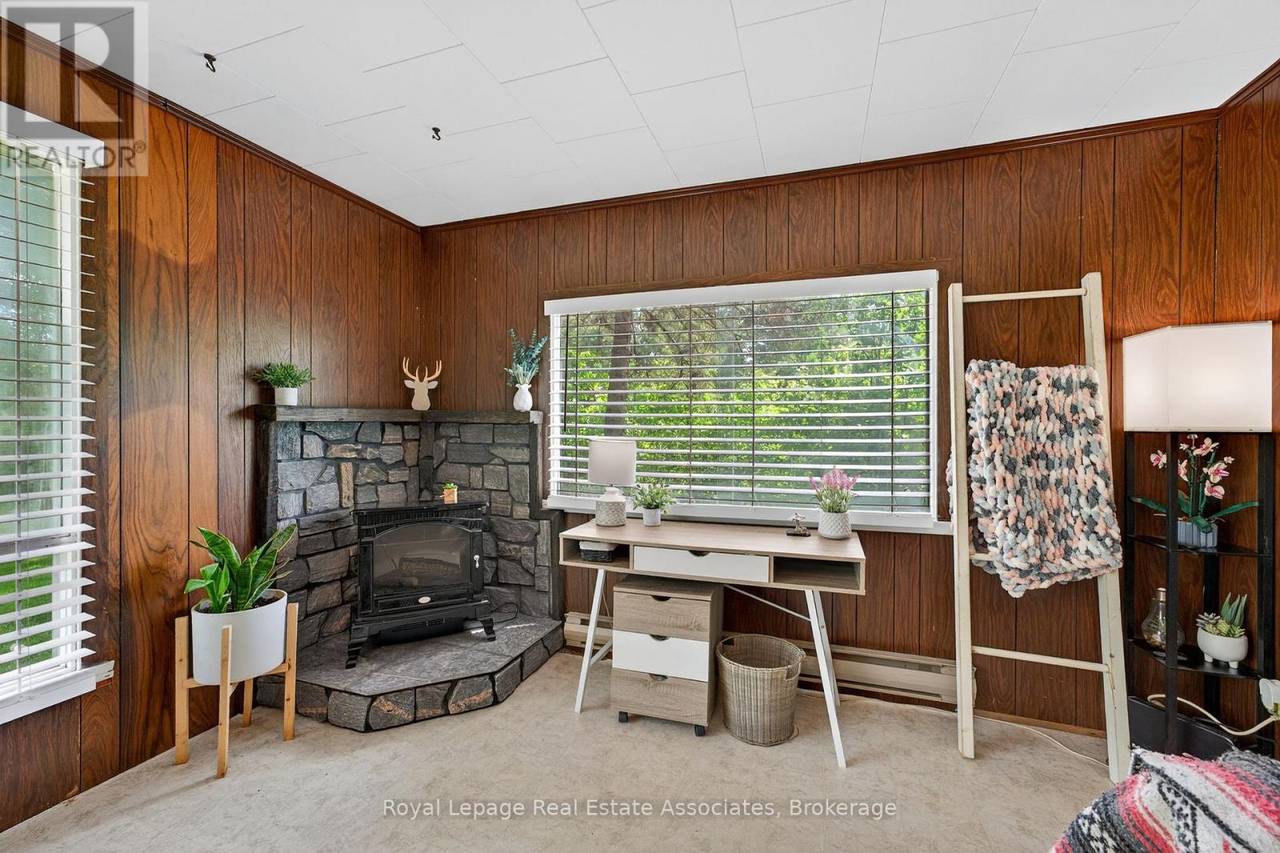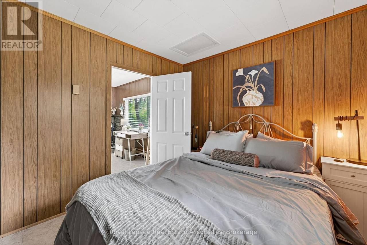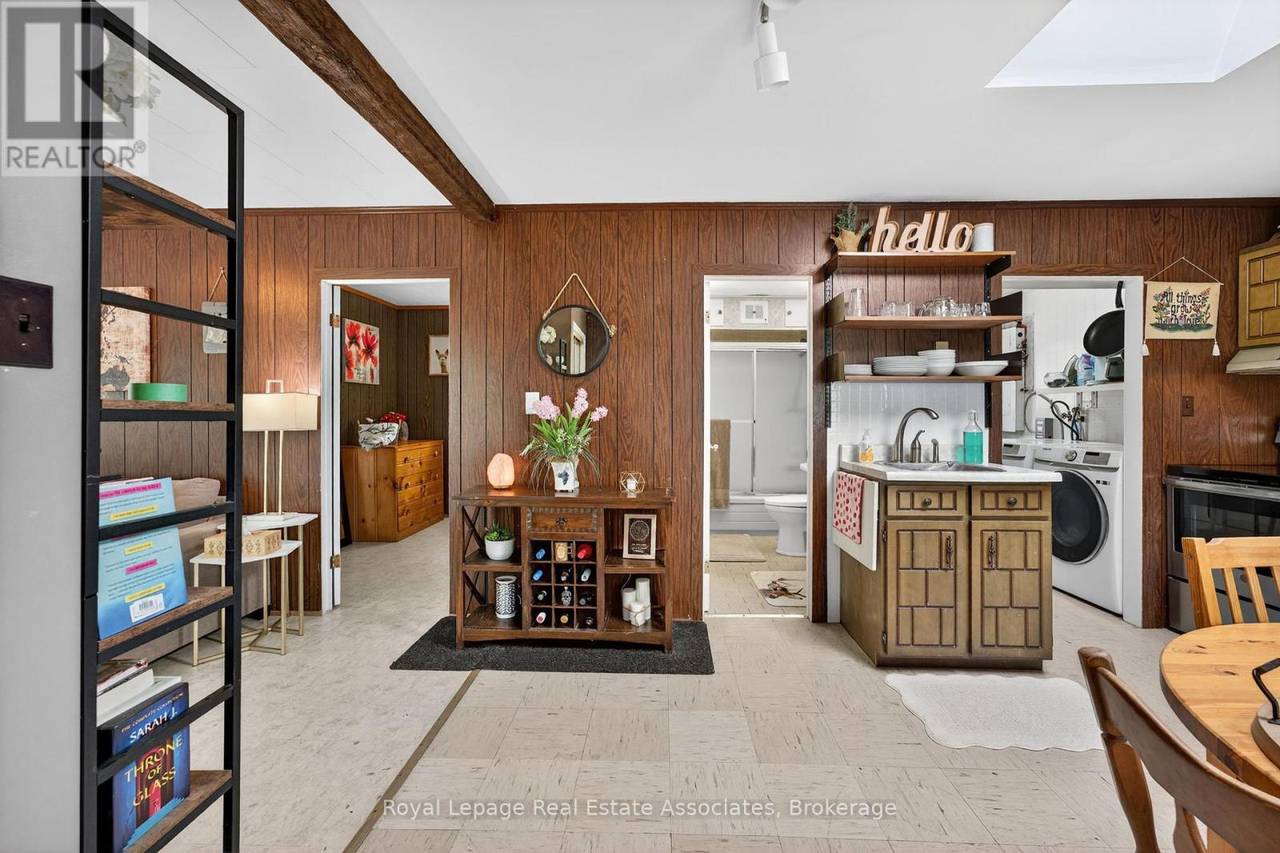 Welcome to your peaceful escape in the heart of the Algonquin Highlands! Situated directly across from the pristine waters of Halls Lake. Set on a spacious, tree-lined lot, the main home is a cozy 2-bedroom, 1-bathroom bungalow featuring an open-concept living and dining area, as well as a well-equipped and convenient kitchen and laundry area. A large picture window in the living room fills the space with natural light and serene views. Ideal for hosting family and friends or creating a private rental opportunity. The property also includes a separate 1-bedroom guest suite with it's own access off Stouffer Mill Rd, connecting to HWY 35. This dwelling makes for a perfect garden suite, and rental potential offering comfort, privacy, and flexibility for year-round enjoyment. This suite has been roughed in for a full bathroom and kitchenette just waiting for you to add your personal touch. A detached double car garage, with added workshop, provides ample storage for vehicles, tools, and recreational gear, making it easy to explore everything this sought-after lakefront community has to offer. Whether you're looking for a weekend getaway or a full-time residence surrounded by nature, this property is a rare gem just steps from swimming, boating, fishing, and the scenic beauty of Halls Lake. (id:64974)