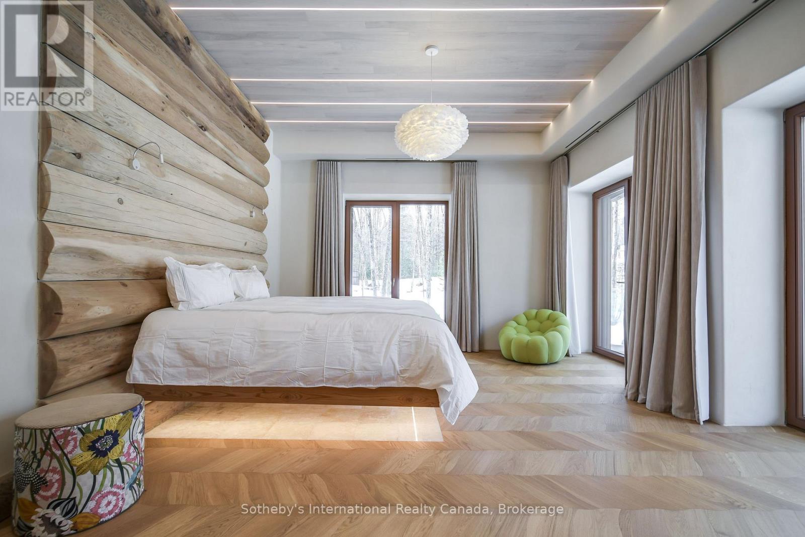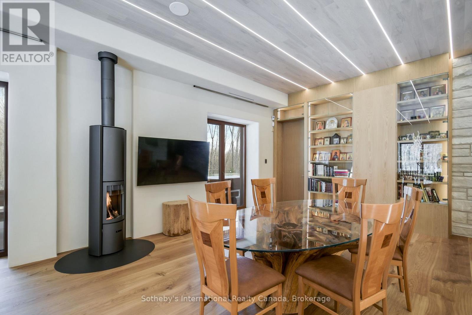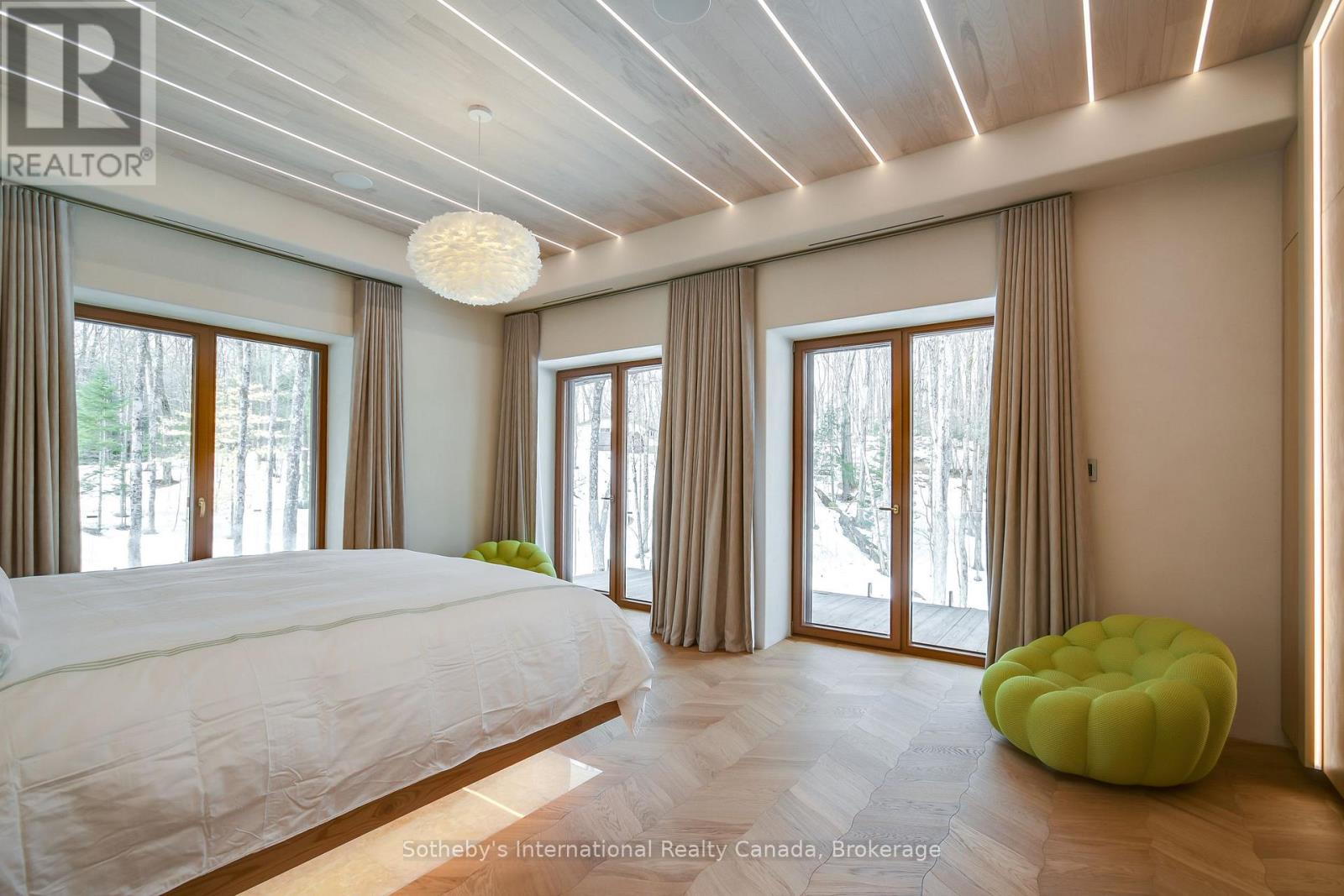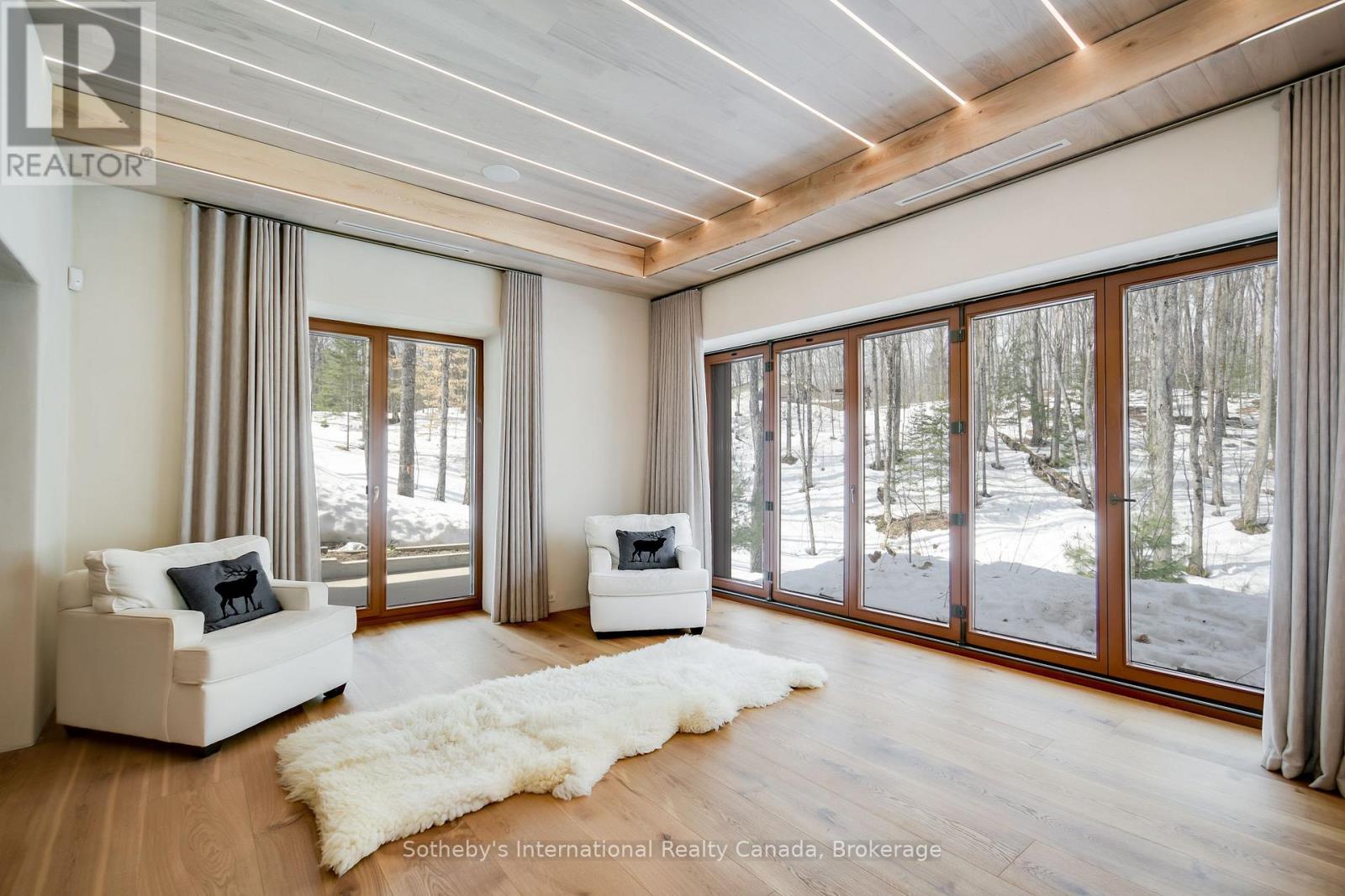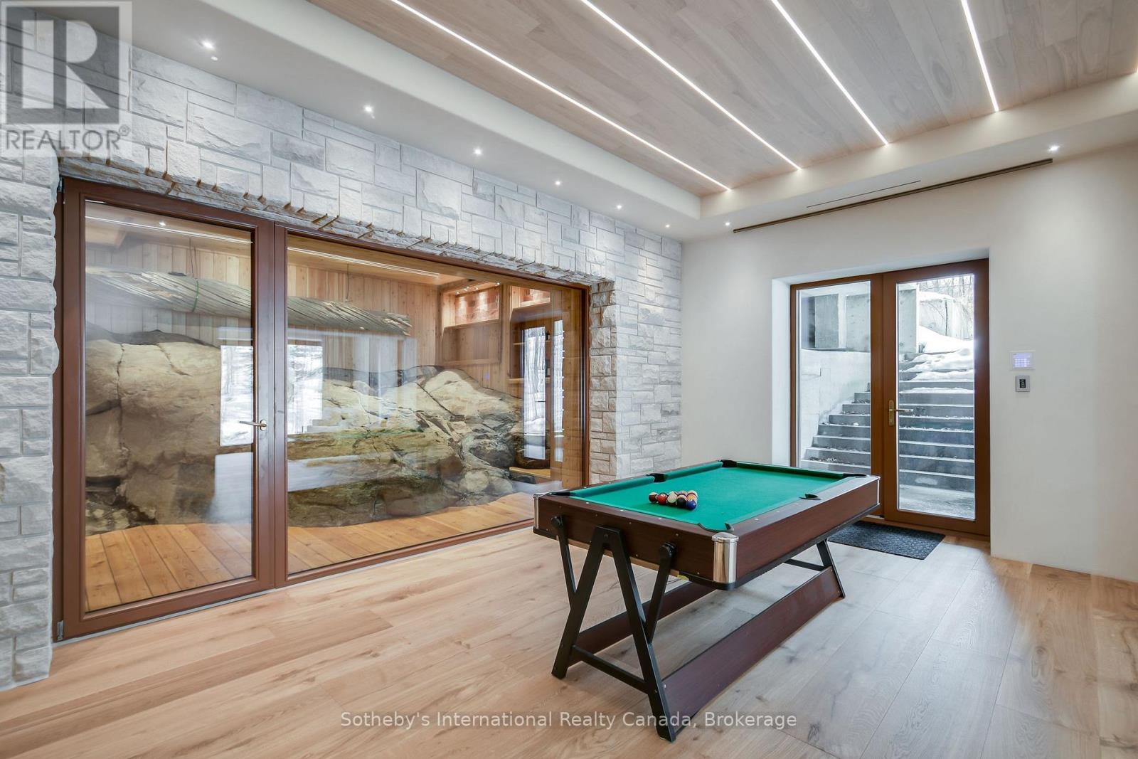 Pure Luxury Retreat - Your Private Paradise in the Heart of the Canadian Wilderness. A one-of-a-kind luxury retreat and architectural marvel that truly feels like a house from 2050. Built to Net Zero Passive House standards, this estate spans approximately 9,500 sqft of custom-designed living space, plus over 9,000 sqft of decks encircling the home. It blends modern luxury with ecological stewardship and serene forest views. Featuring a private dock and deeded lake access, this property is a sanctuary for those seeking refined living and the possibility of complete independence.Crafted with European-sourced materials and exceptional craftsmanship, this home showcases a rare EcoCocon straw wall system for superior insulation, Legalett radiant floor heating for consistent, draft-free warmth, and triple-pane European windows to optimize energy performance. Every detail is thoughtfully designed for comfort, wellness, and sustainability.The main floor offers an expansive open-concept great room with floor-to-ceiling windows, a gourmet kitchen, library, office, and a spacious primary suite with a spa-like ensuite. Upstairs, discover a versatile gym, cozy upper living area, wood-burning sauna, and an inviting swim-up spa with jacuzzi - an unparalleled wellness retreat. The lower level features a generous recreation room, rock-carved wine cellar, cold storage, and mechanical spaces.Natural materials throughout - including wide-plank natural wood floors, marble and granite finishes, and cross-laminated timber - create a serene, healthy environment. With a full-house Generac battery system, 400-foot well, and solar-ready infrastructure, this home is fully prepared for sustainable, self-sufficient living. There are simply too many upgrades to list - contact the listing agent for full details on this unique masterpiece, offered well below replacement cost. (id:64974)