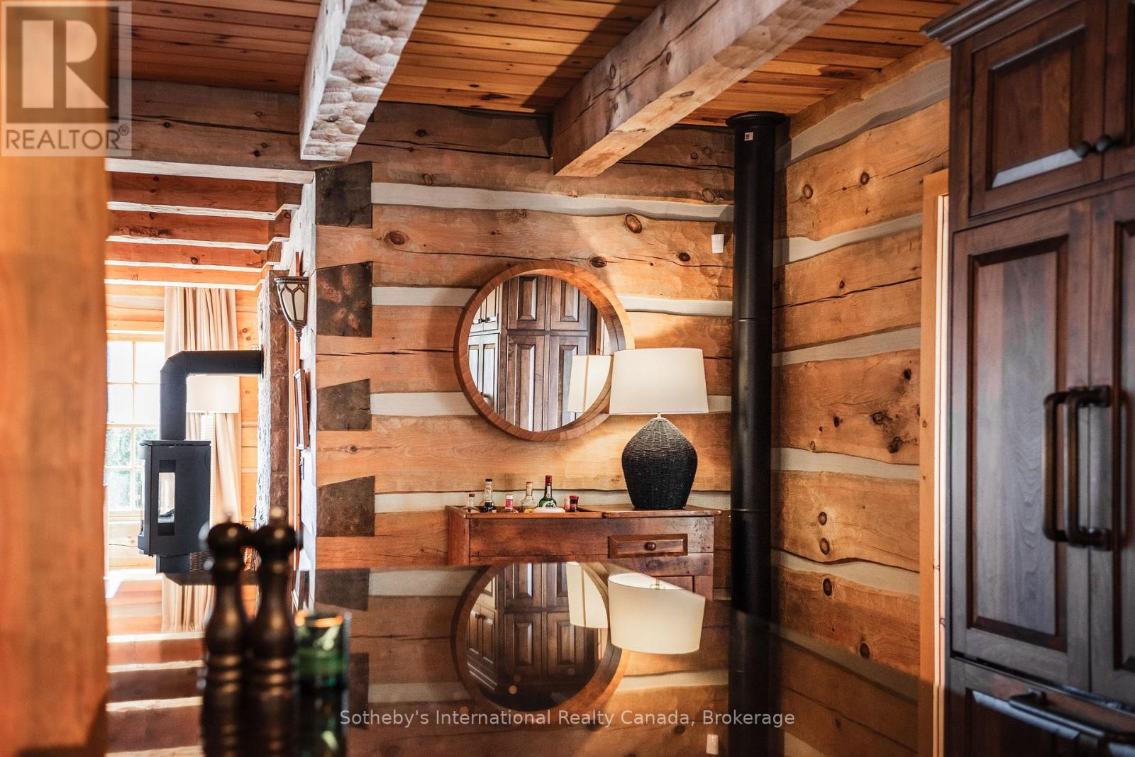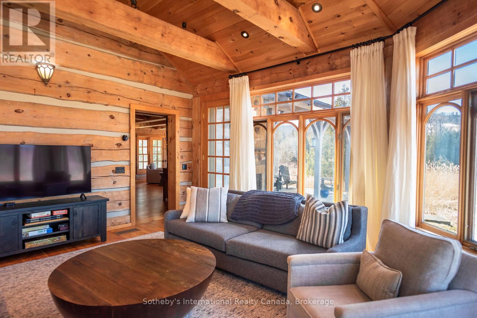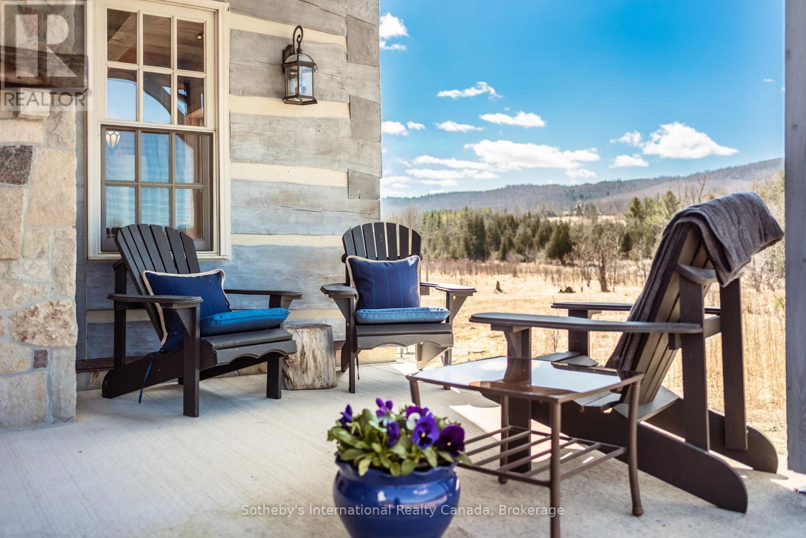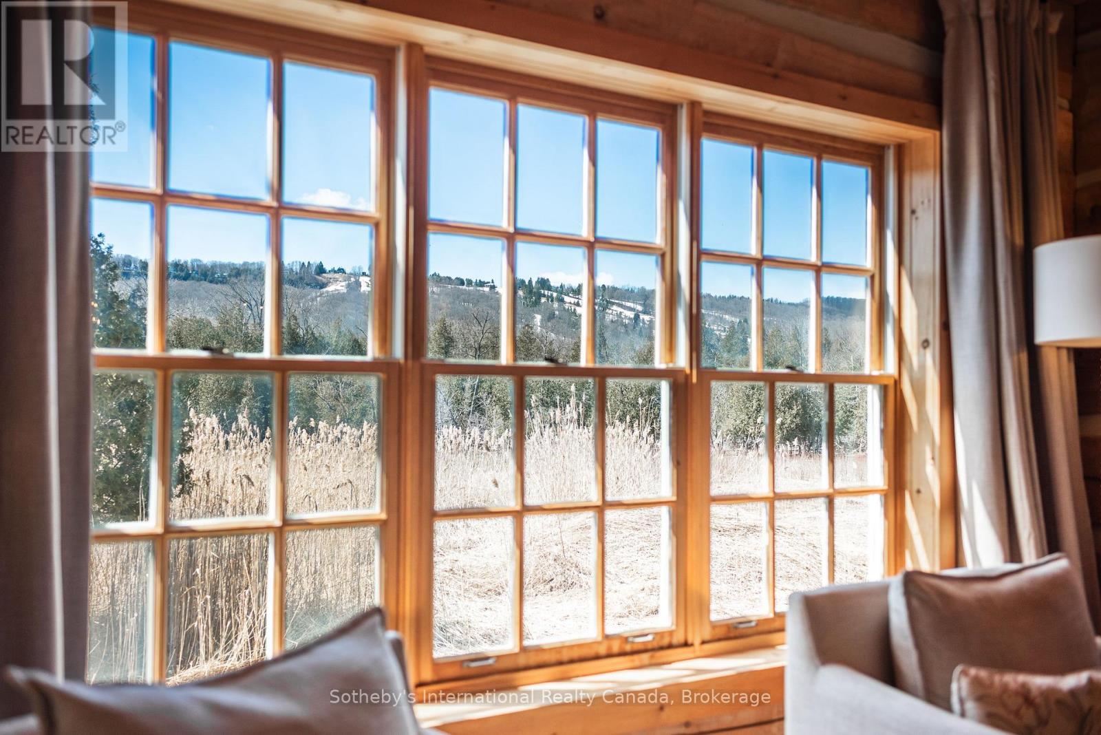 Beaver Valley Log Home - A Rare Four-Season Retreat Nestled in the heart of the Beaver Valley, this stunning custom-built dovetail log home is a true masterpiece of craftsmanship. Built in 2003 by a skilled local artisan, the home showcases the finest natural materials throughout, offering warmth, character, and timeless appeal.With over 2,500 sq. ft. of thoughtfully designed living space, the open-concept kitchen, dining, and living areas are the heart of the home. The chef-inspired kitchen features granite countertops, a generous oversized island with built-in storage, a bar fridge, and a cabinet-fronted built-in refrigerator - all flowing seamlessly into the great room anchored by a cozy J-TUL wood-burning stove.Step into the magnificent conservatory and take in breathtaking, unobstructed views of the Beaver Valley and ski hills - a view equally enjoyed from two of the three covered porches. Entertain in style on the third porch, complete with a stunning stone outdoor fireplace perfect for cool evenings under the stars.The home offers four generous bedrooms, including a large primary suite with private ensuite, making this an exceptional family retreat. The full unfinished basement with 9-ft ceilings presents incredible potential for additional living space, a recreation room, or whatever your vision calls for. The home has an efficient Geothermal heating system. Set on 23 pristine acres with over 1,000 feet of Beaver River frontage, this property is a four-season playground - canoe, fish, hike, and more, all from your own backyard. And for ski enthusiasts, you simply can't beat the location - the Beaver Valley Ski Club is just a 2-minute drive away. Minutes to golf, Georgian Bay, and endless trails.A home of this quality and setting must be seen to be truly appreciated. (id:64974)